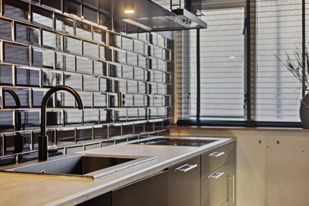 • Moderne zwarte inbouwkeuken met diverse inbouw apparatuur (2022).