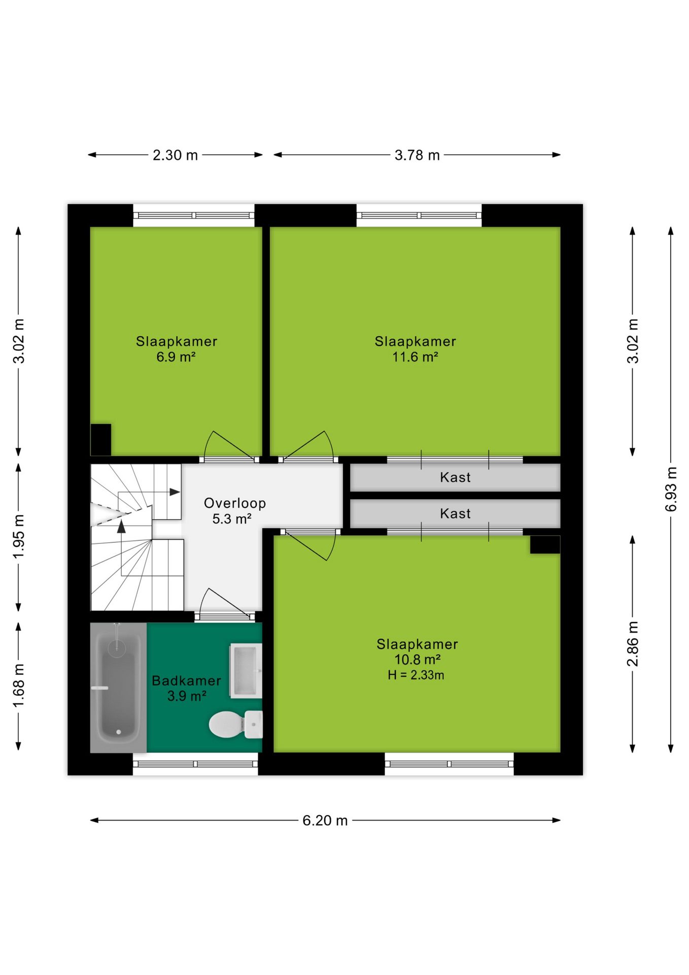 Op de tweede verdieping bevindt zich een royale ruimte van ca. 15 m², voorzien van zowel een dakraam als een dakkapel. Deze lichte en veelzijdige ruimte is ideaal als extra slaapkamer of werkruimte. Daarnaast is er de mogelijkheid om de ruimte op te splitsen en zo meerdere kamers te creëren. Extra praktisch is de ingebouwde kastruimte naast de trap, die zorgt voor handige opbergruimte.