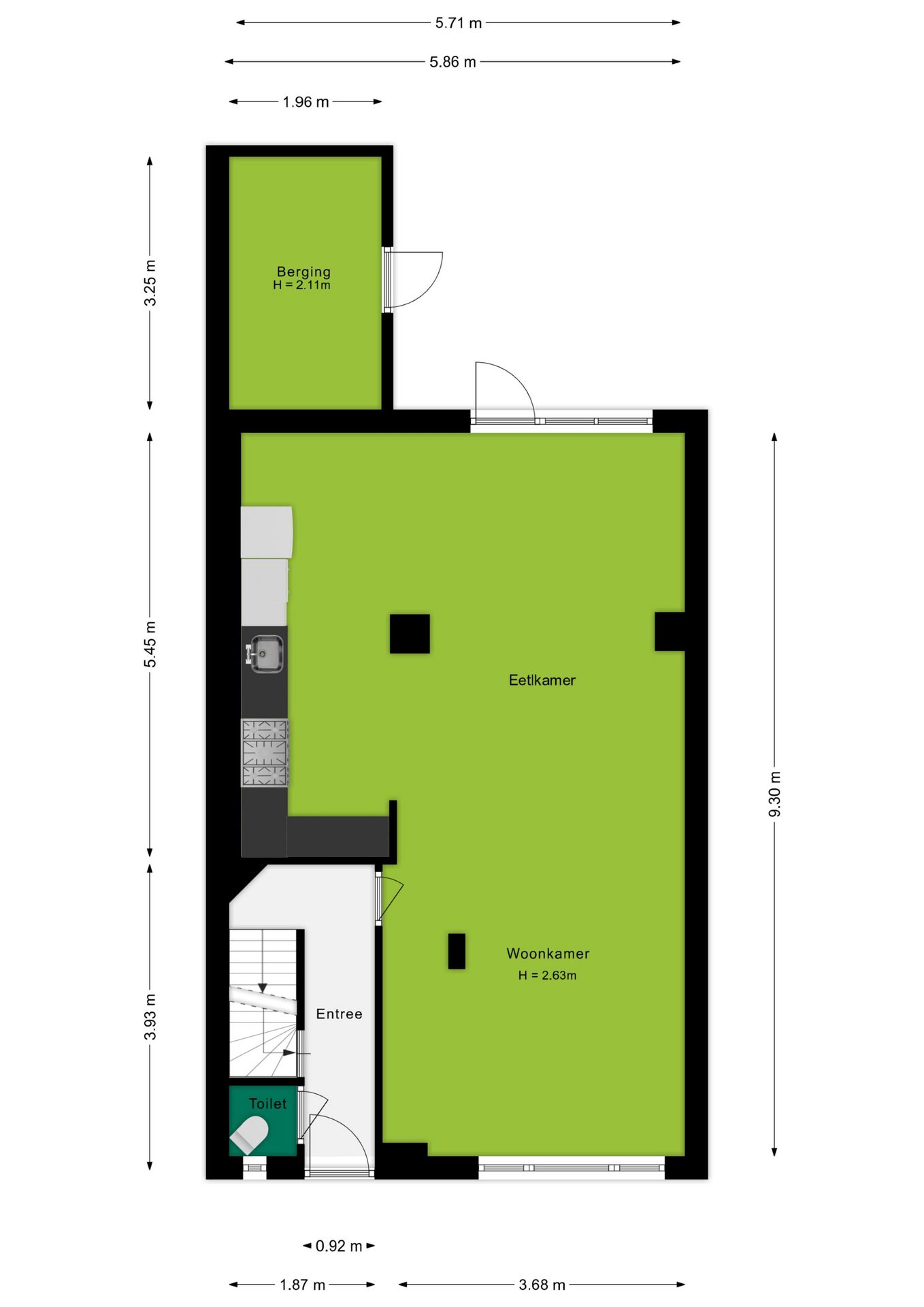 Je komt binnen in de entree met toilet en trapopgang naar zowel de eerste verdieping als de kelder. Fijn detail: de kelder van circa 6m² biedt extra opslagruimte.