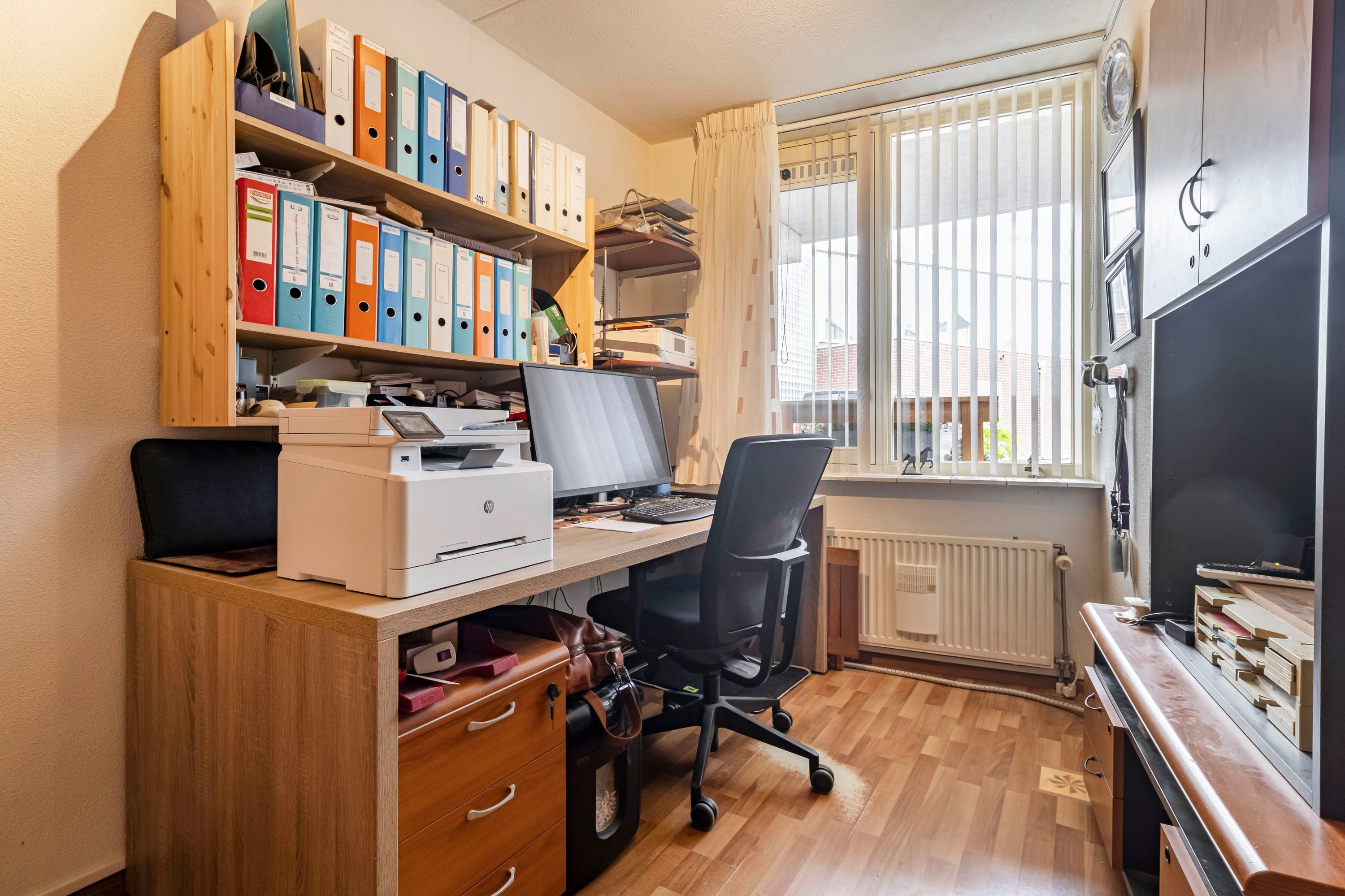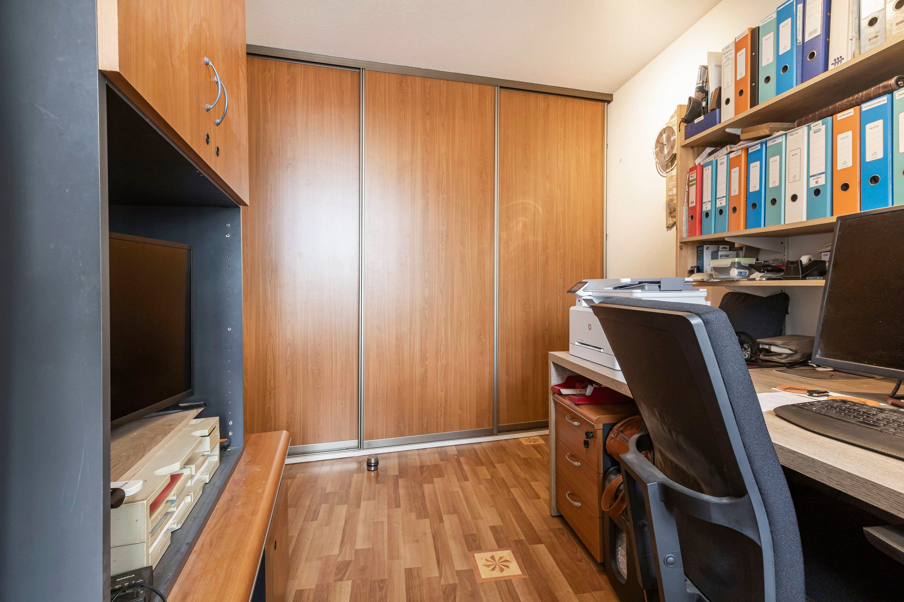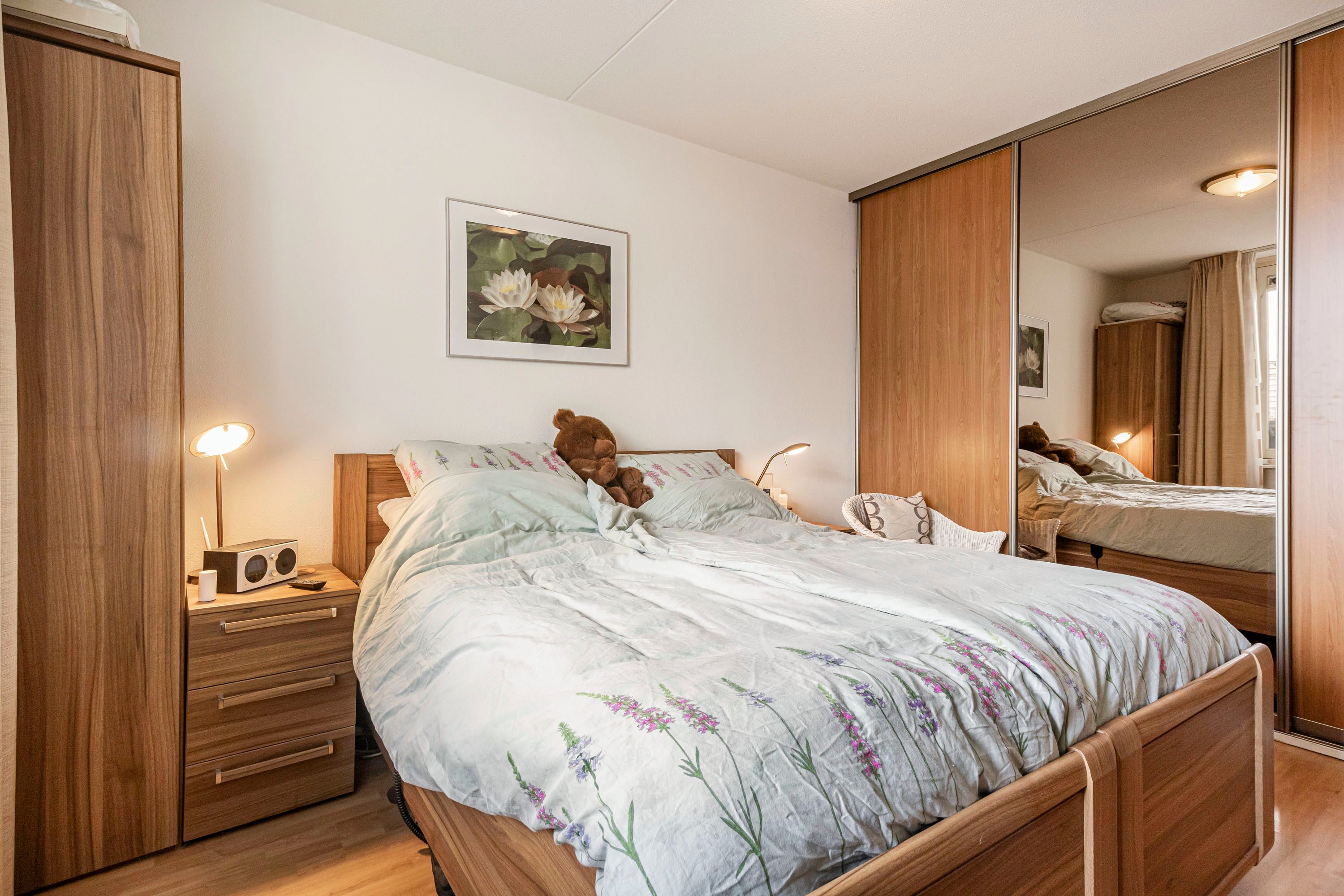 De hoofdslaapkamer is aan de achterzijde van het appartement gelegen en beschikt over een raampartij en een praktische vaste kasten wand met schuifdeuren. De tweede slaapkamer is eveneens voorzien van een praktische kastenwand met schuifdeuren. Beide slaapkamers zijn afgewerkt met een laminaatvloer en voldoende bergkasten.