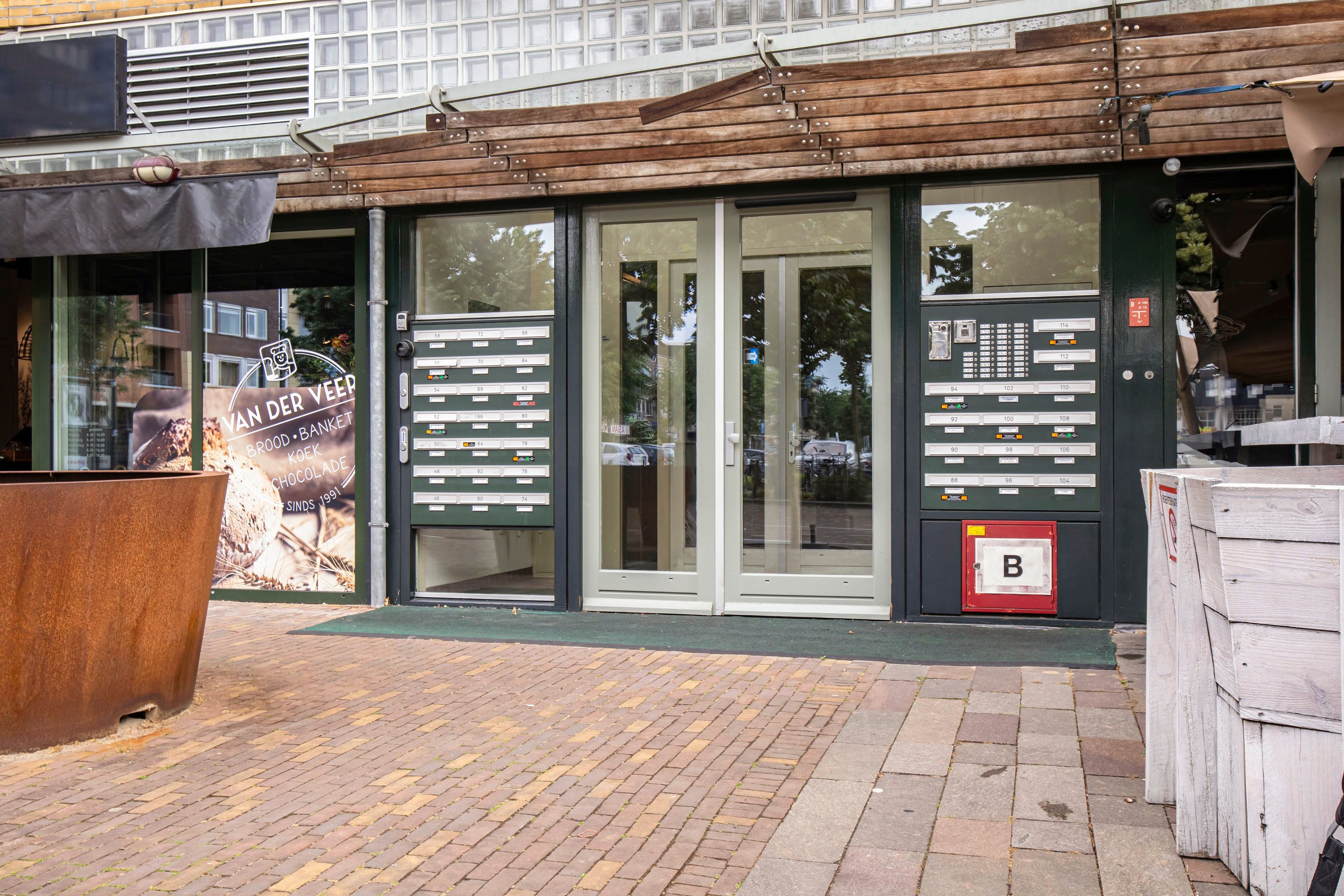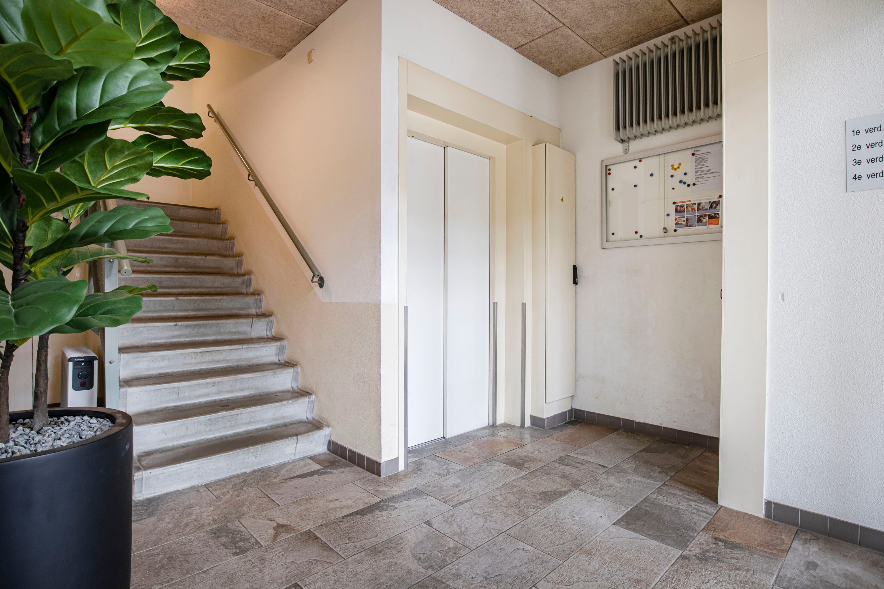 Het appartement is toegankelijk via een centrale entree die is beveiligd met een videofoonsysteem (bedienbaar vanuit de hal en woonkamer). In deze entree bevindt zich het trappenhuis en de liftinstallatie waarmee het appartement te bereiken is.