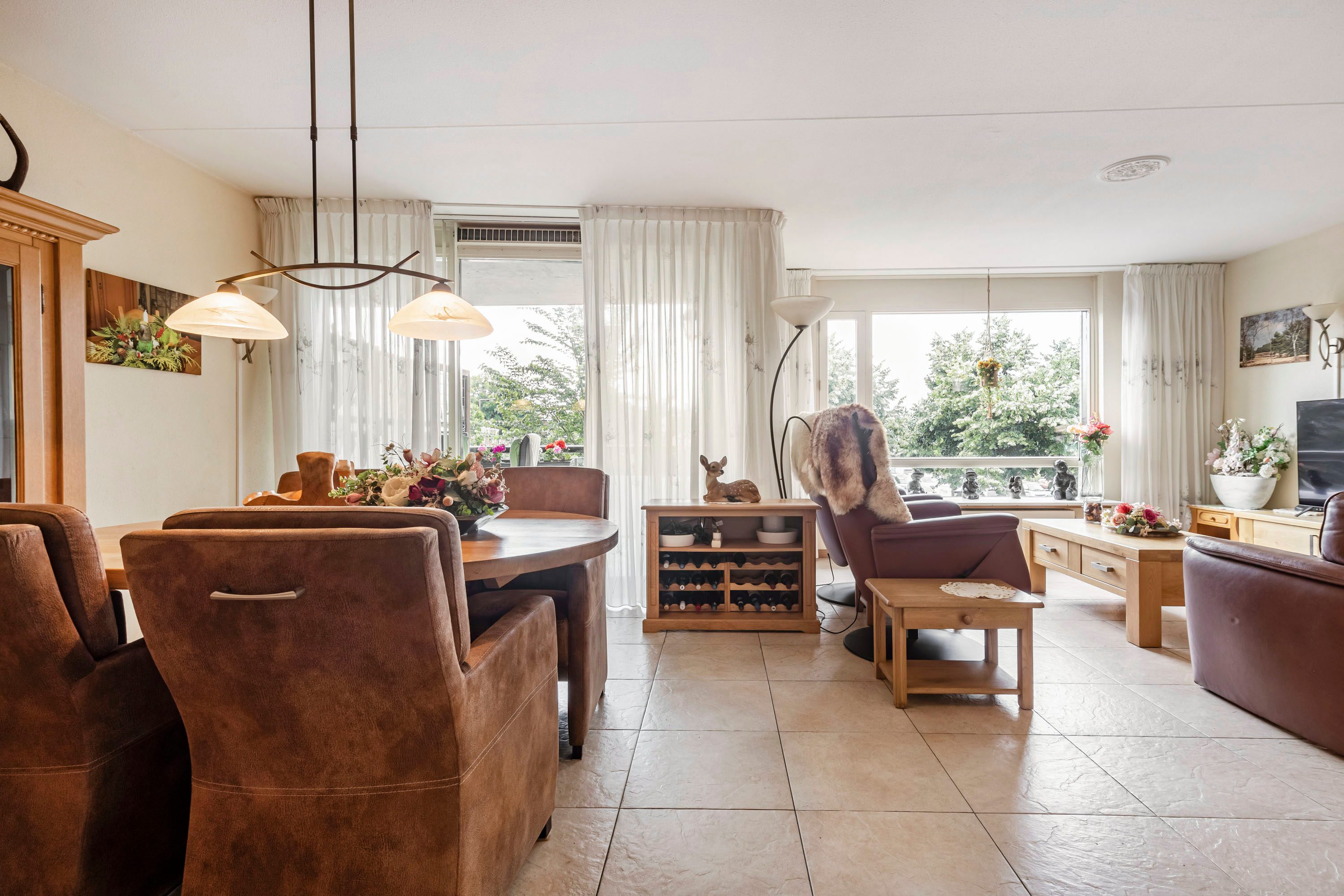 + Ruim bemeten woonkamer met grote raampartijen;