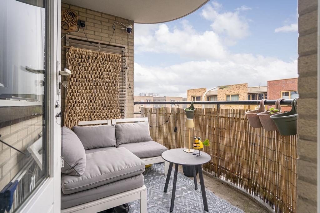 Stap vanuit de woonkamer direct de frisse buitenlucht in op je eigen balkon, gelegen op het noorden. Ongeacht het seizoen, het balkon biedt je een verkoelende schaduw.