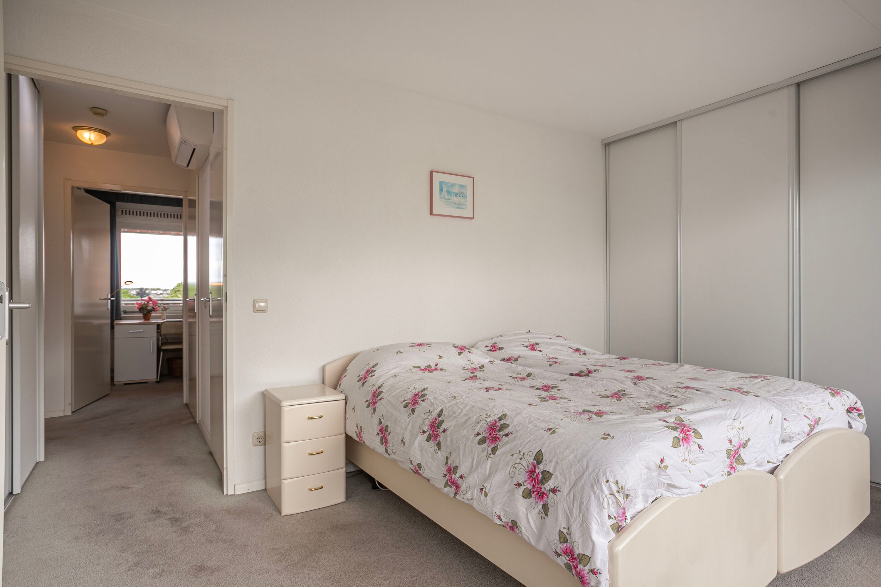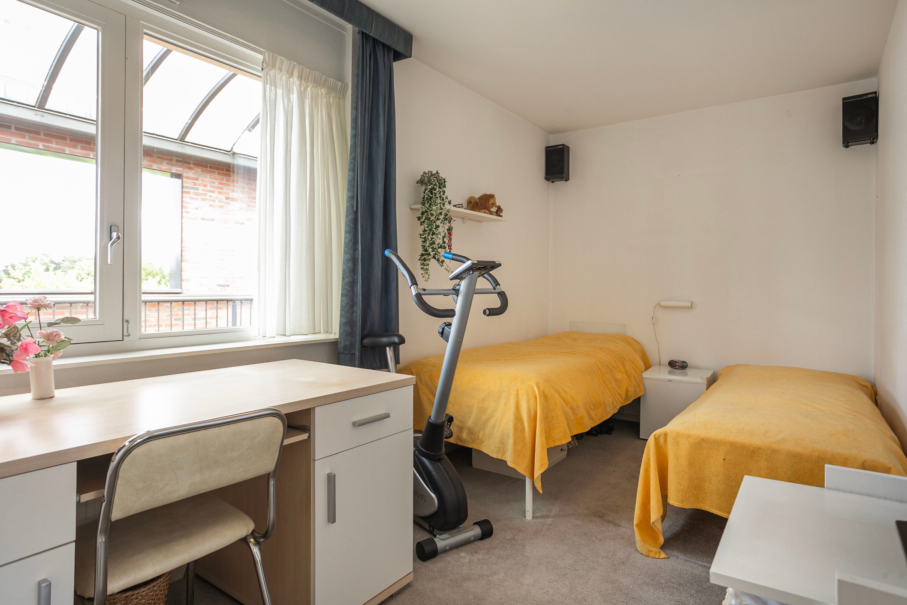 Aan de achterzijde bevinden zich twee ruime slaapkamers van circa 14 m² en 11 m², beide met vaste kastenwanden die op maat zijn gemaakt. De badkamer is uitgerust met een whirlpool, inloopdouche, dubbele wastafel, tweede toilet en designradiator.