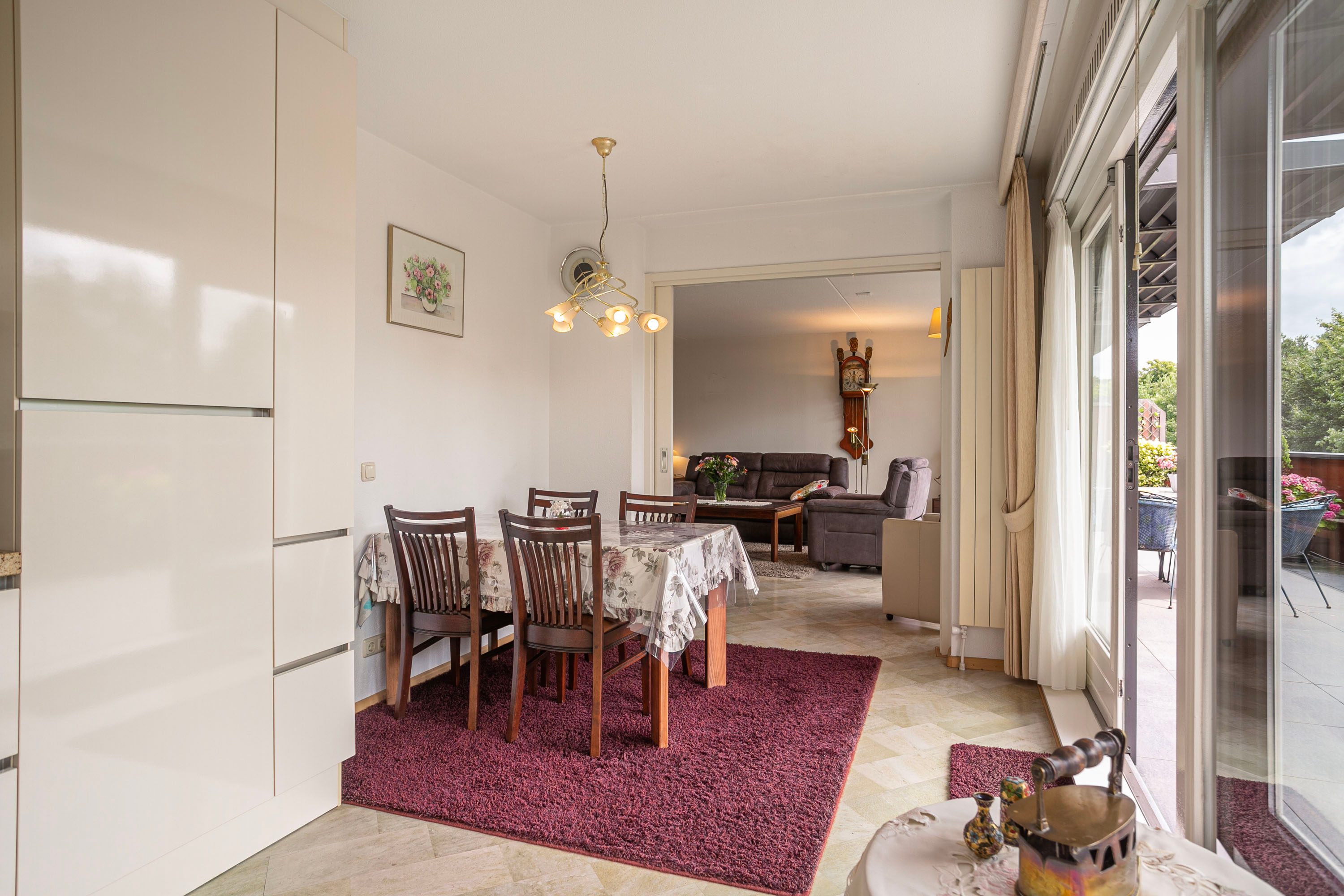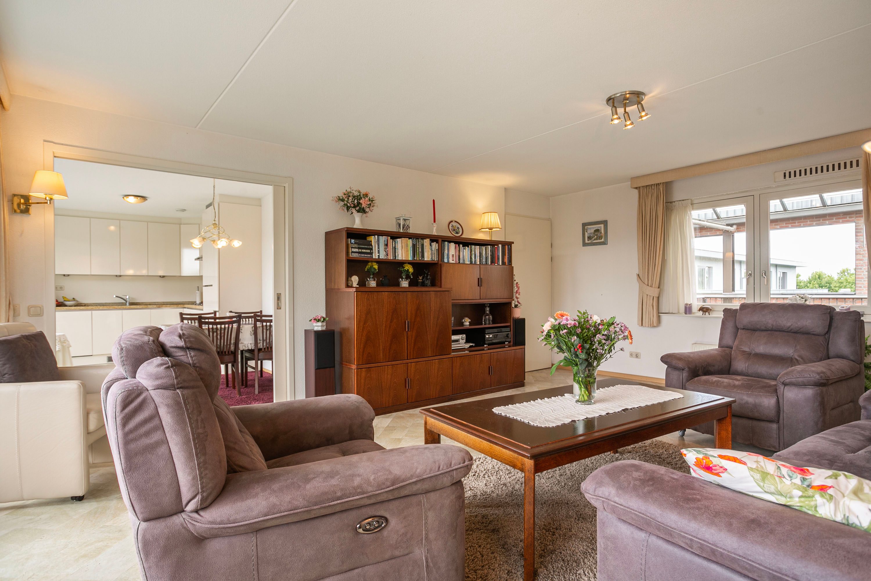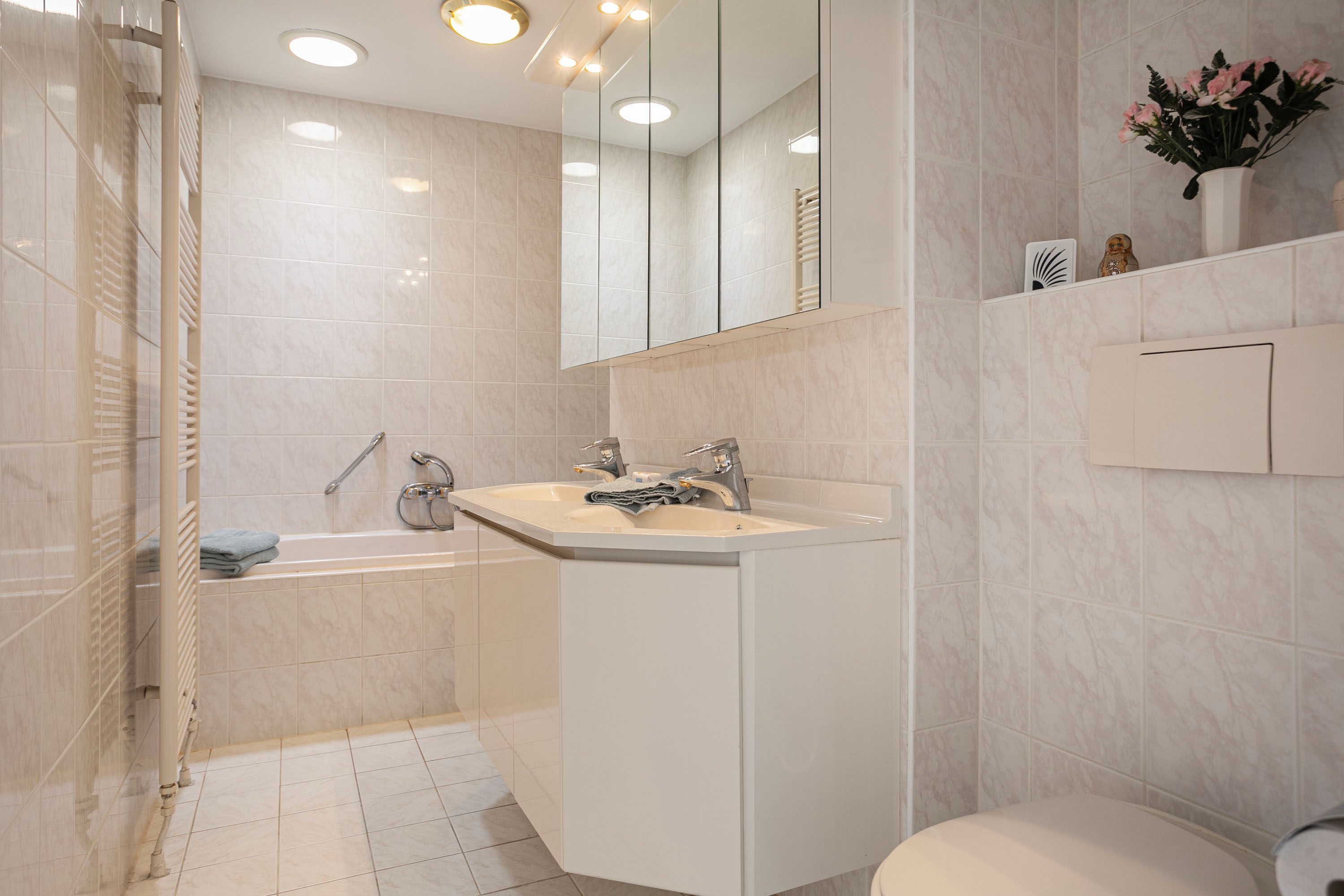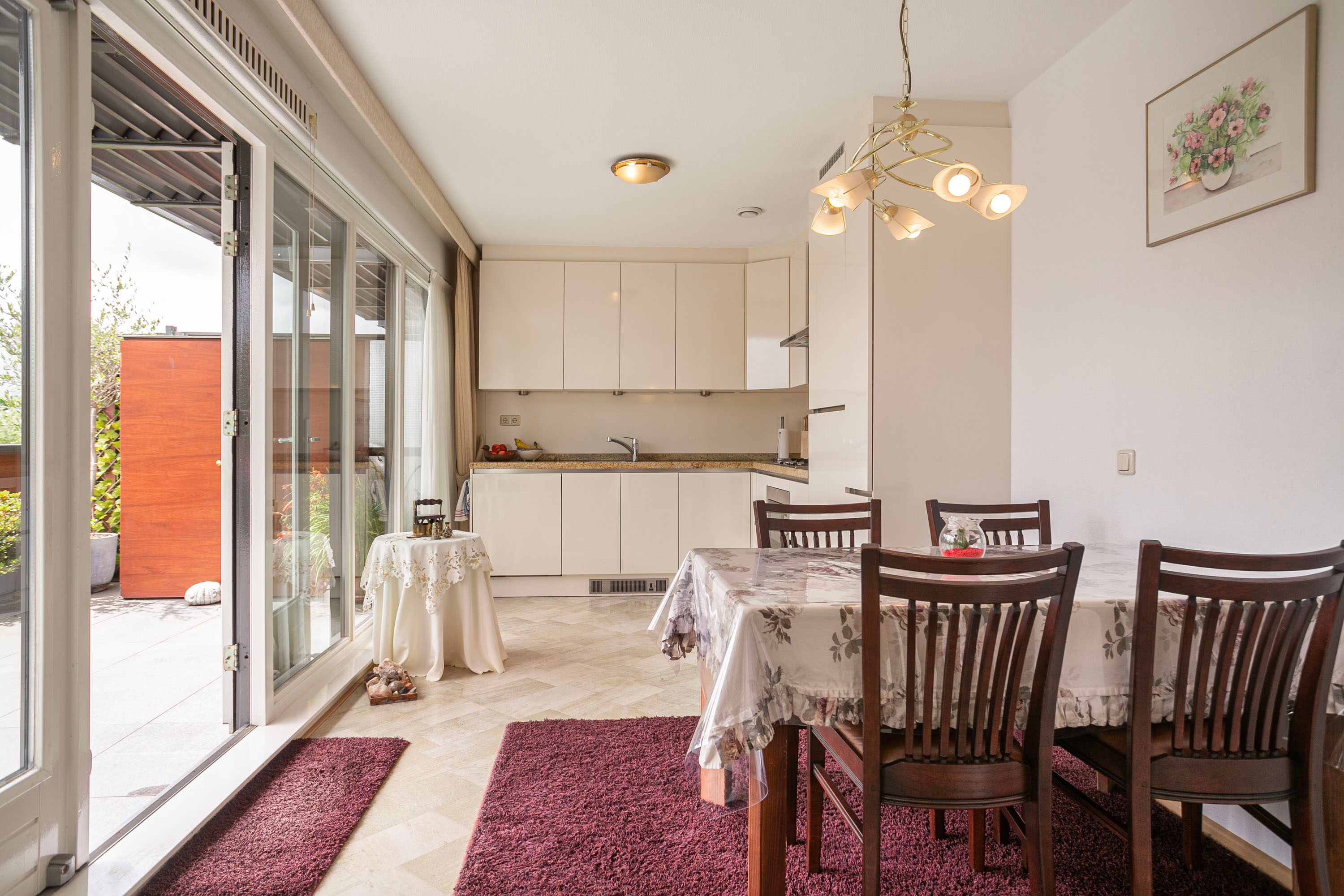 Via de centrale hal betreed je het appartement. Deze ruime entree geeft toegang tot het toilet, de wasruimte met extra berging en een zeer royale woonkamer met veel natuurlijk licht dankzij de grote raampartijen. De woonkamer sluit aan op een nette keuken in hoekopstelling, voorzien van inbouwapparatuur zoals een gasfornuis, afzuigkap, magnetron, koelkast en vaatwasser.