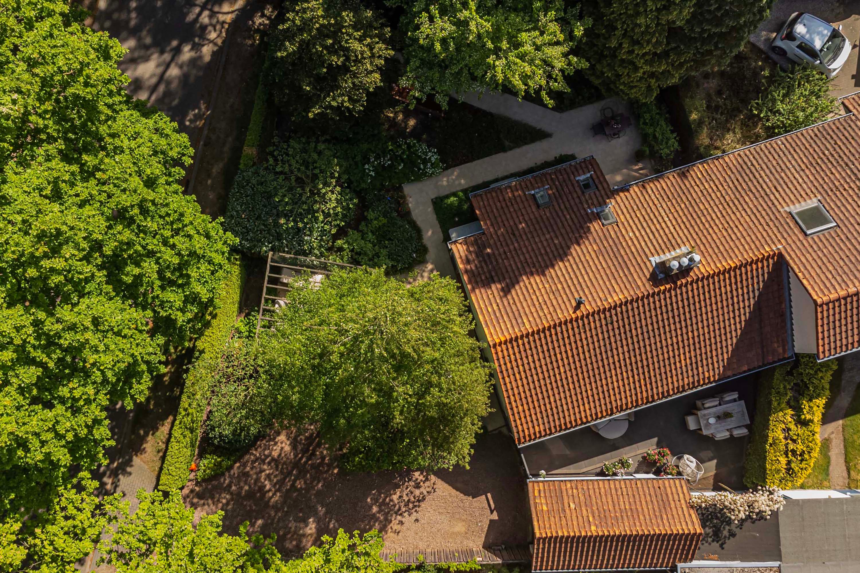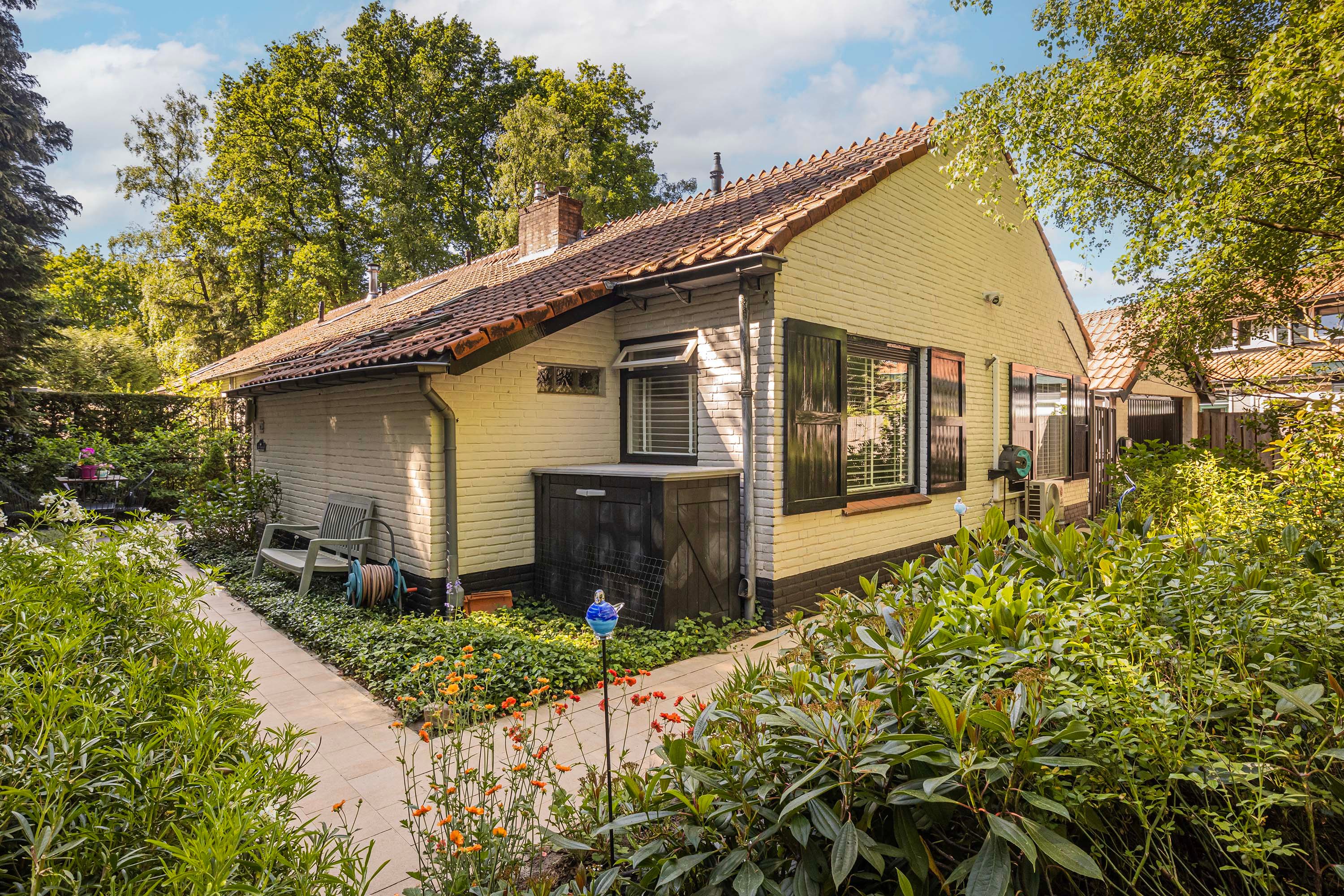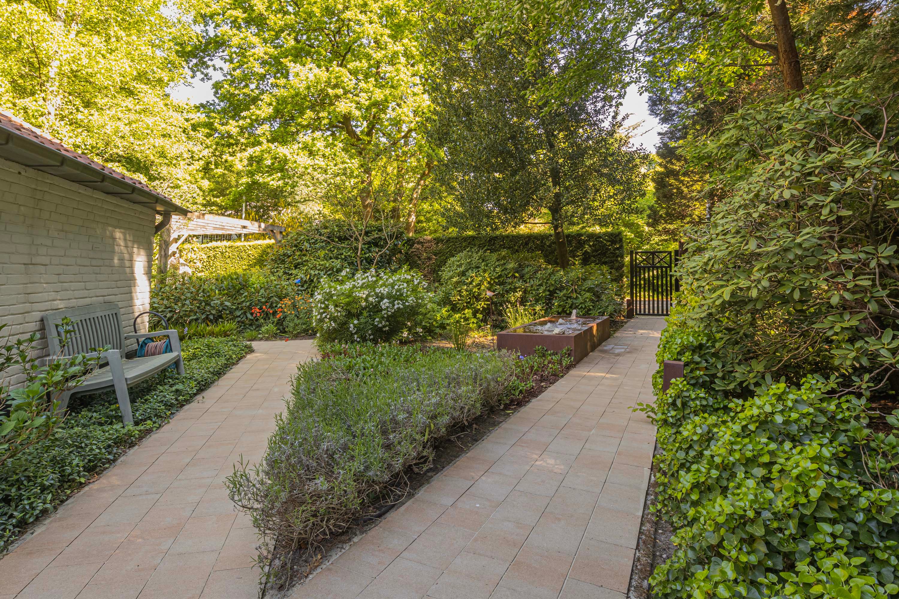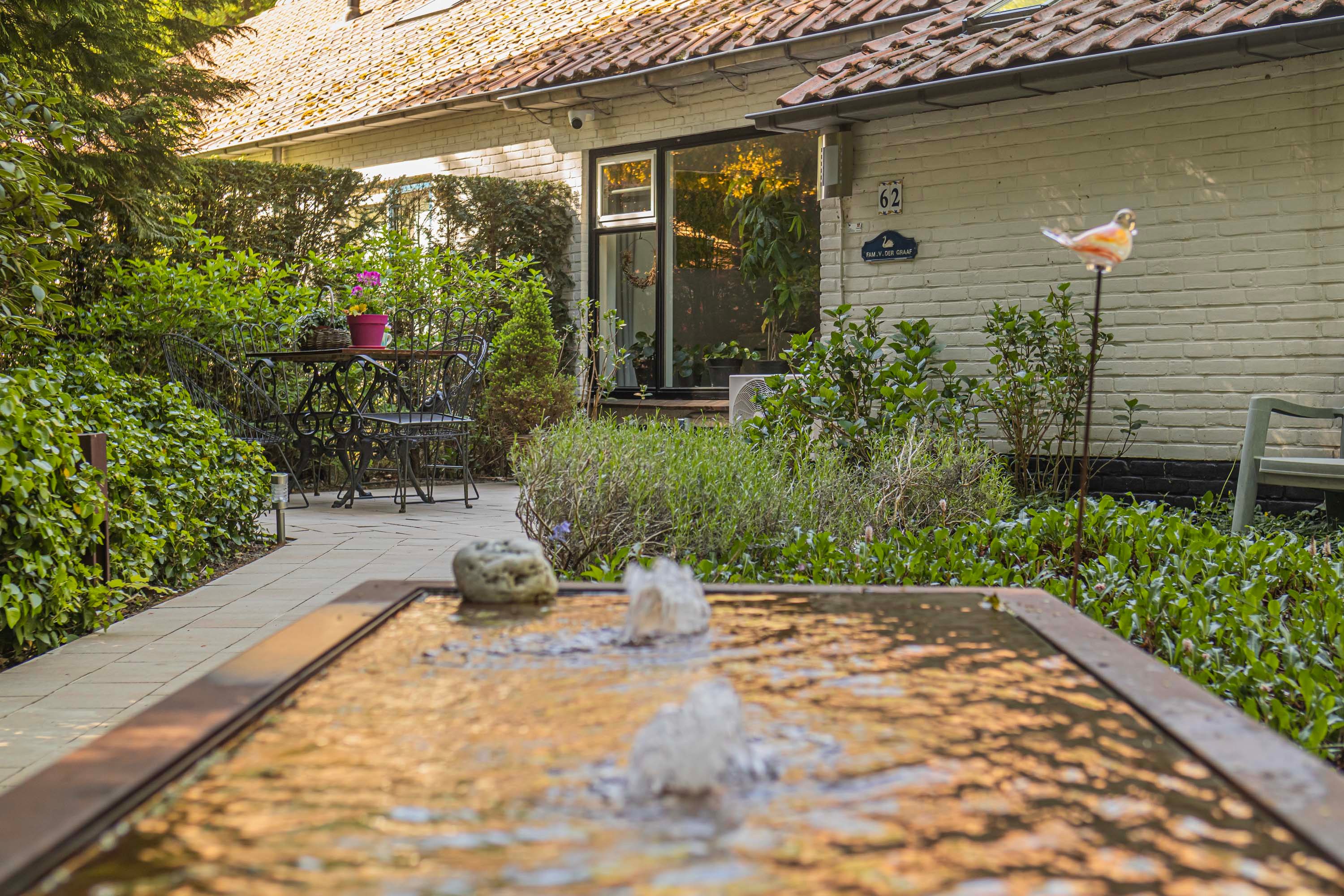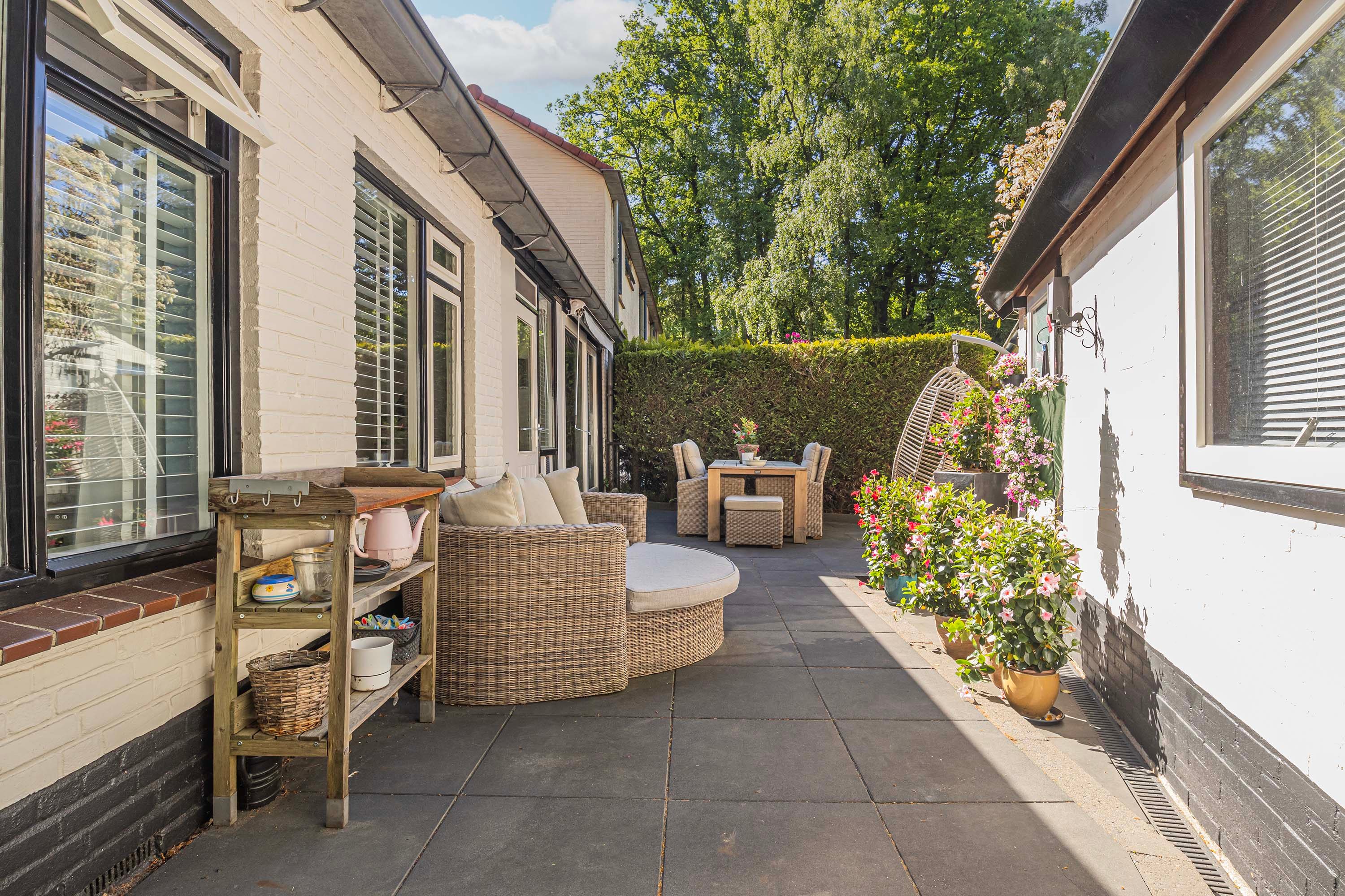 De woning is omringd door een prachtige tuin met meerdere gezellige zitplekken, waarvan de zijtuin en royale patio echte uitblinkers zijn. Het ruime perceel biedt volop mogelijkheden voor tuinliefhebbers of simply genieten van de rust in een groene omgeving.