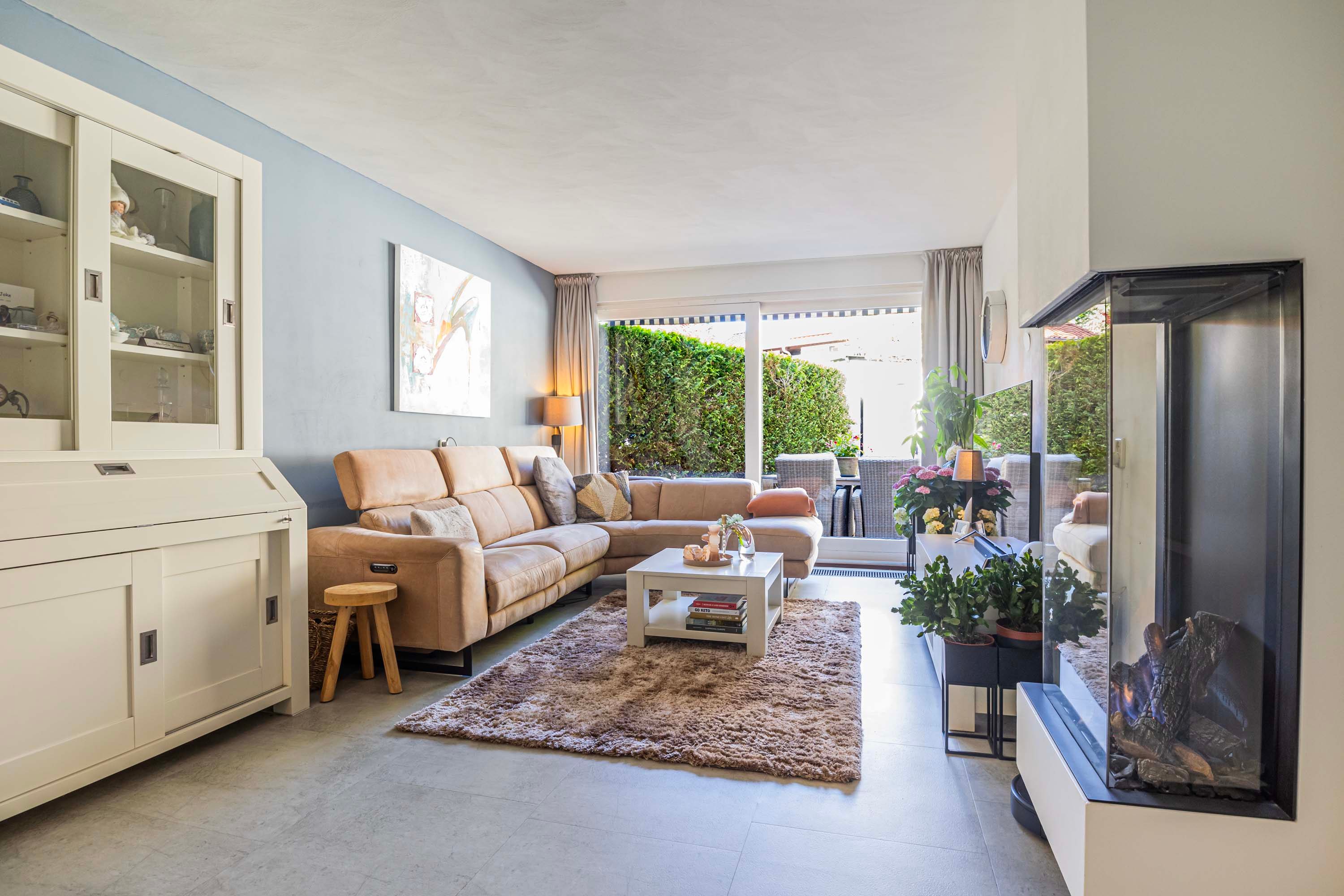 De bungalow is volledig levensloopbestendig en ingericht met alle belangrijke voorzieningen op de begane grond, wat het een ideale kans maakt voor wie op zoek is naar comfortabel en praktisch wonen. Bij binnenkomst wordt je verwelkomd in een ruime entreehal met toegang tot de meterkast en een modern toilet met fonteintje. De lichte en sfeervolle woonkamer is voorzien van een gaskachel (2021), airco voor het koelen en verwarmen (2021), grote raampartijen en schuifpui die direct toegang biedt tot de gezellige tuin aan de zijkant en een patio, perfect om in alle privacy van het buitenleven te genieten.