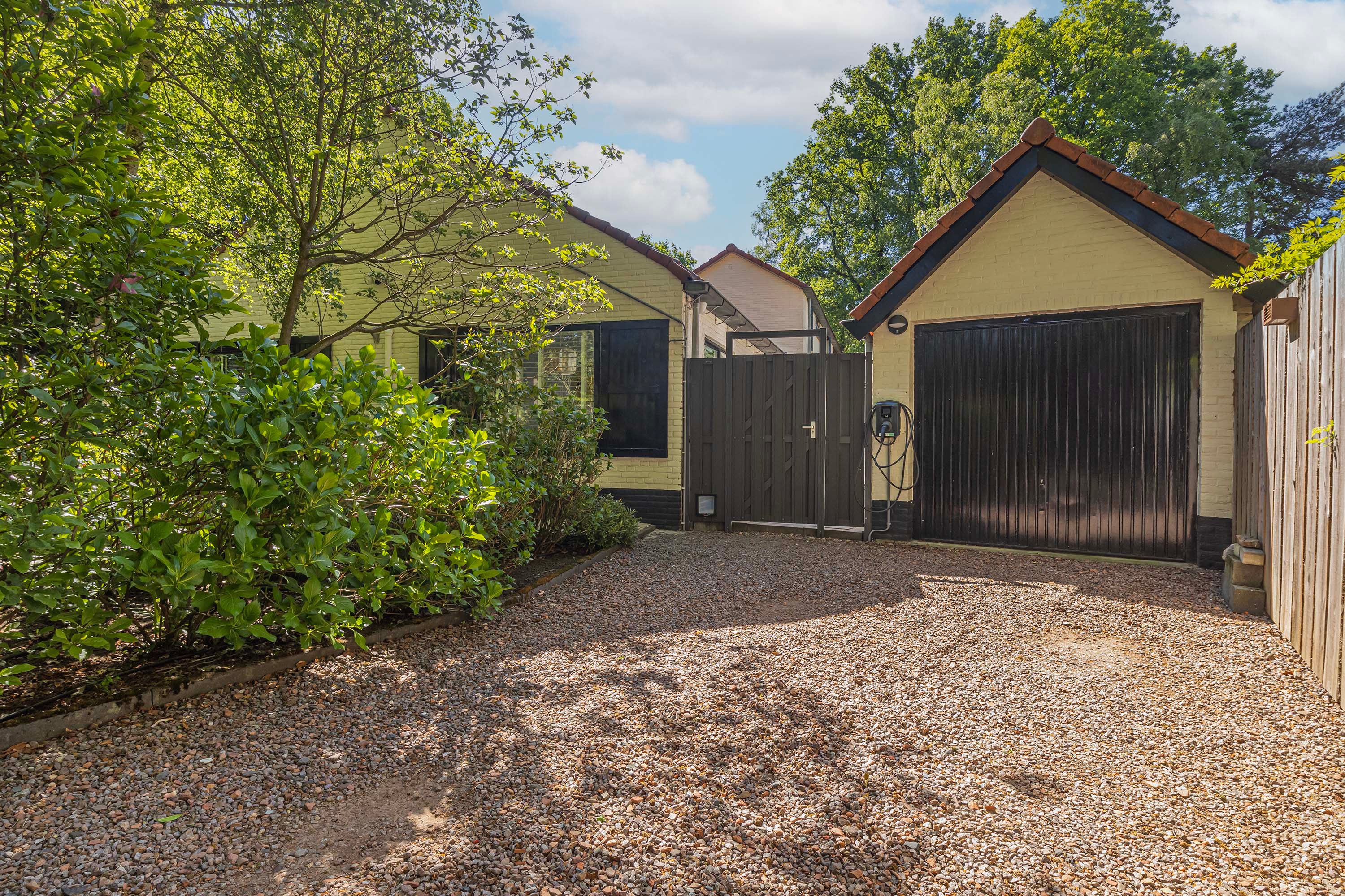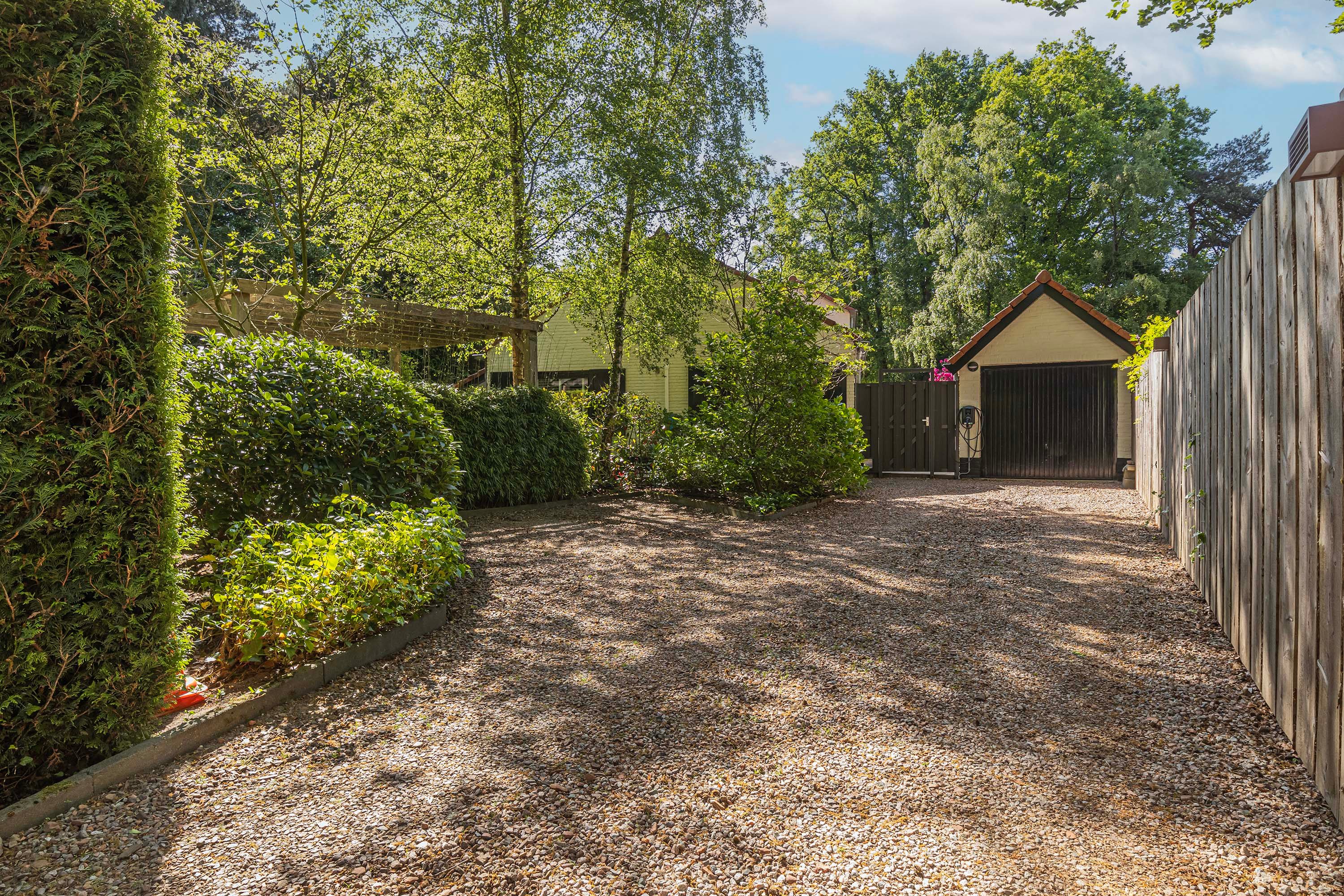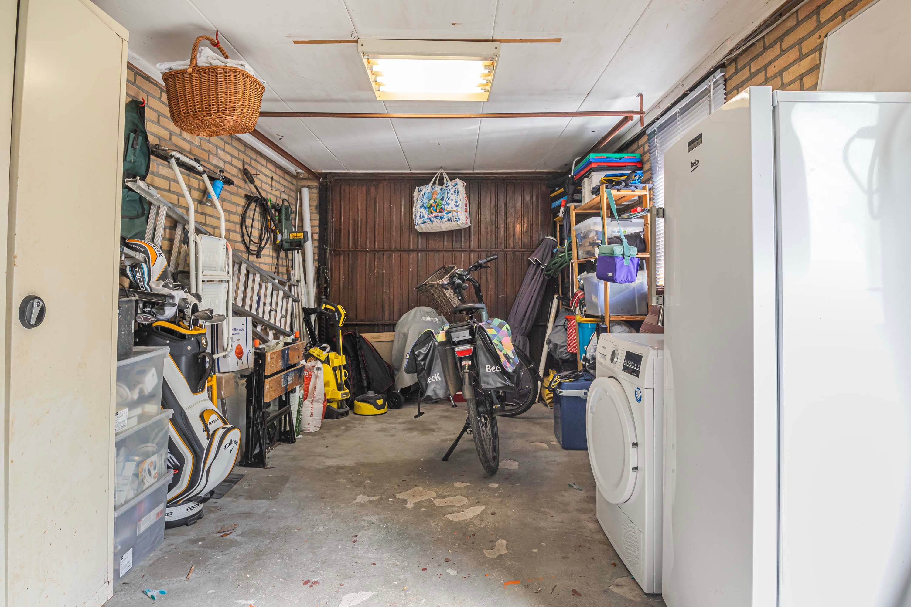 Aan de zijkant van de woning staat een royale stenen garage met een aparte berging – ideaal voor het stallen van je voertuig, extra opslagruimte of het creëren van een hobbyruimte. De garage is bovendien uitgerust met een bevloerde bergzolder, zodat je nooit ruimte tekortkomt.