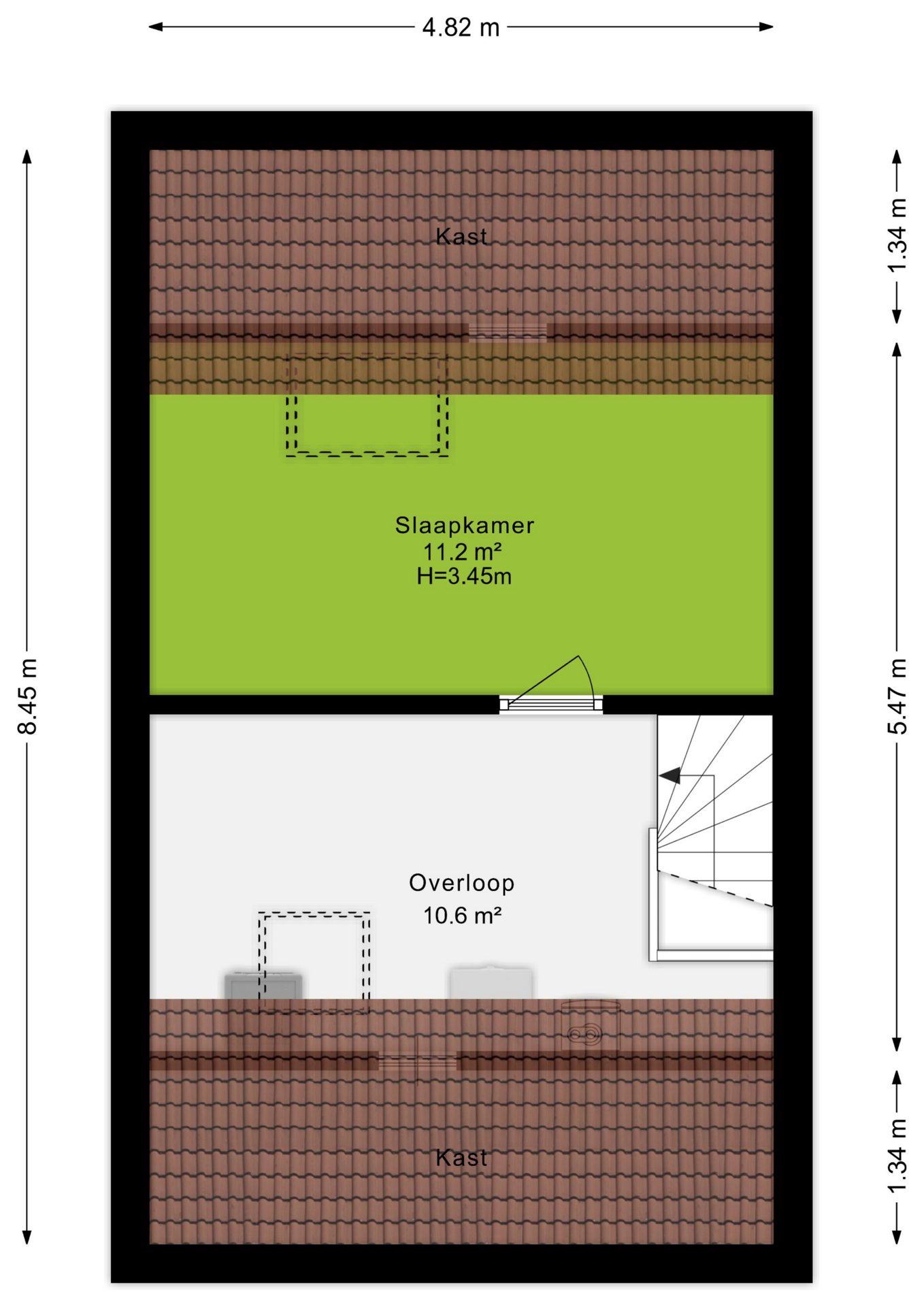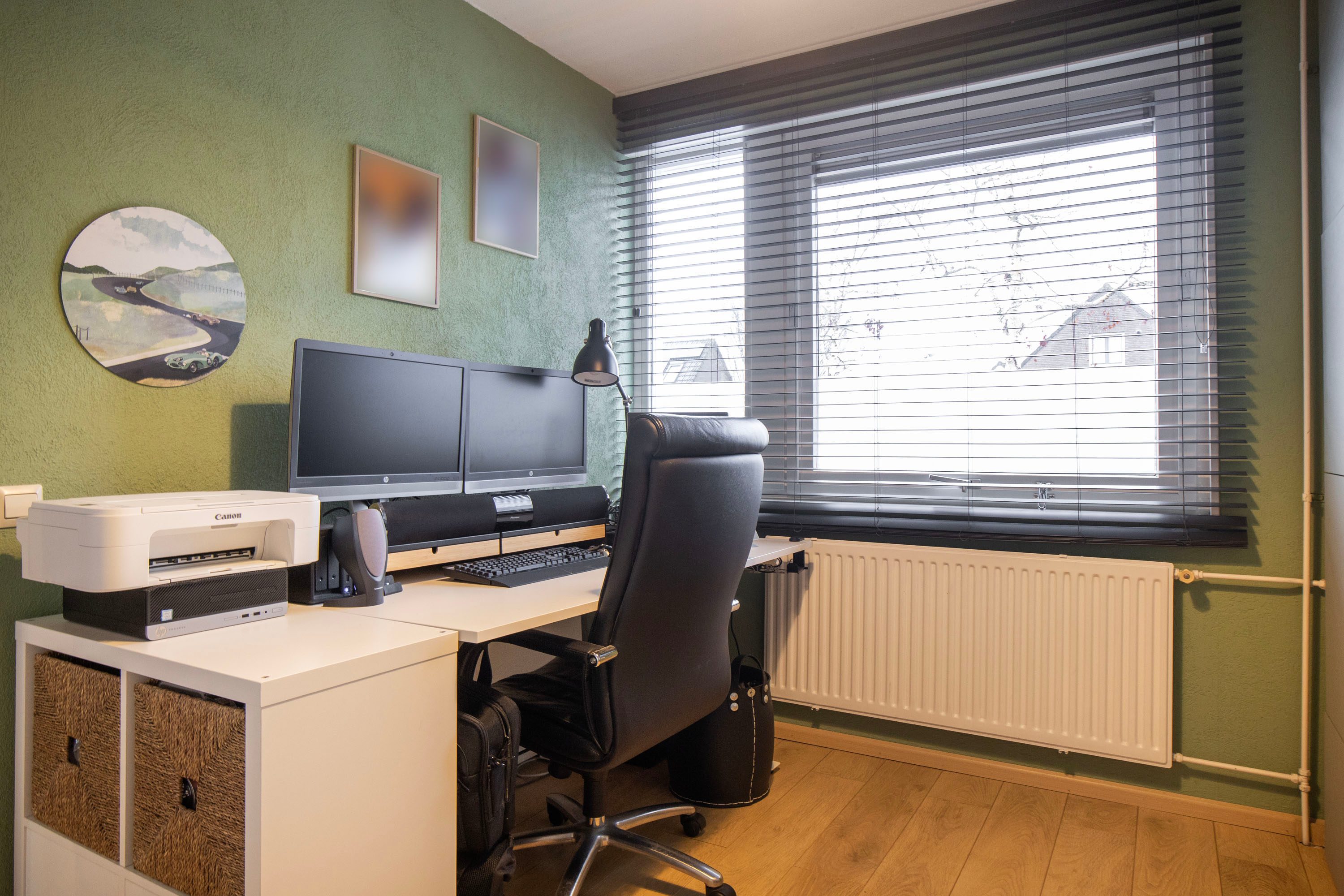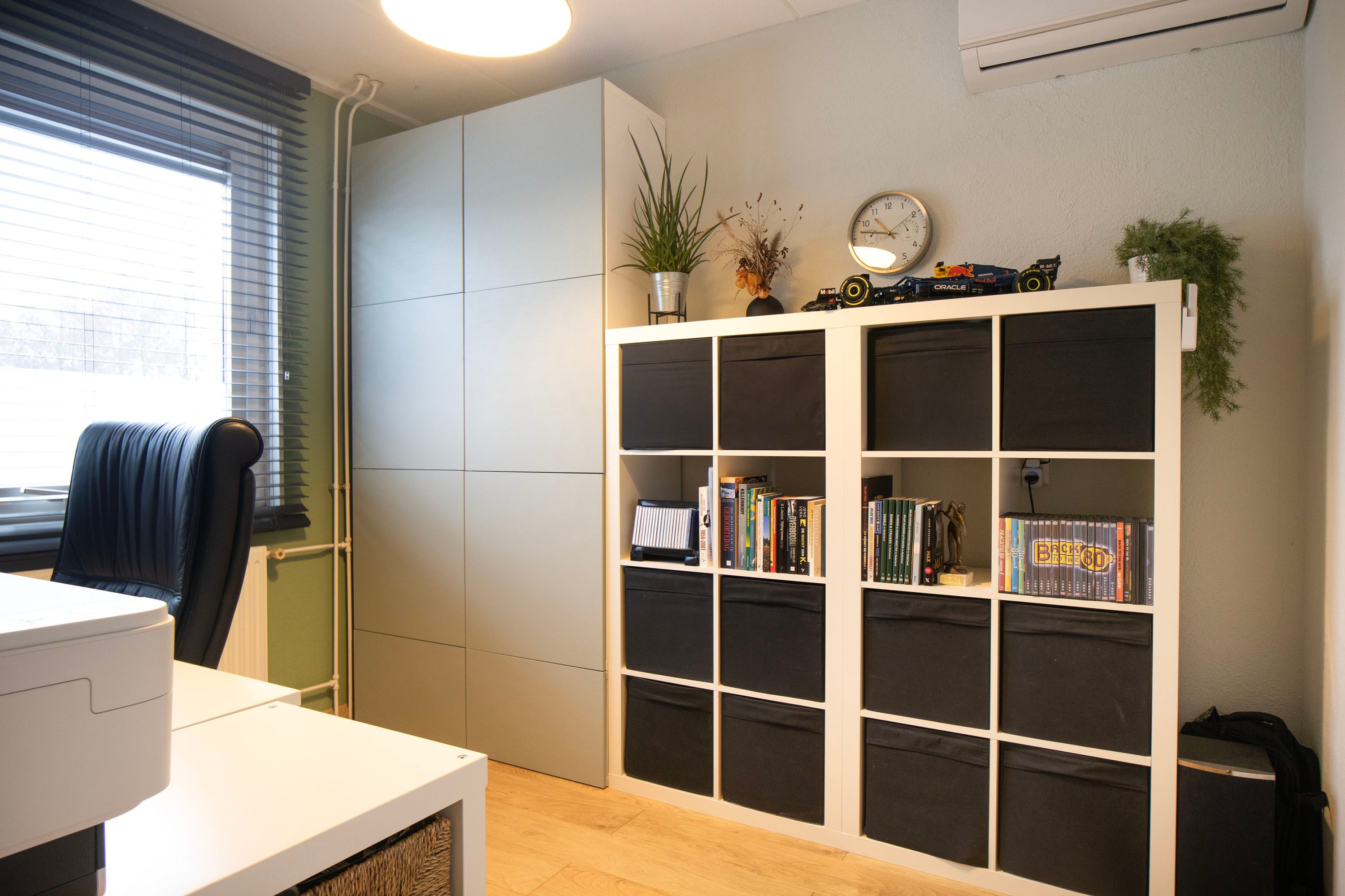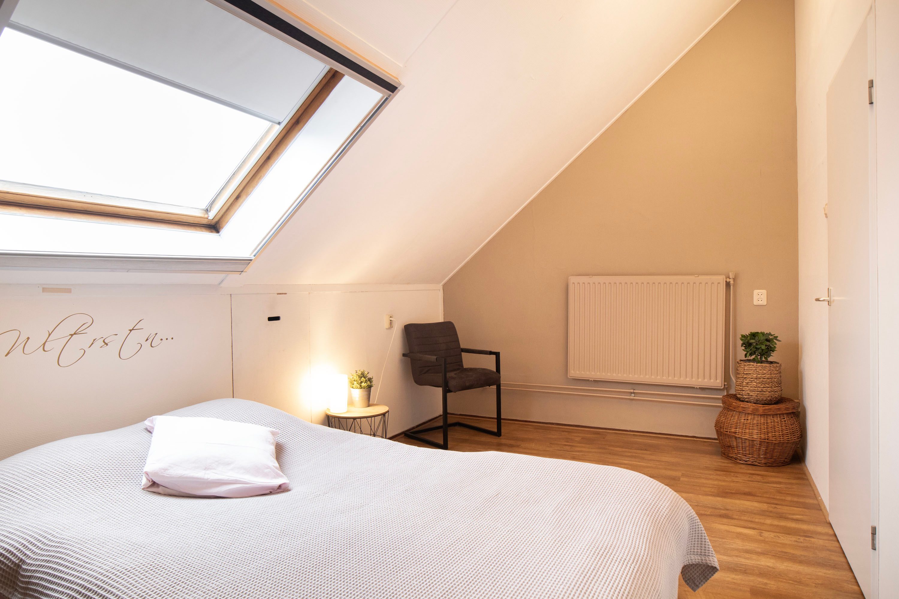 De zolder is via een vaste trap bereikbaar en biedt een slimme indeling met twee functionele ruimtes: een extra slaapkamer en een praktische was- en opbergruimte. Beide kamers zijn voorzien van een dakraam, waardoor ze heerlijk van daglicht worden voorzien. Op deze verdieping bevinden zich bovendien de cv-ketel en de wasmachineaansluiting. Achter de knieschotten is extra bergruimte beschikbaar.