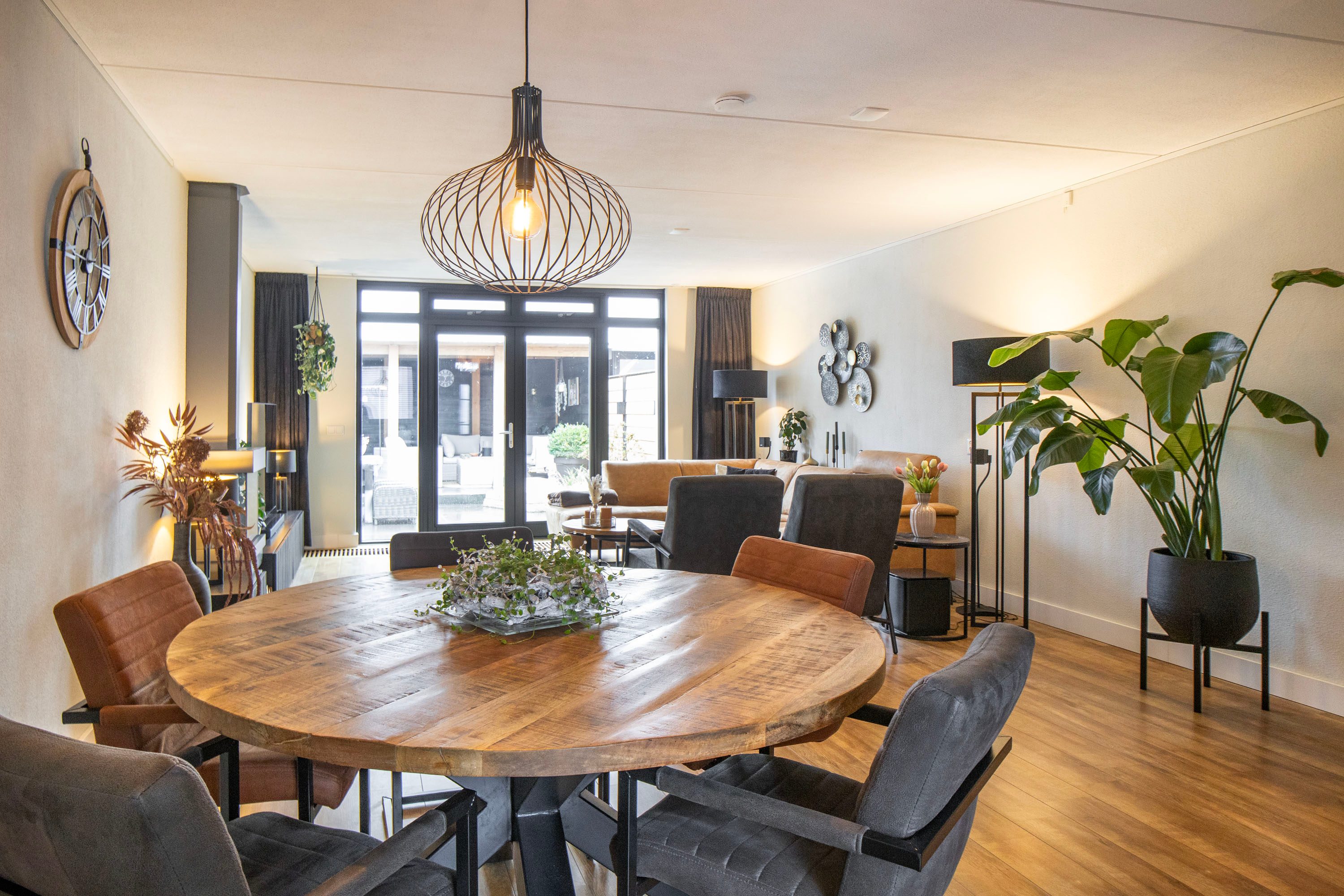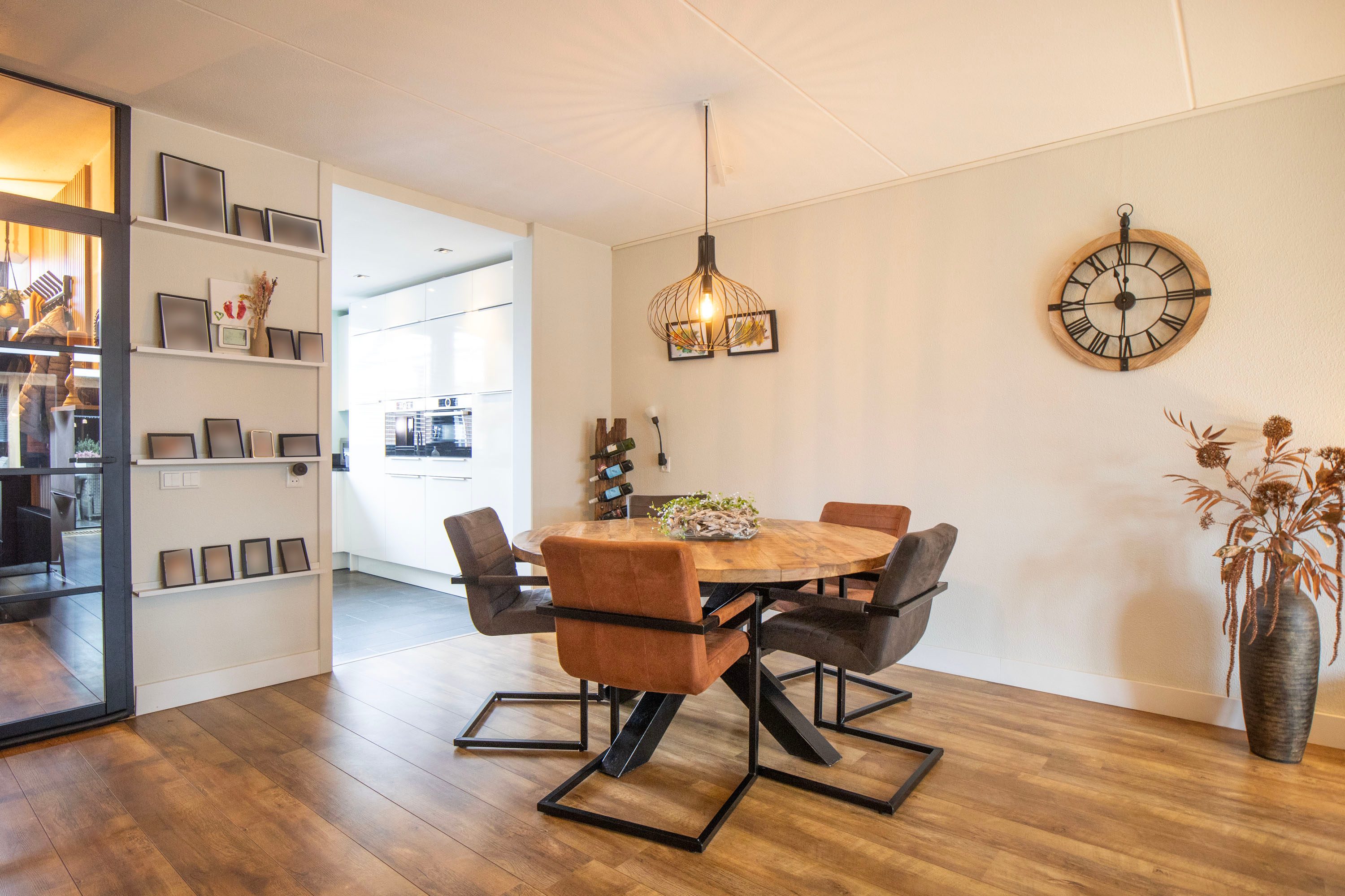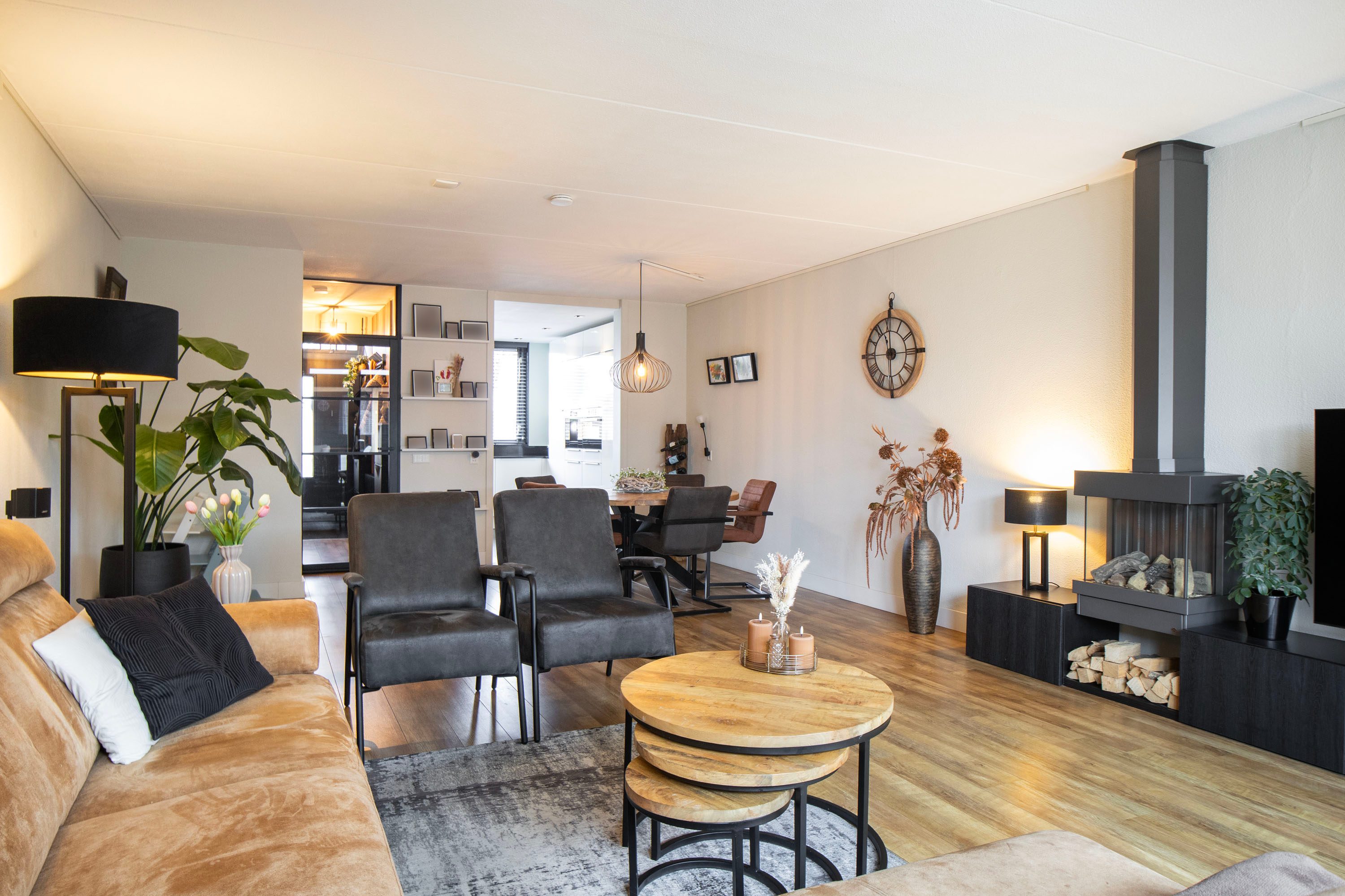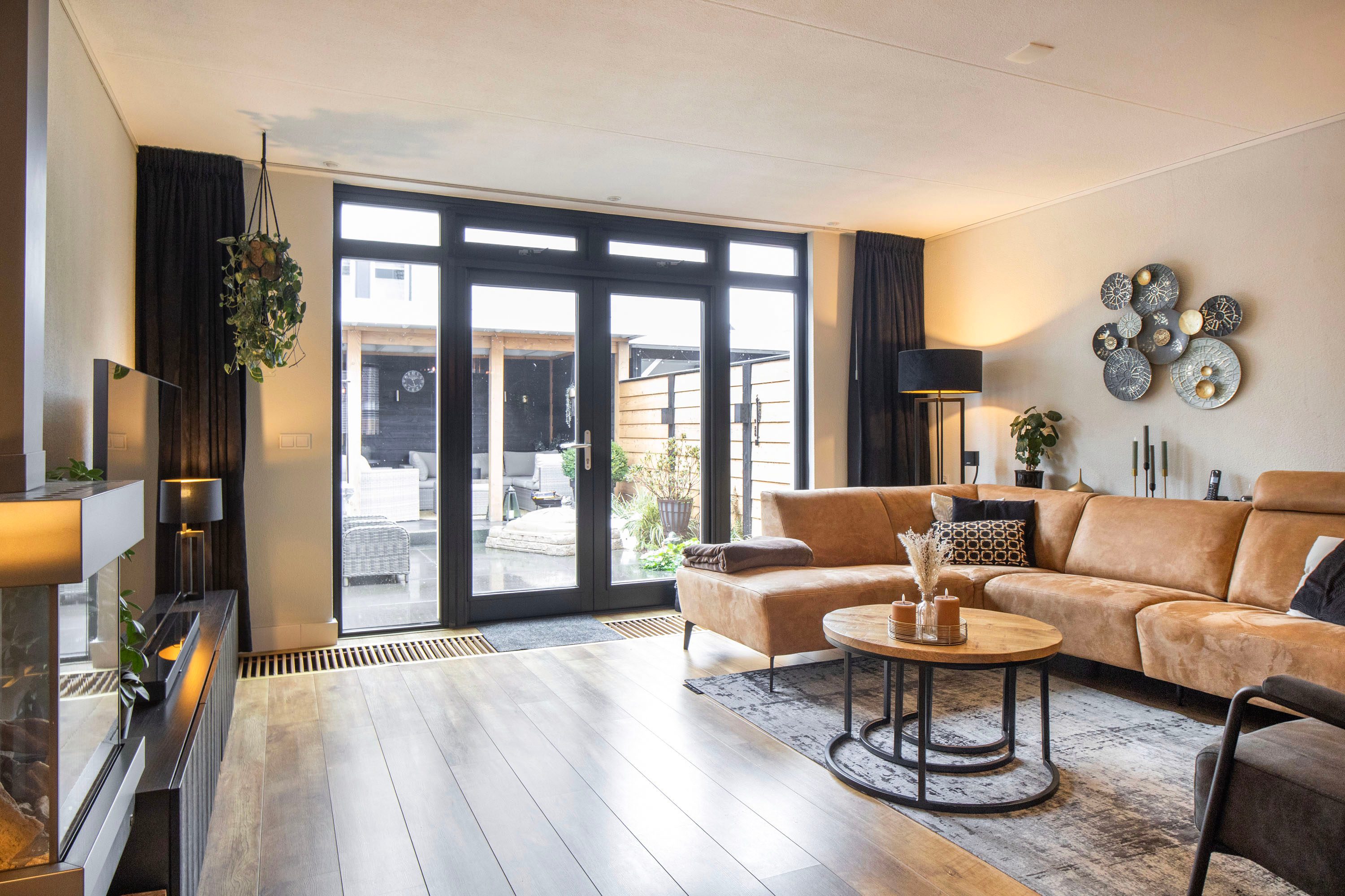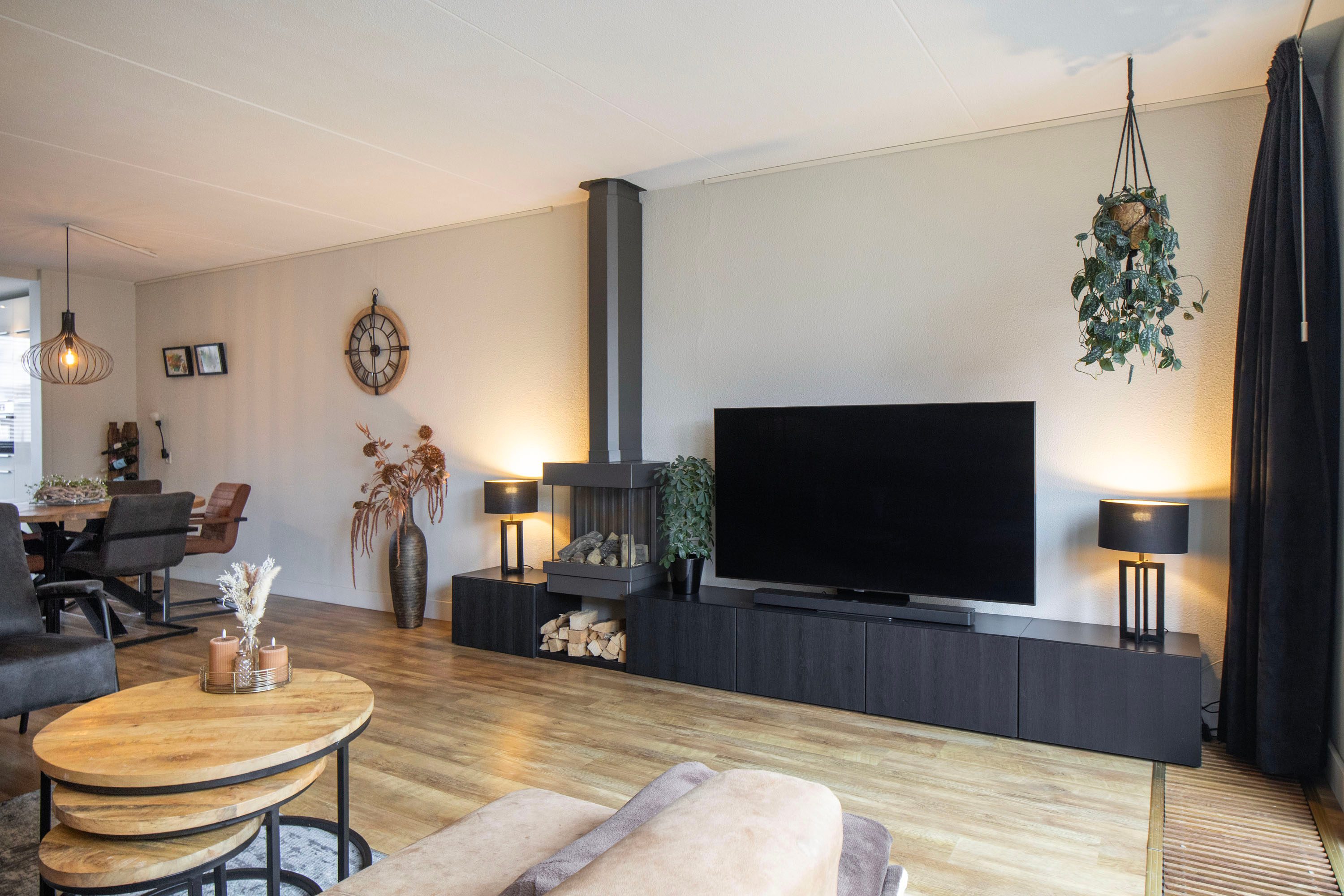 Via de entree heb je toegang tot de meterkast, het toilet, de trapopgang en de woonkamer. De ruime woonkamer van circa 38 m² is een fijne leefruimte met plek voor zowel een royale zithoek als een eethoek. De gaskachel zorgt voor extra sfeer en warmte. Via de openslaande deuren sta je direct in verbinding met de tuin, wat op mooie dagen zorgt voor een heerlijk binnen-buitengevoel.