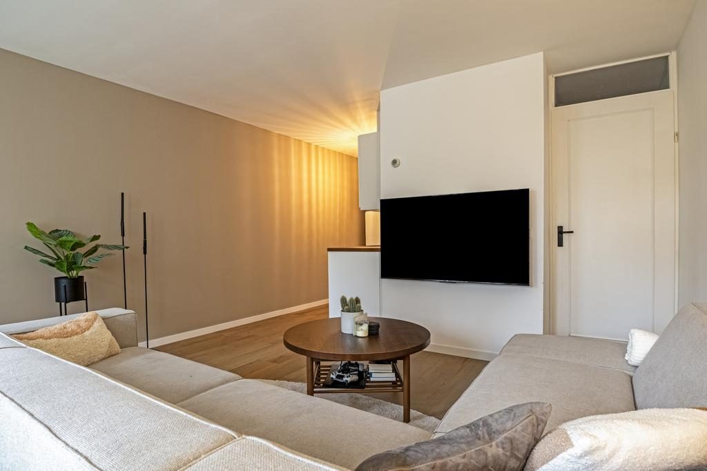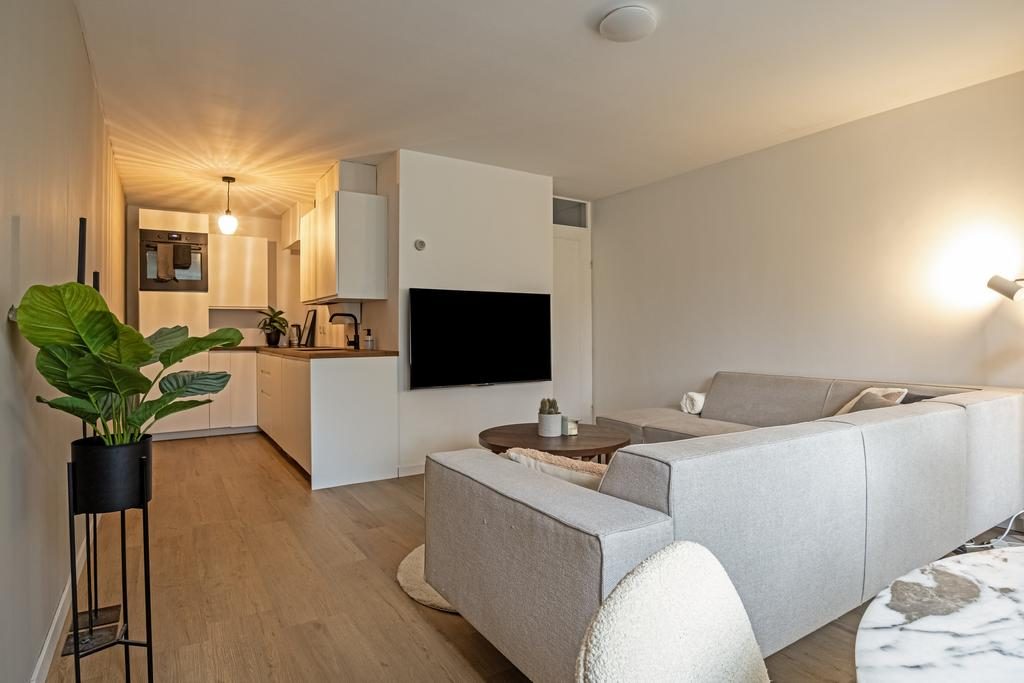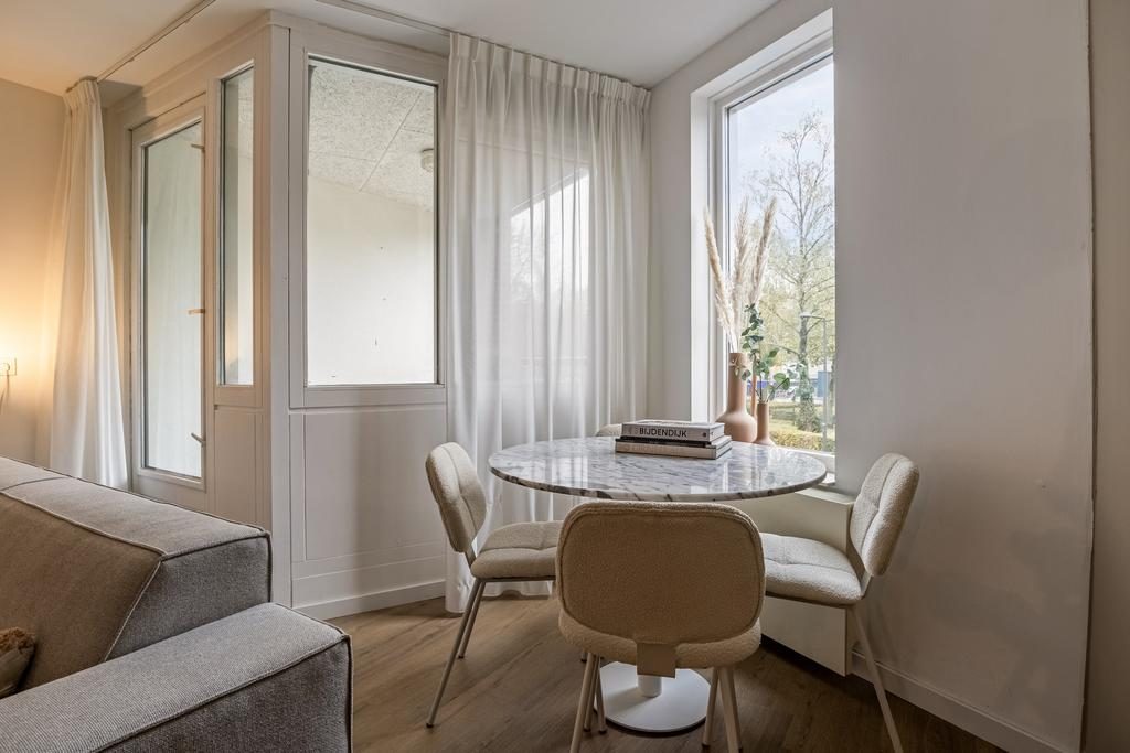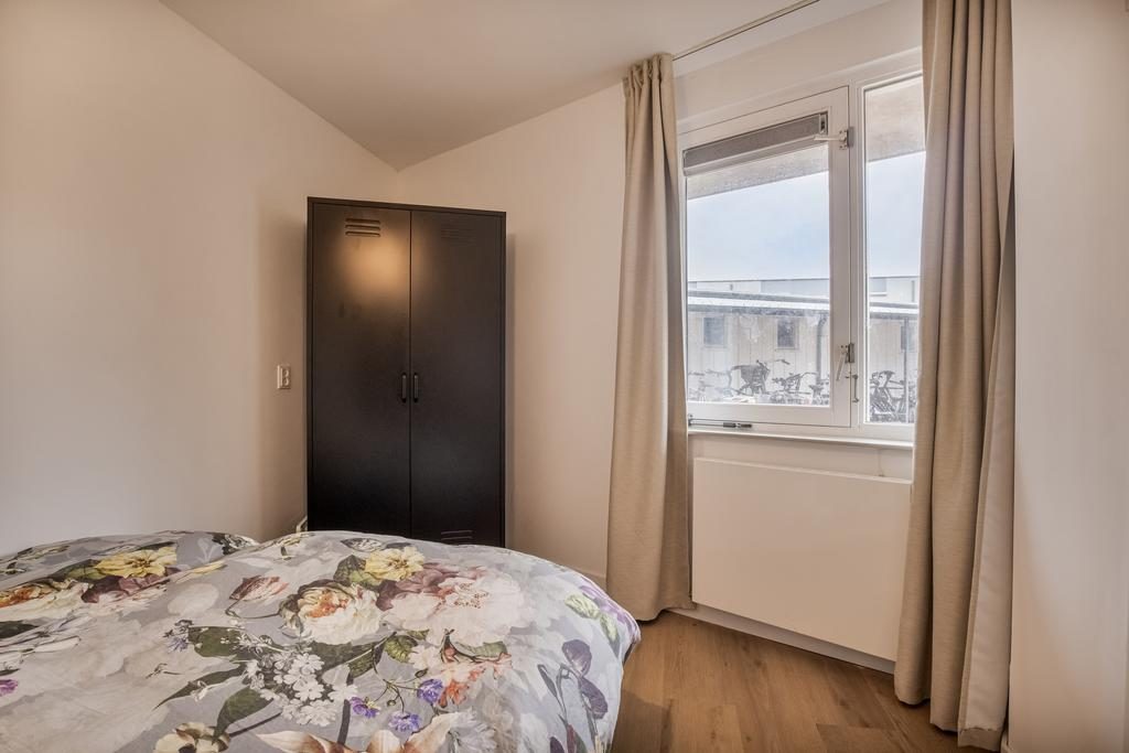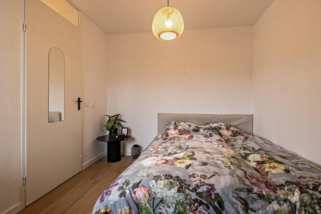 Aan de achterzijde van het appartement vind je de comfortabele slaapkamer, die rust en privacy biedt. Dankzij de slimme indeling en de moderne voorzieningen biedt dit appartement een perfecte balans tussen stijl en functionaliteit, waardoor het een ideale plek is om thuis te komen.