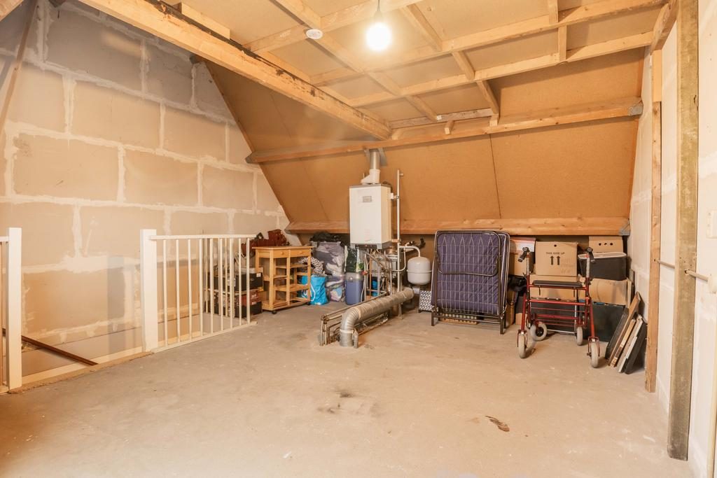 Via de vaste trap kom je bij de tweede verdieping. Hier is een royale open zolderruimte met mogelijkheden voor extra slaapkamers of een werkplek. Hier is ook de cv-installatie gesitueerd.