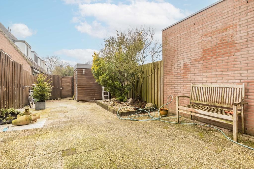 De achtertuin is gelegen op het noorden en grotendeels betegeld. De tuin is voorzien van groene borders en door de diepte is er altijd een plekje in de zon of schaduw te vinden. Rust en privacy staan hier centraal!