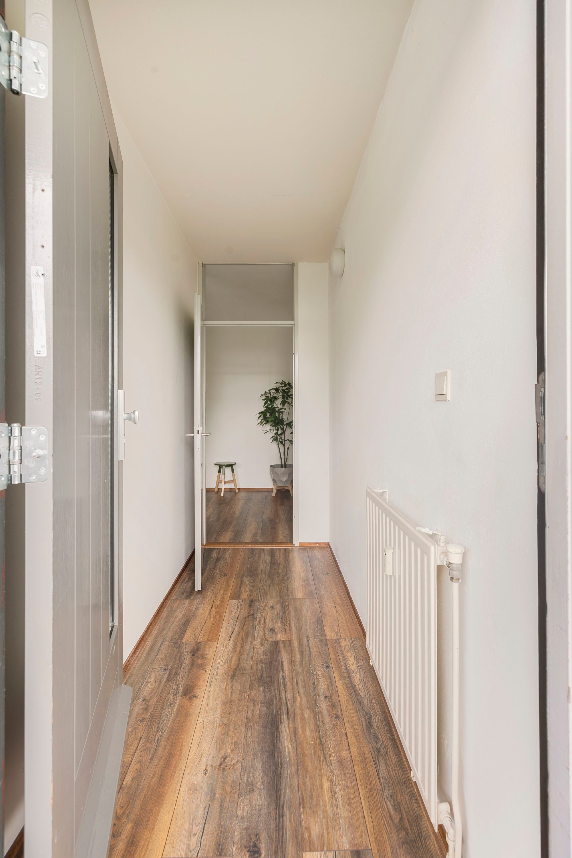Vanuit de hal zijn de gesloten keuken, badkamer en het separate toilet bereikbaar.