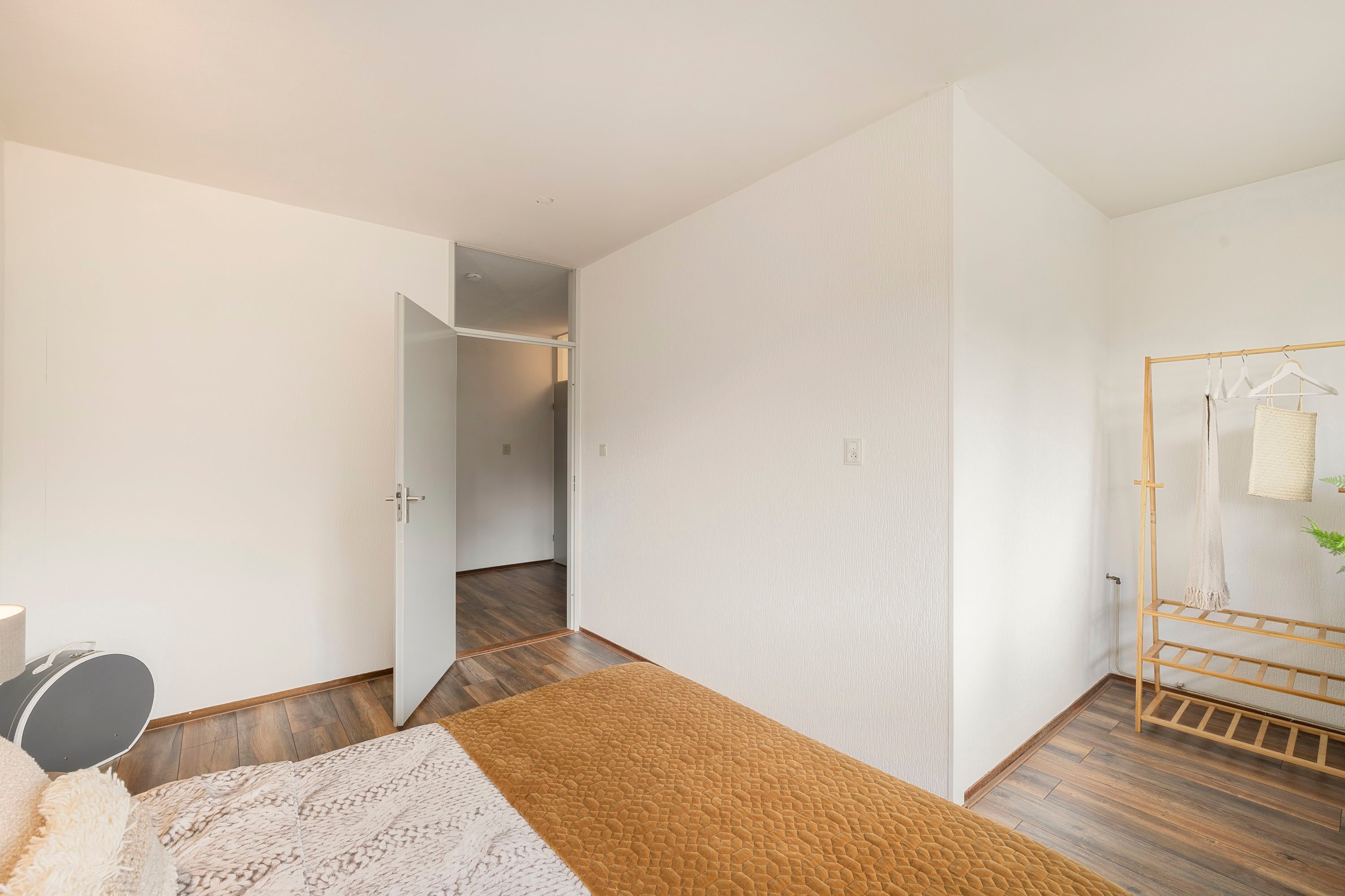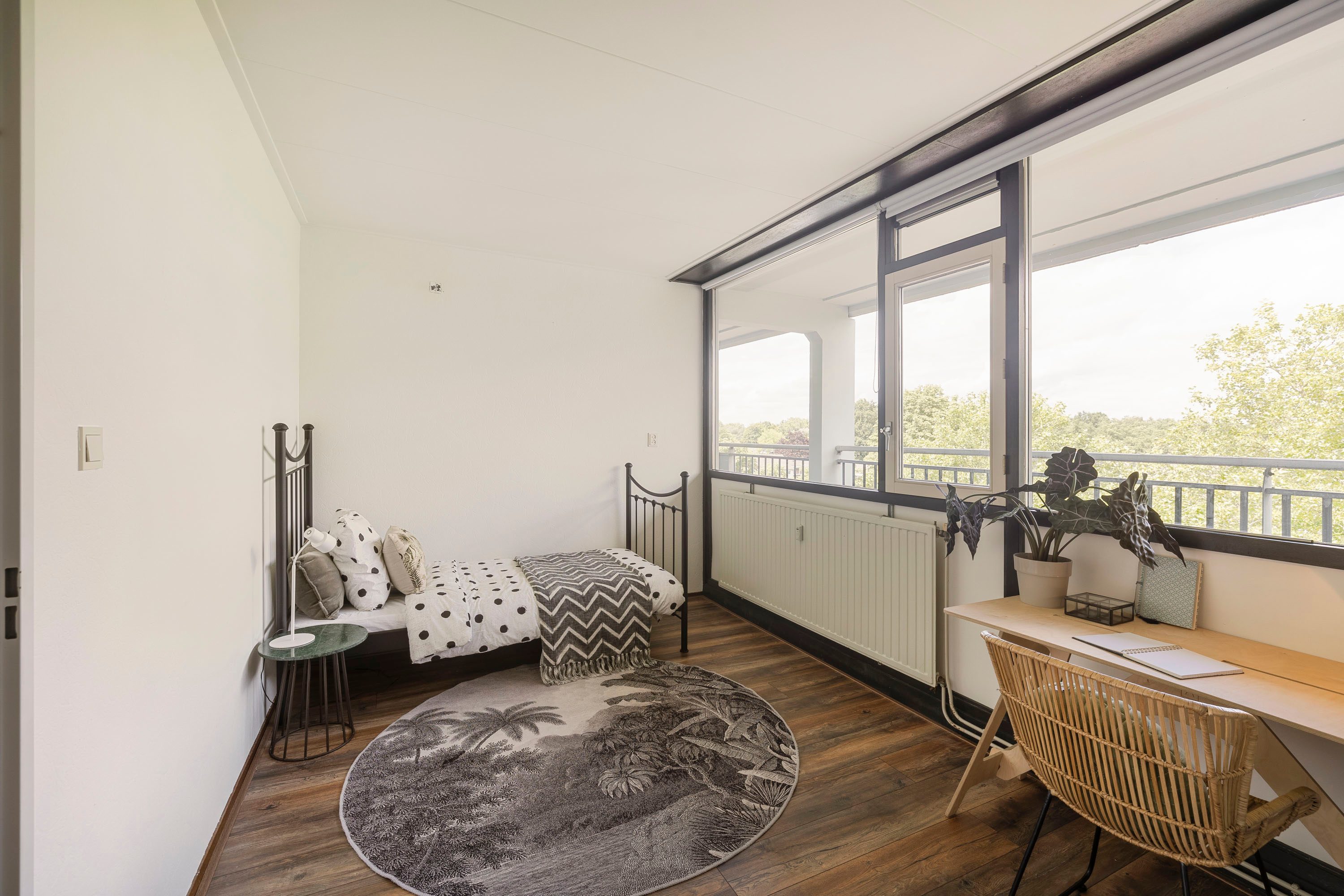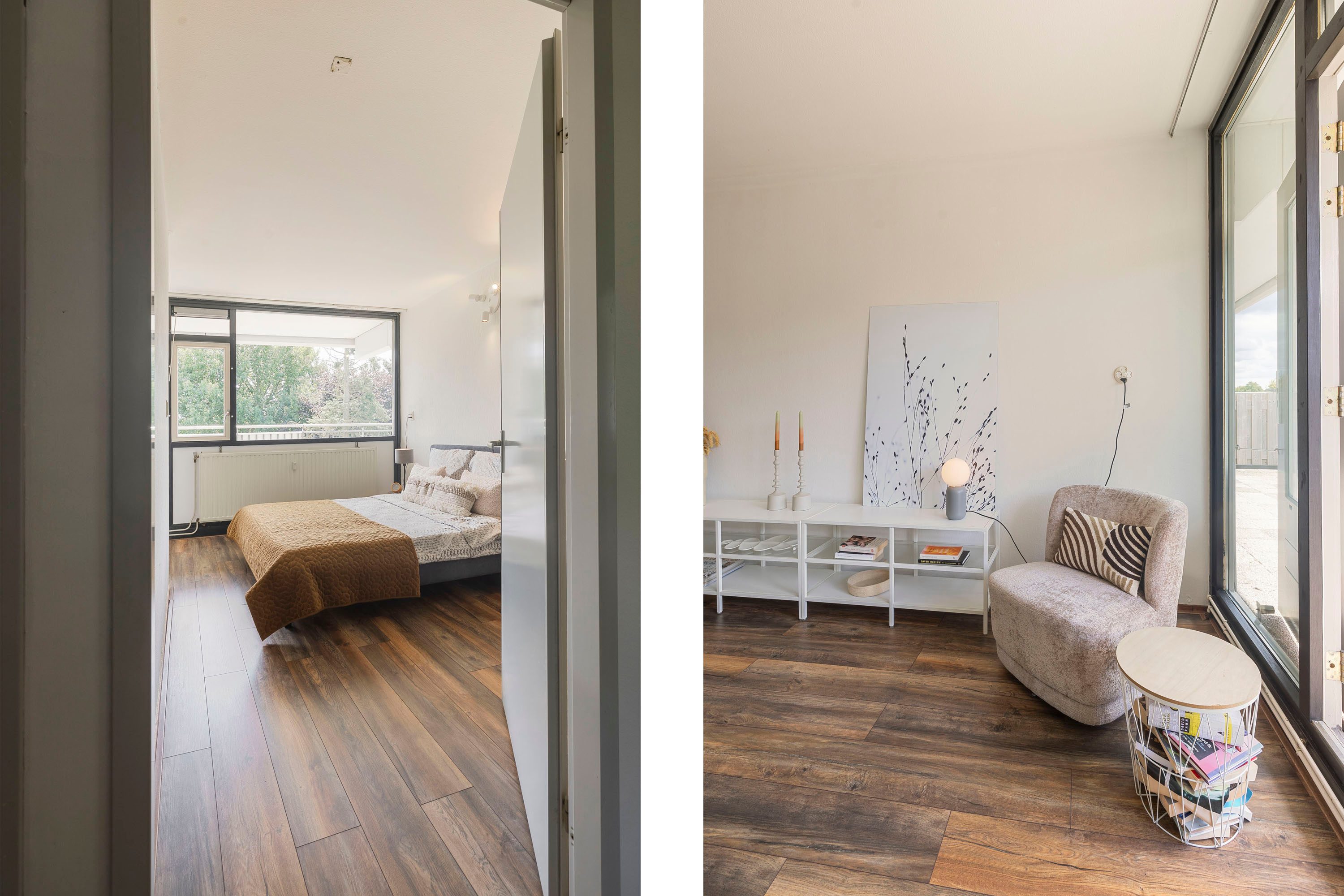 Het appartement beschikt over twee ruime slaapkamers van respectievelijk circa 14,5 m² en 13 m². De slaapkamer aan de balkonzijde is voorzien van grote ramen en biedt een mooi, vrij uitzicht. De tweede slaapkamer, gelegen aan de galerijzijde, is ideaal als werk- of logeerkamer. Beide kamers zijn keurig afgewerkt en bieden volop indelingsmogelijkheden.