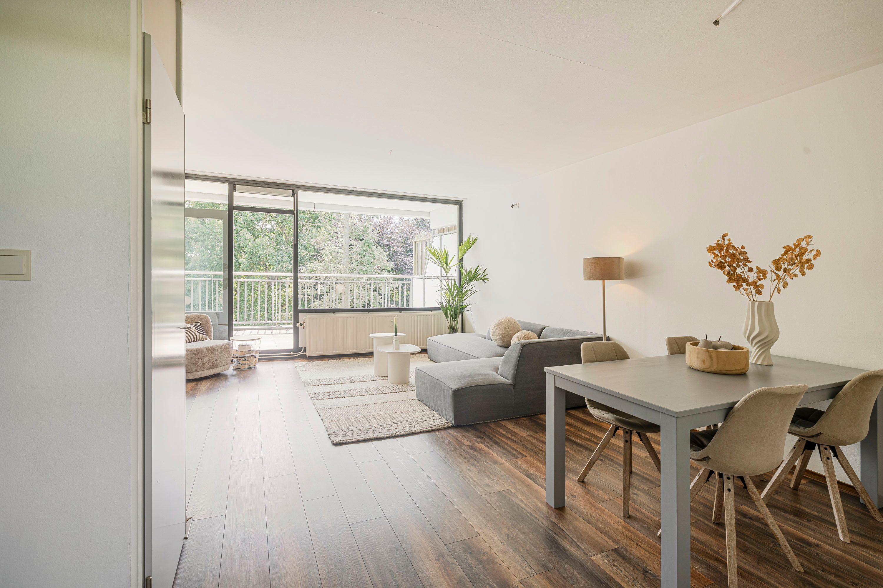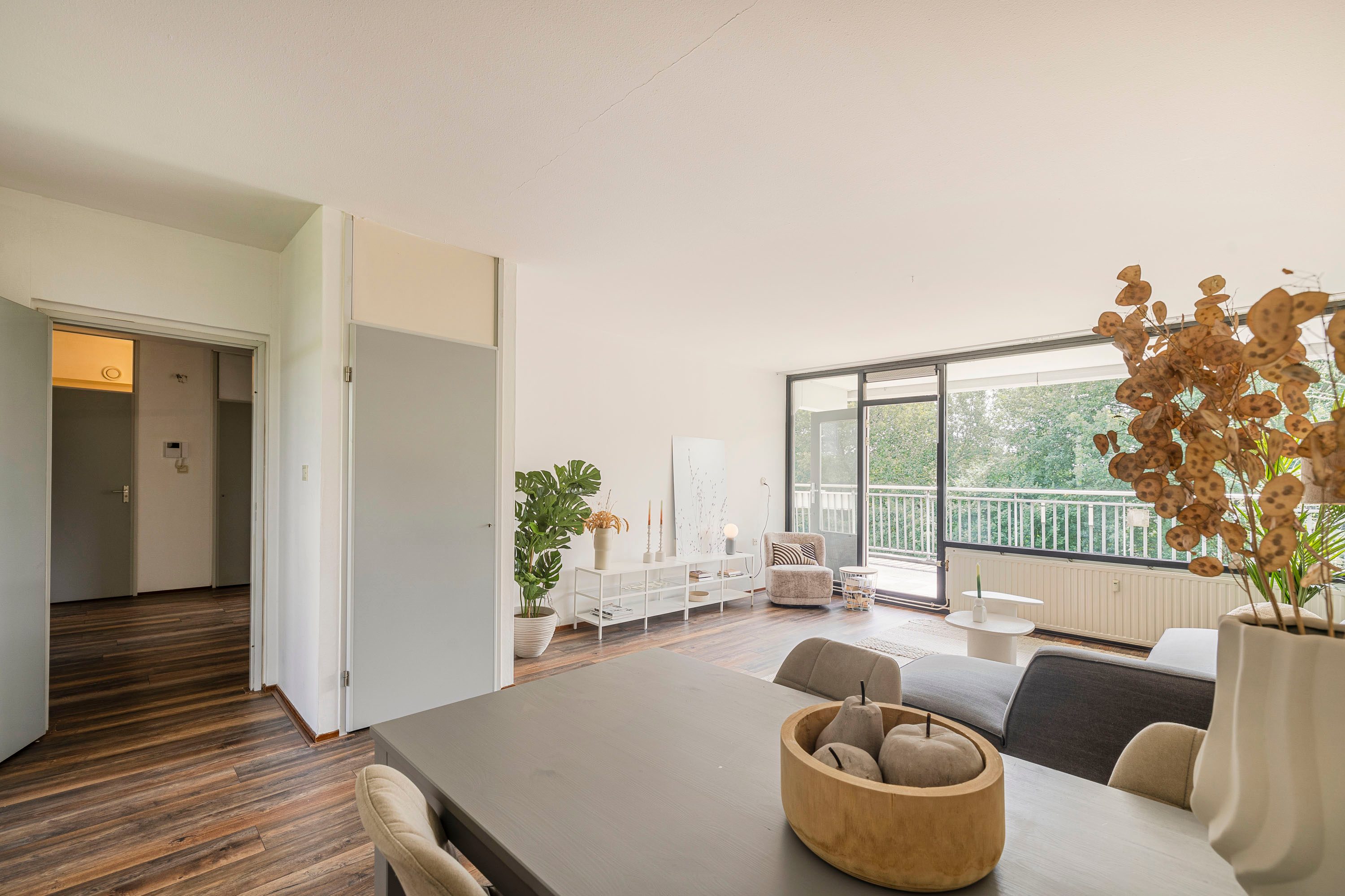 Bij binnenkomst kom je in de entree met een doorloop naar de hal, die toegang biedt tot meerdere vertrekken. De woonkamer van circa 29 m² is ruim en licht, dankzij de grote raampartijen die zorgen voor een prettige natuurlijke lichtinval. Vanuit de woonkamer heb je direct toegang tot het royale balkon van circa 27 m², gelegen op het zuiden. Hier kun je in alle rust genieten van het prachtige uitzicht en ontspannen in de zon.