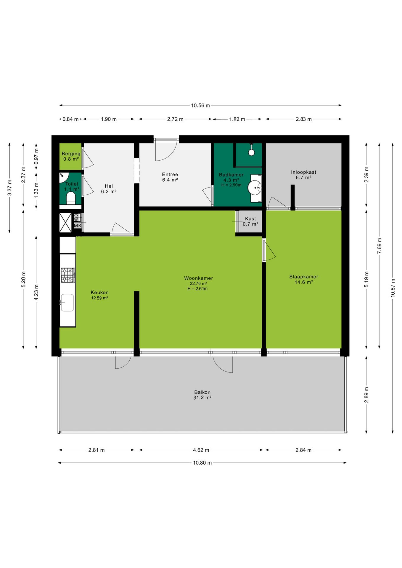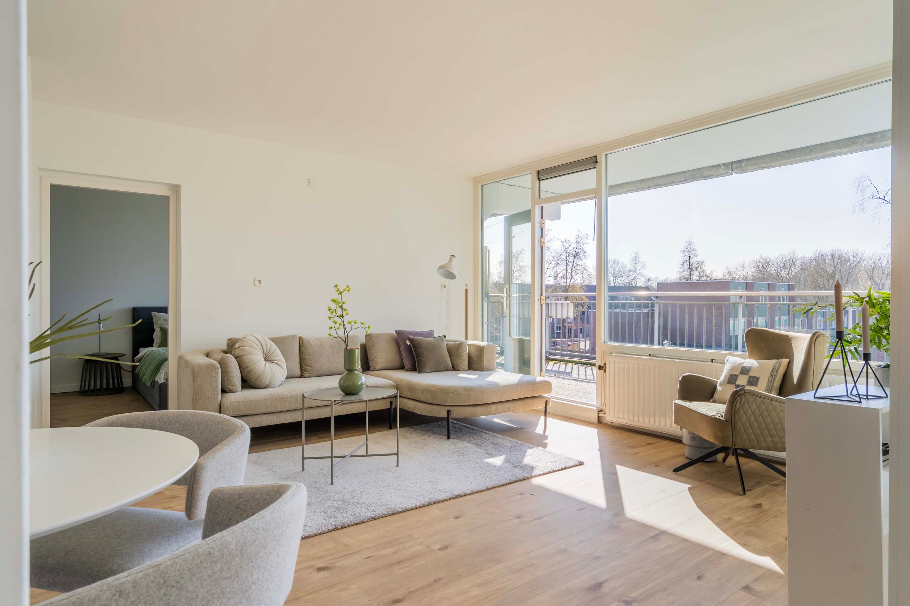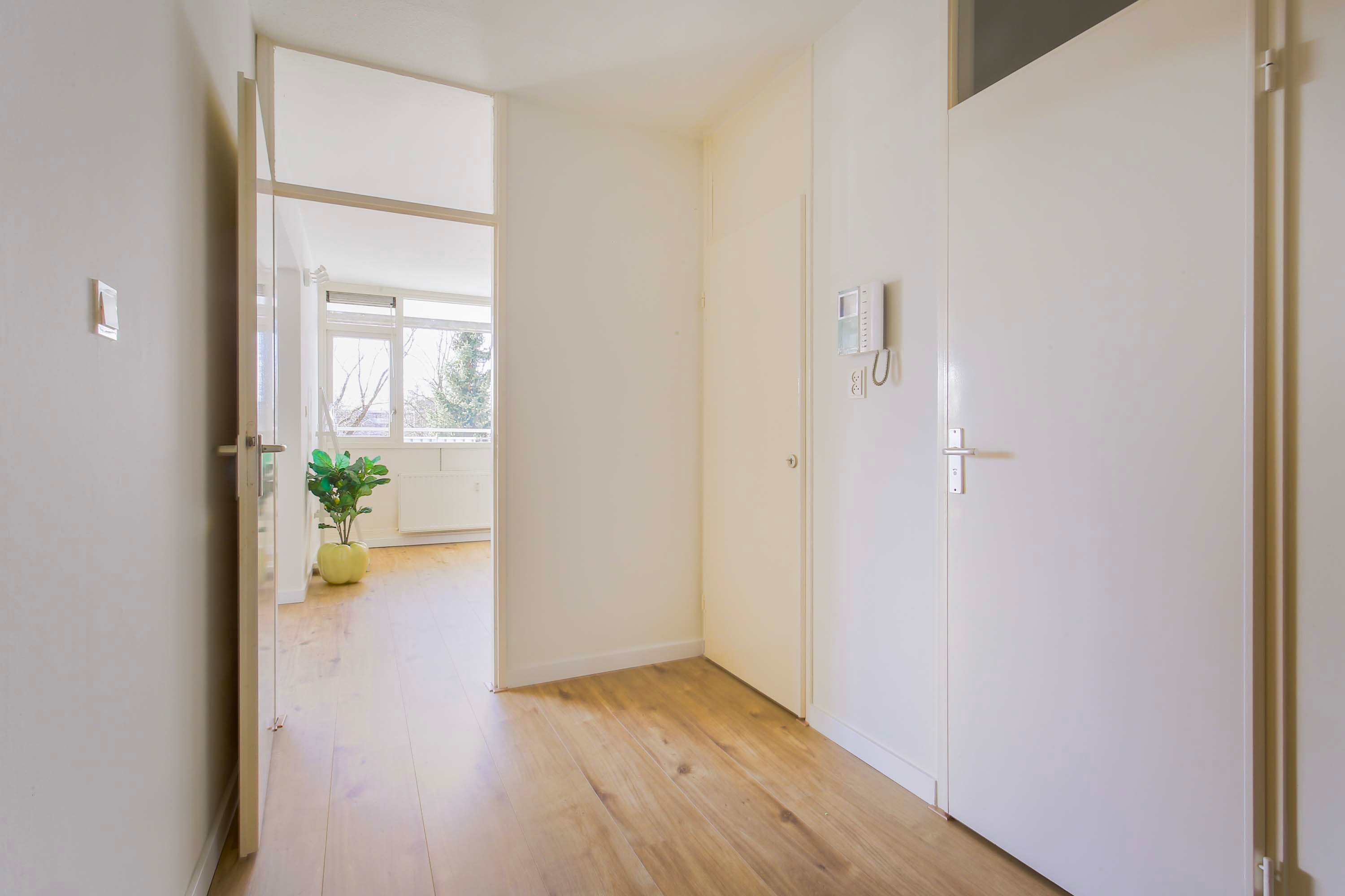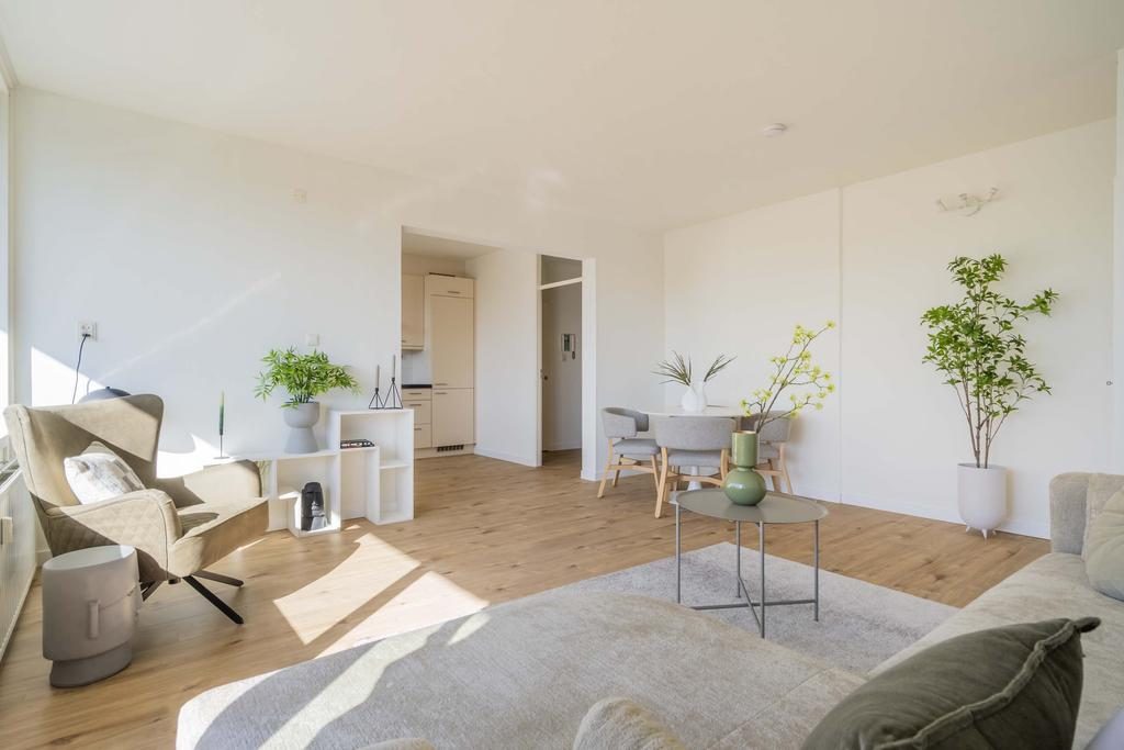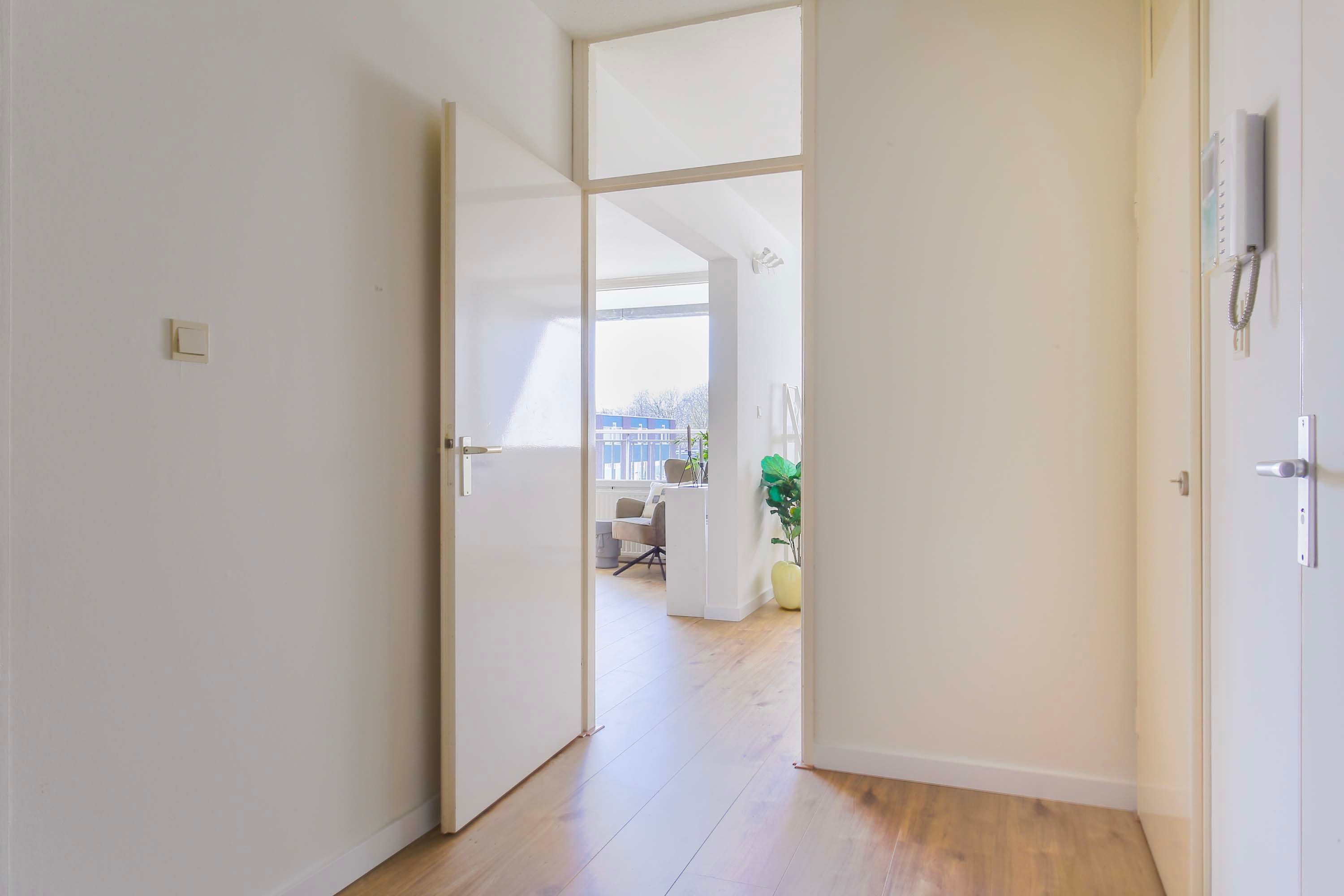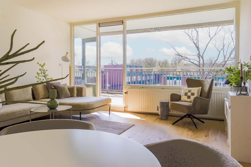 Bij binnenkomst tref je een ruime entree/hal met toegang diverse ruimtes. De woonkamer (22m2) is ruim en licht dankzij grote raampartijen en biedt directe toegang tot het zonnige balkon van 31 m², gelegen op het westen. Hier geniet je van een fantastisch uitzicht en kun je heerlijk ontspannen in de zon.