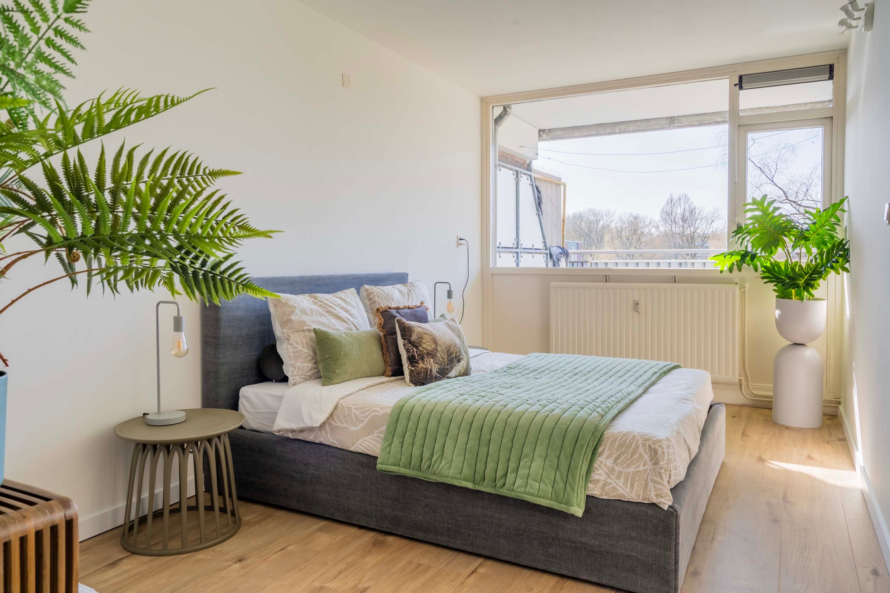 Dit appartement beschikt over een ruime slaapkamer met riante walk-in closet (samen ca. 22m2). De slaapkamer grenst aan de balkonzijde en heeft grote ramen en een mooi uitzicht.