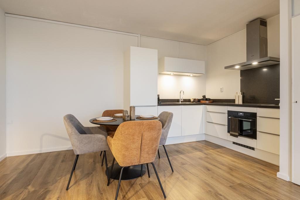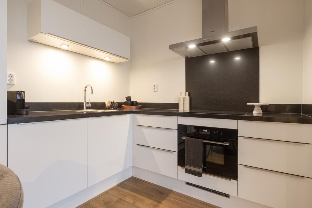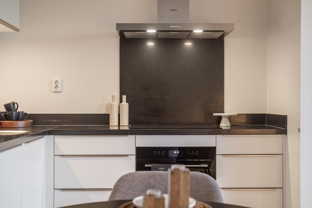 De luxe, moderne, in hoekopstelling open keuken is strak afgewerkt in 2020 en uitgerust met moderne inbouwapparatuur zoals: een koelkast, vriezer, oven, inductiekookplaat, vaatwasser en afzuigkap. Naast de keuken is er voldoende ruimte voor een eettafel zodat je altijd met je familie of vrienden in contact blijft. Bij de keuken zit ook extra bergkast, deze beschikt over voldoende opbergruimte.