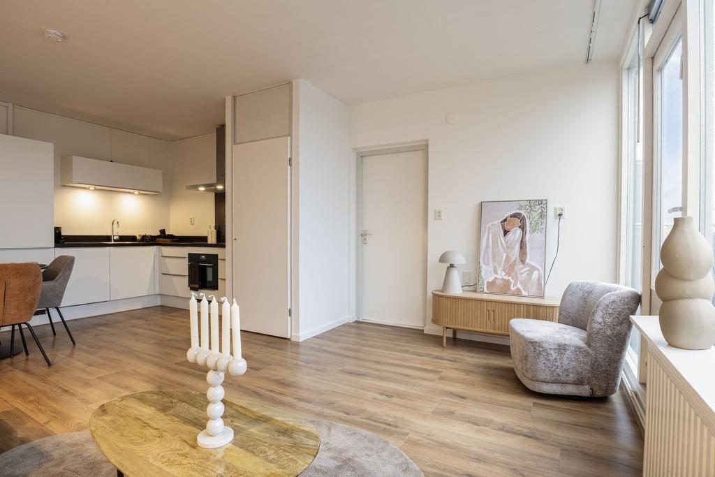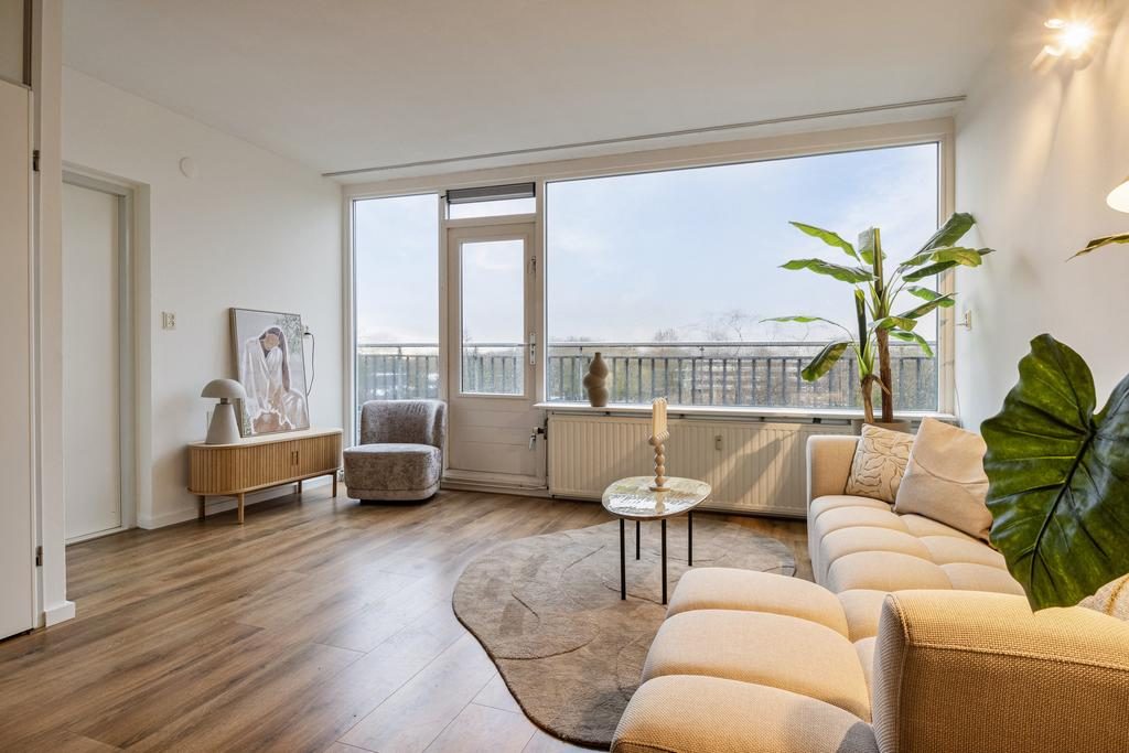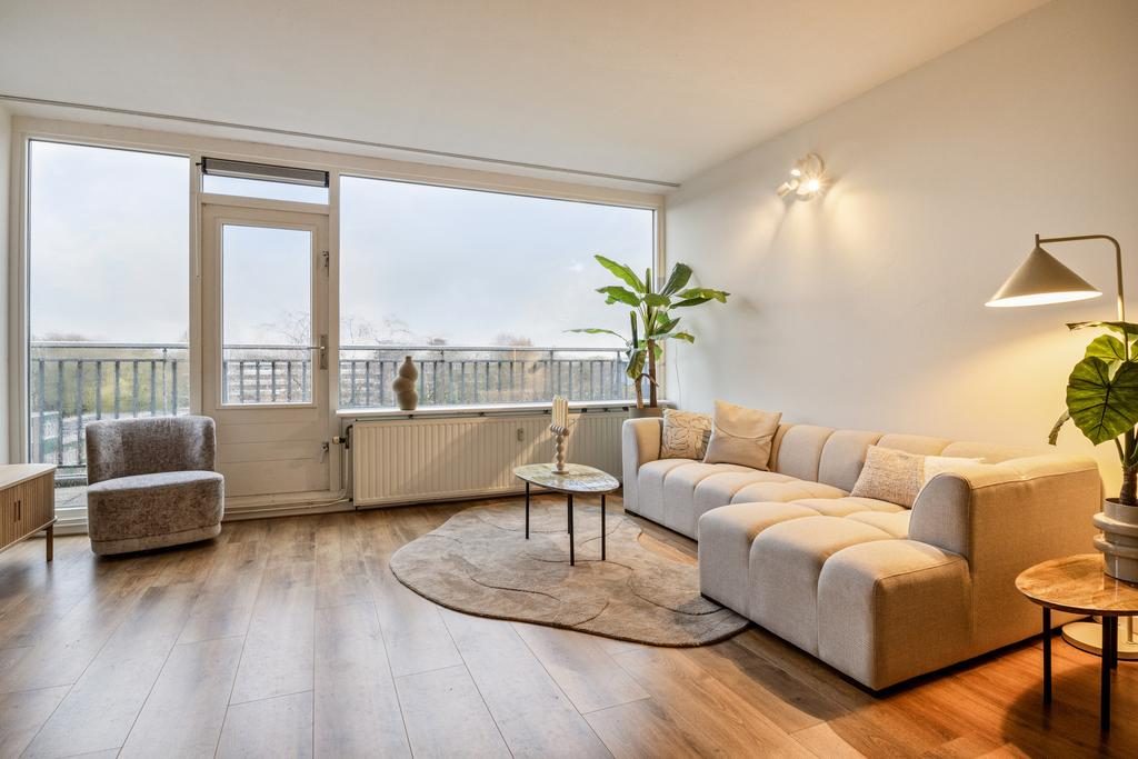 De ruime woonkamer met grote raampartijen op het zuidwesten, zorgen voor een overvloed aan daglicht en is de woonkamer een heerlijke plek om te ontspannen na een lange werkdag. Vanuit de woonkamer heb je uitzicht over het zonnige balkon (14m2) welke gelegen is op het zuidwesten en waar je tot in de laatste uurtjes kunt genieten van de zon!