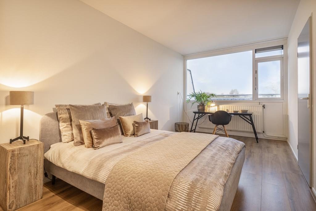 Vanuit de woonkamer kom je bij de grote slaapkamer van maar liefst 17m2. Ook de slaapkamer beschikt over heerlijk veel daglicht door de grote ramen.