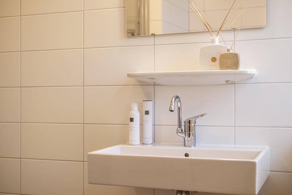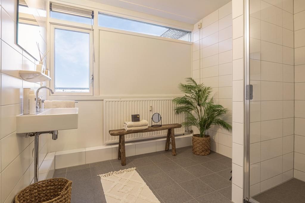 Eenmaal teruggekomen in de hal kom je bij de stijlvolle badkamer, deze is volledig licht betegeld, strak afgewerkt in 2020 en voorzien van een inloopdouche, wastafel en een raam voor natuurlijk licht en ventilatie. Ook is er een wasmachine aansluiting.