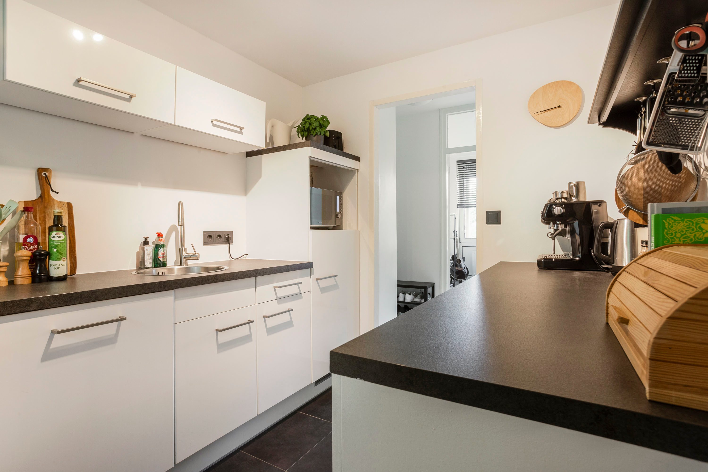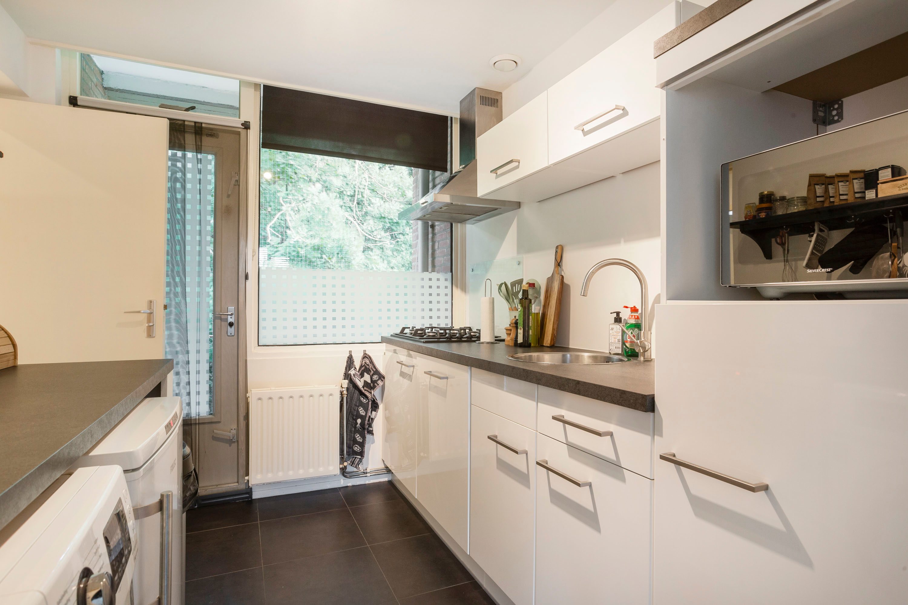 - Moderne keuken met inbouwapparatuur én aansluitingen voor wasmachine en droger