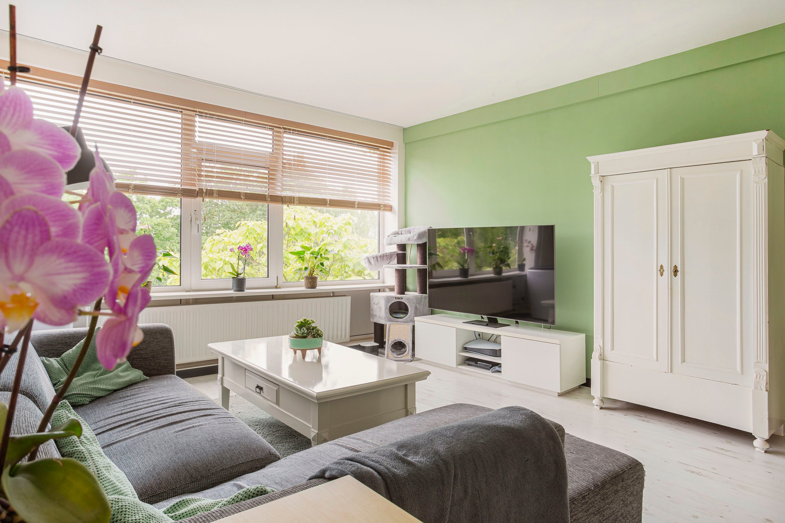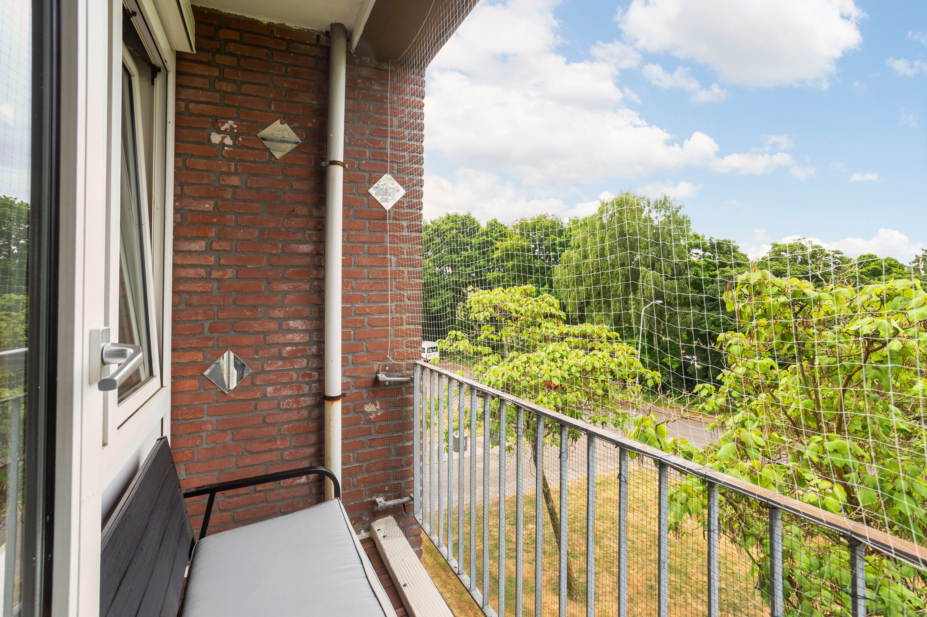 Van buiten bestaande uit groen en lucht, van binnen fris en modern: deze combinatie zorgt ervoor dat je hier heerlijk tot rust komt! Door de straat is er bijna alleen maar bestemmingsverkeer, dus hoef je je geen zorgen te maken om drukte voor de deur. De ligging is echt ideaal: vanuit de woonkamer en het balkon aan de voorkant heb je een vrij uitzicht op een rustige straat, terwijl je aan de achterkant uitkijkt over een brede groenstrook. Een fijne plek om te wonen in al dat moois!