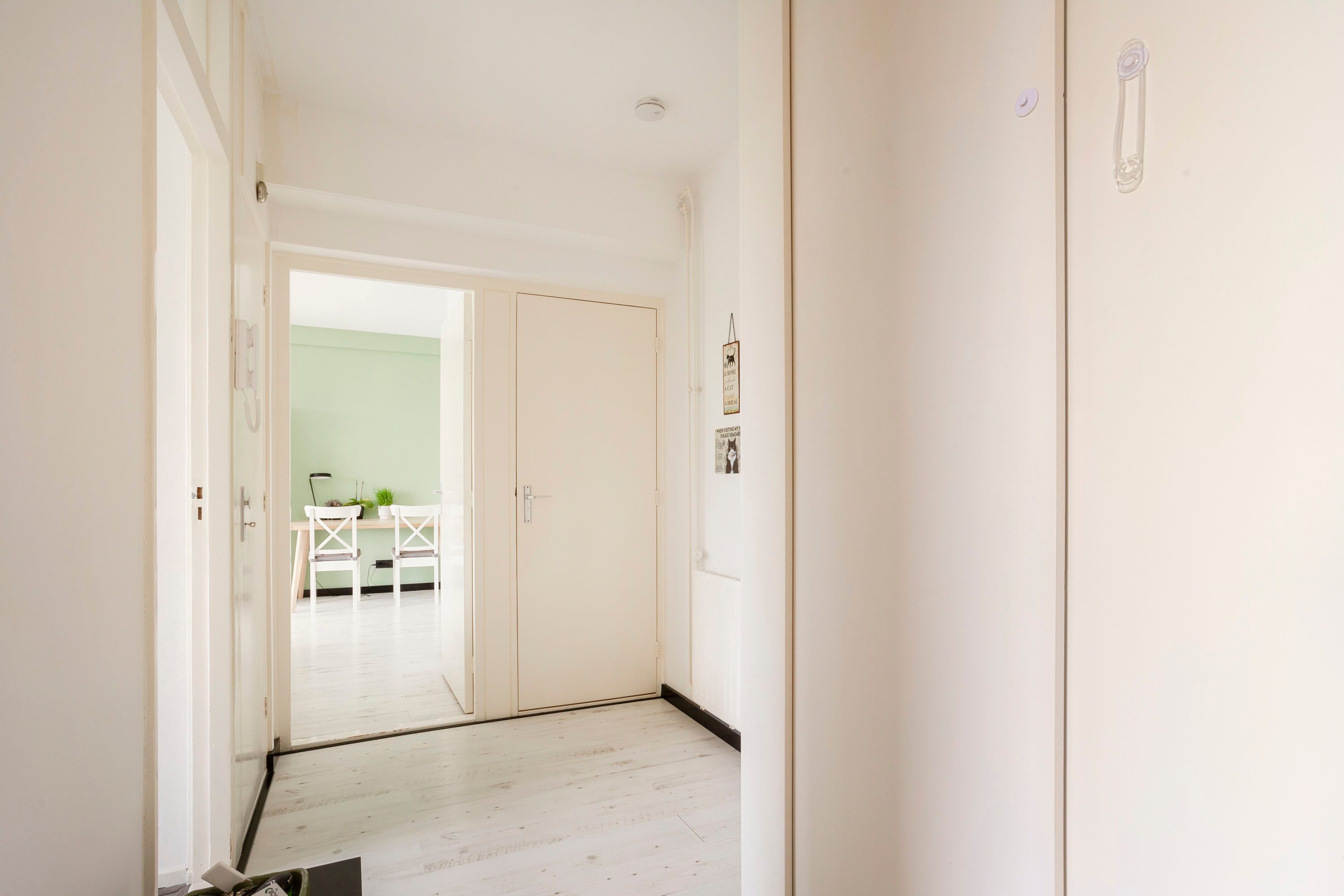 Binnenkomen doe je via de centrale entree van het appartementencomplex, voorzien van een afgesloten deur met een intercominstallatie. Veilig en netjes! Loop je door naar het appartement zelf, dan kom je binnen in een ruime hal waar je genoeg plek hebt voor een garderobe. Hier vind je ook de meterkast met álle aansluitingen die je nodig hebt.