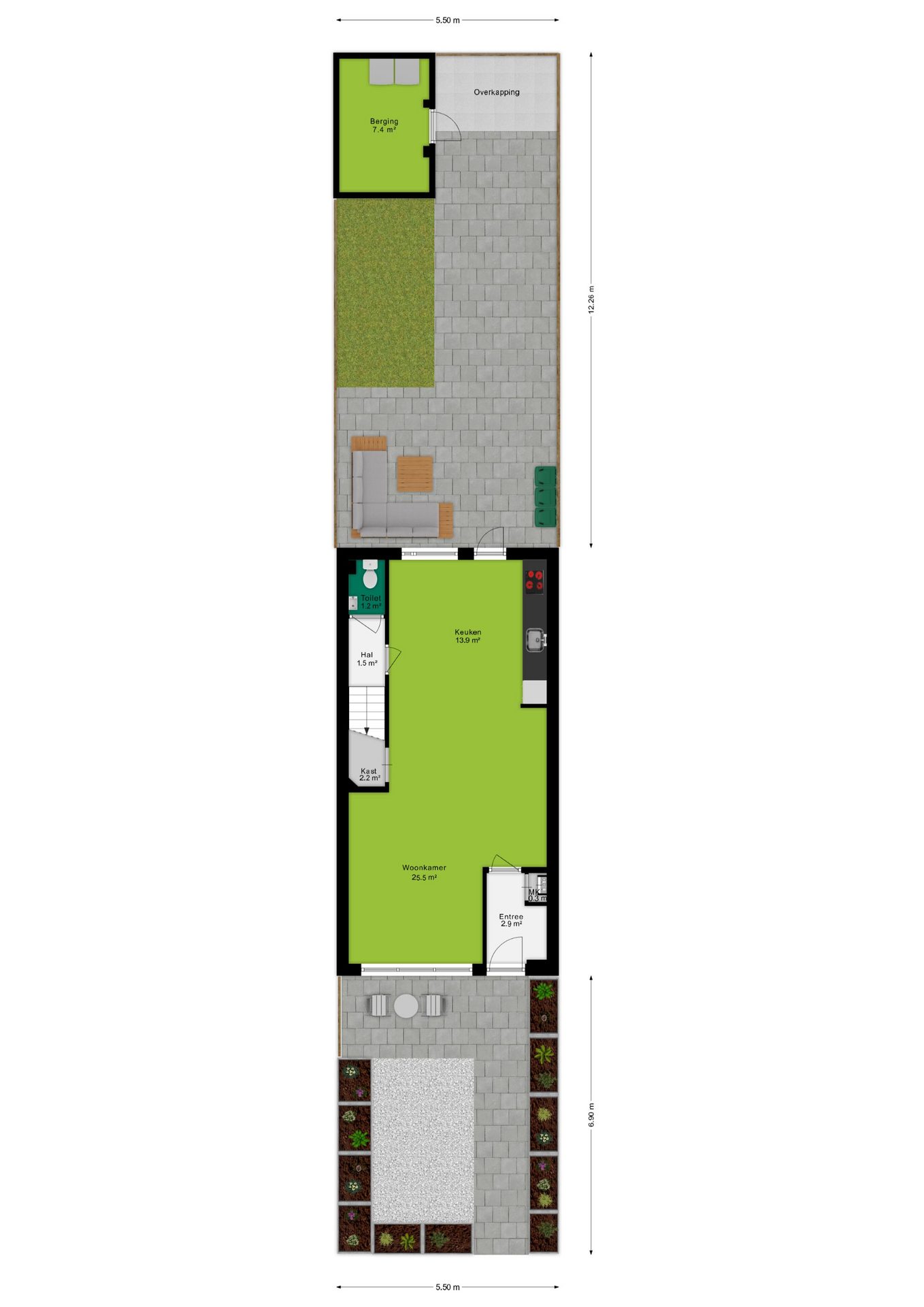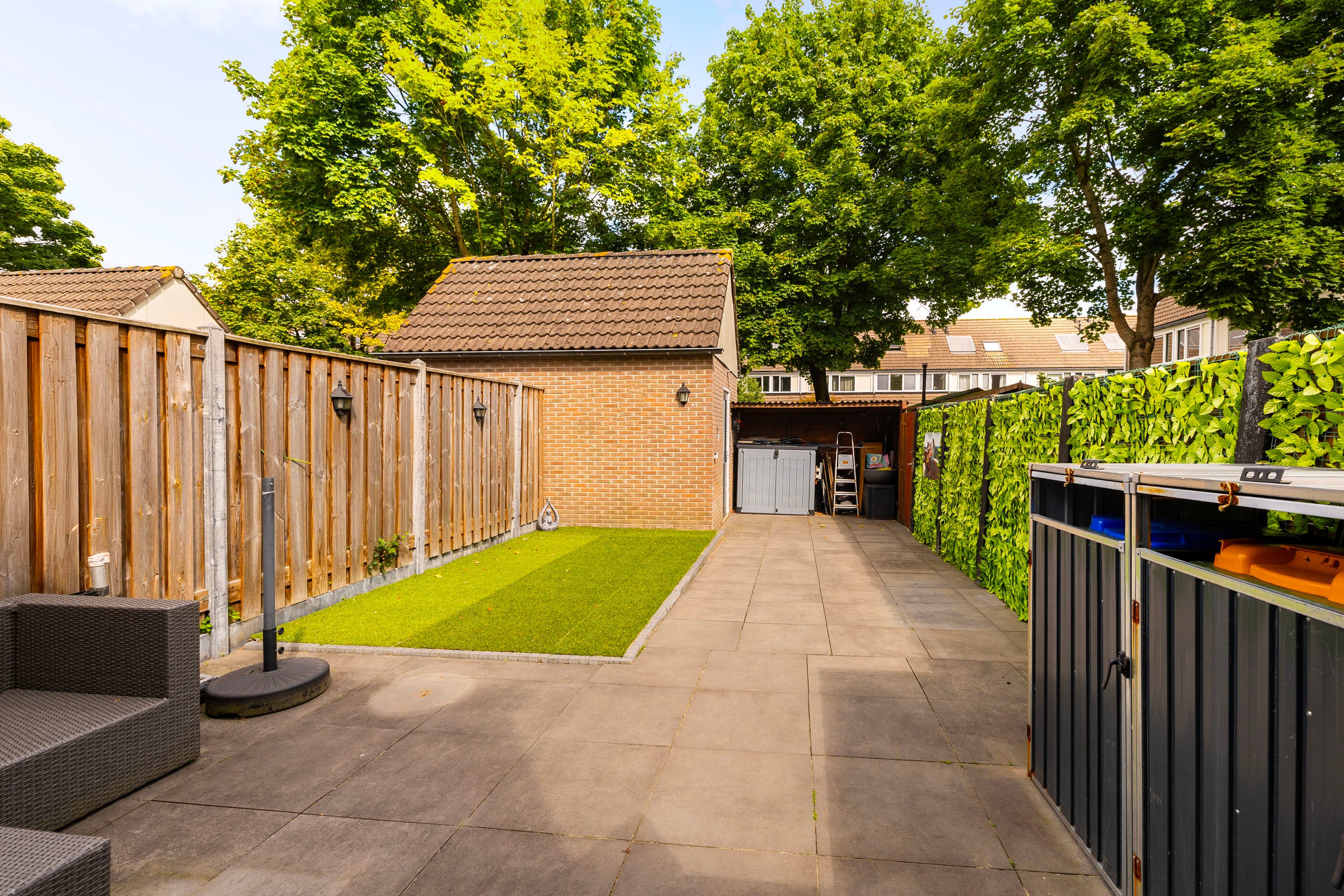 De achtertuin is gelegen op het noorden en beschikt over een stenen berging en een achterom. Een praktische en onderhoudsvriendelijke buitenruimte, ideaal voor fietsen, tuinspullen of speelruimte voor kinderen.