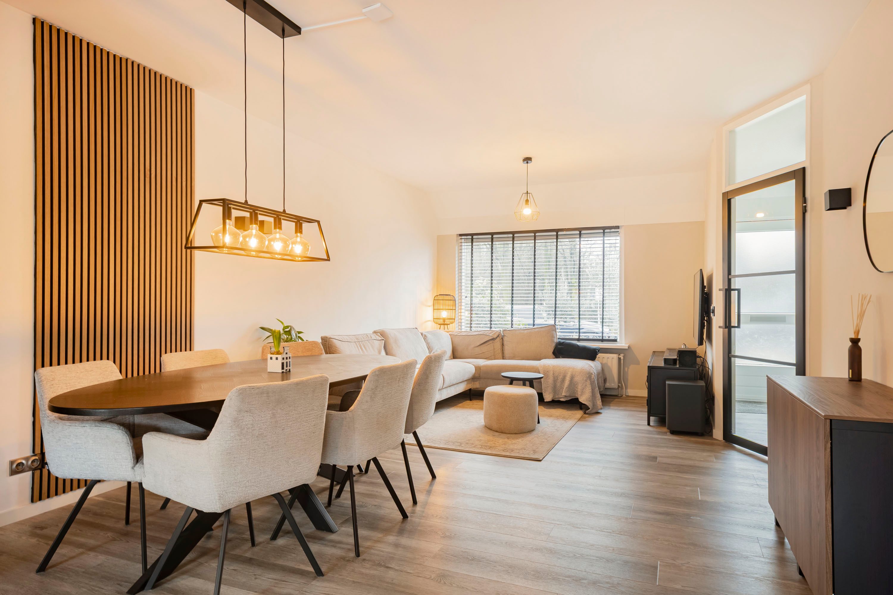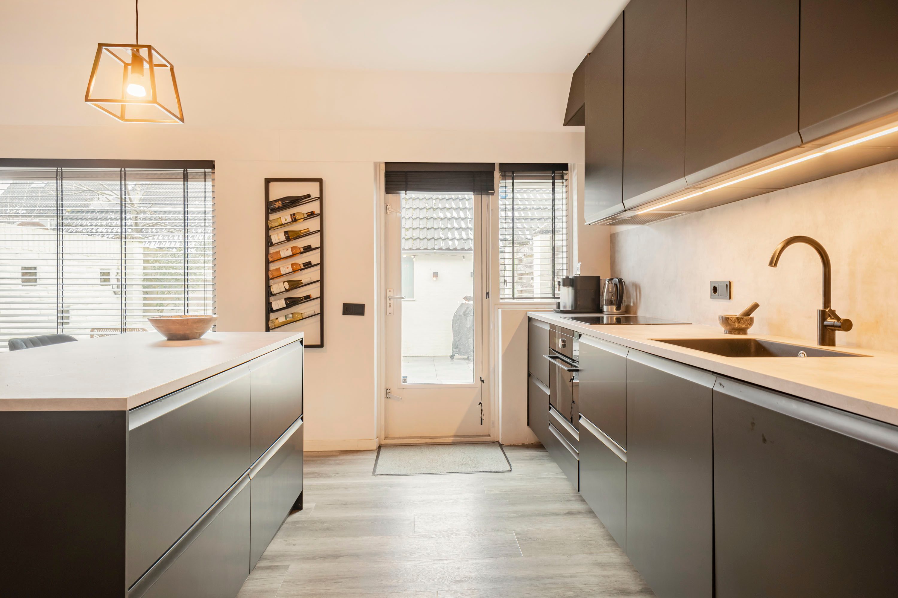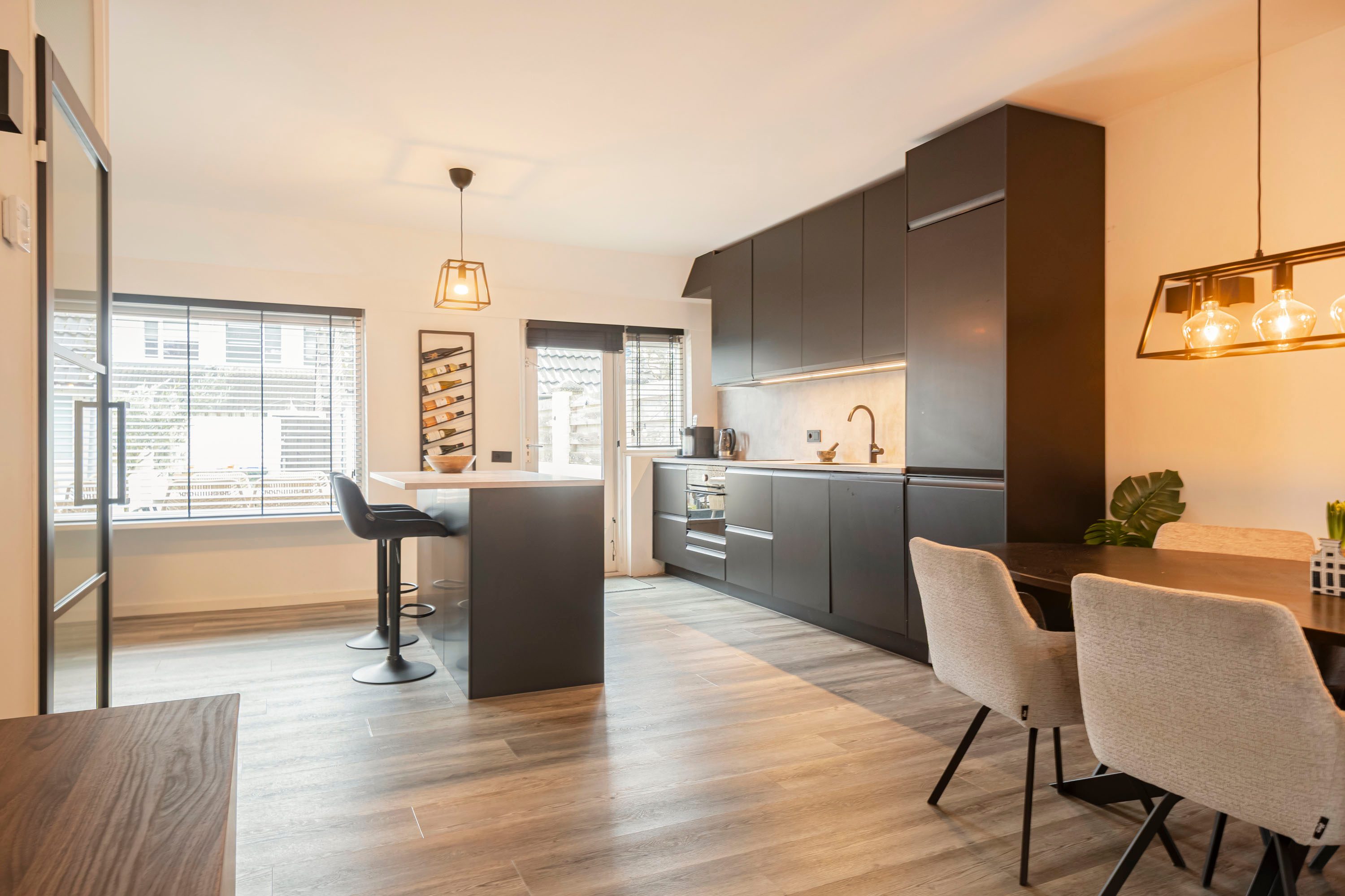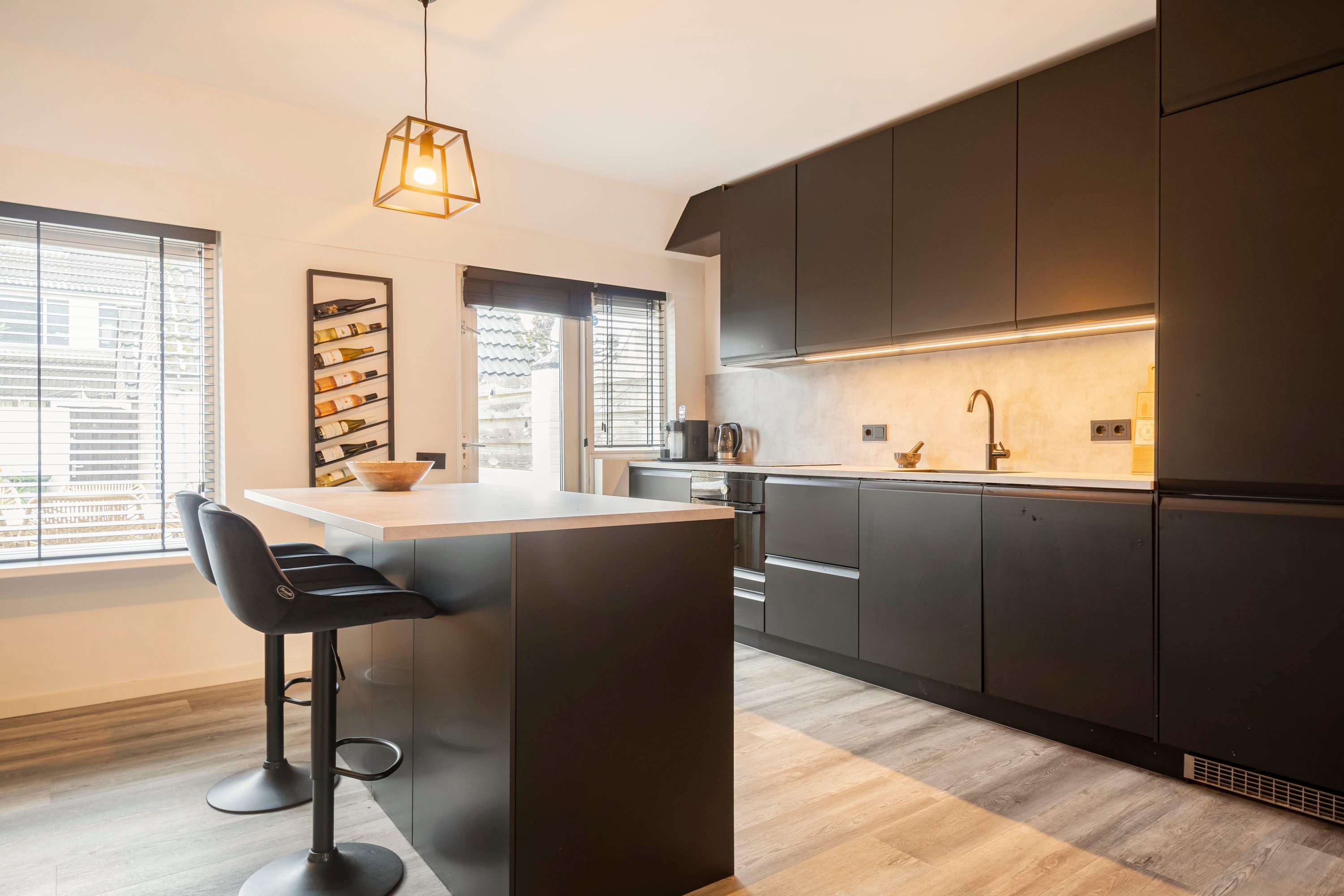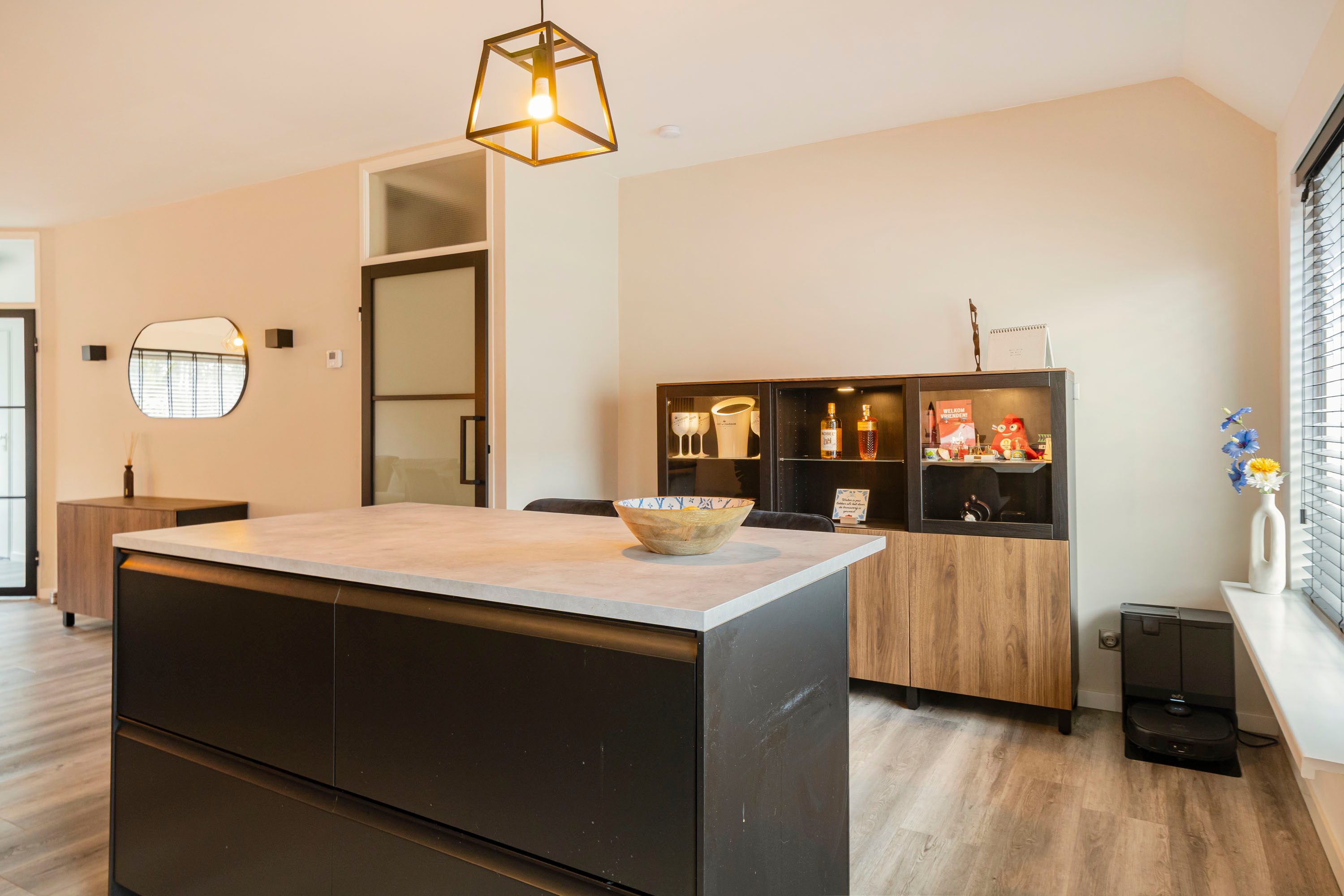 De keuken is in 2024 vernieuwd en uitgerust met hoogwaardige inbouwapparatuur, waaronder een inductiekookplaat, afzuigkap, combi-oven, koel-vriescombinatie en vaatwasser. Leuk detail is de bar aan het keukenblad, ideaal voor een snel ontbijt of een gezellig moment tijdens het koken. De keuken biedt bovendien voldoende ruimte om eventueel een speelhoekje voor de kinderen te creëren. Vanuit de keuken loop je direct de achtertuin in.