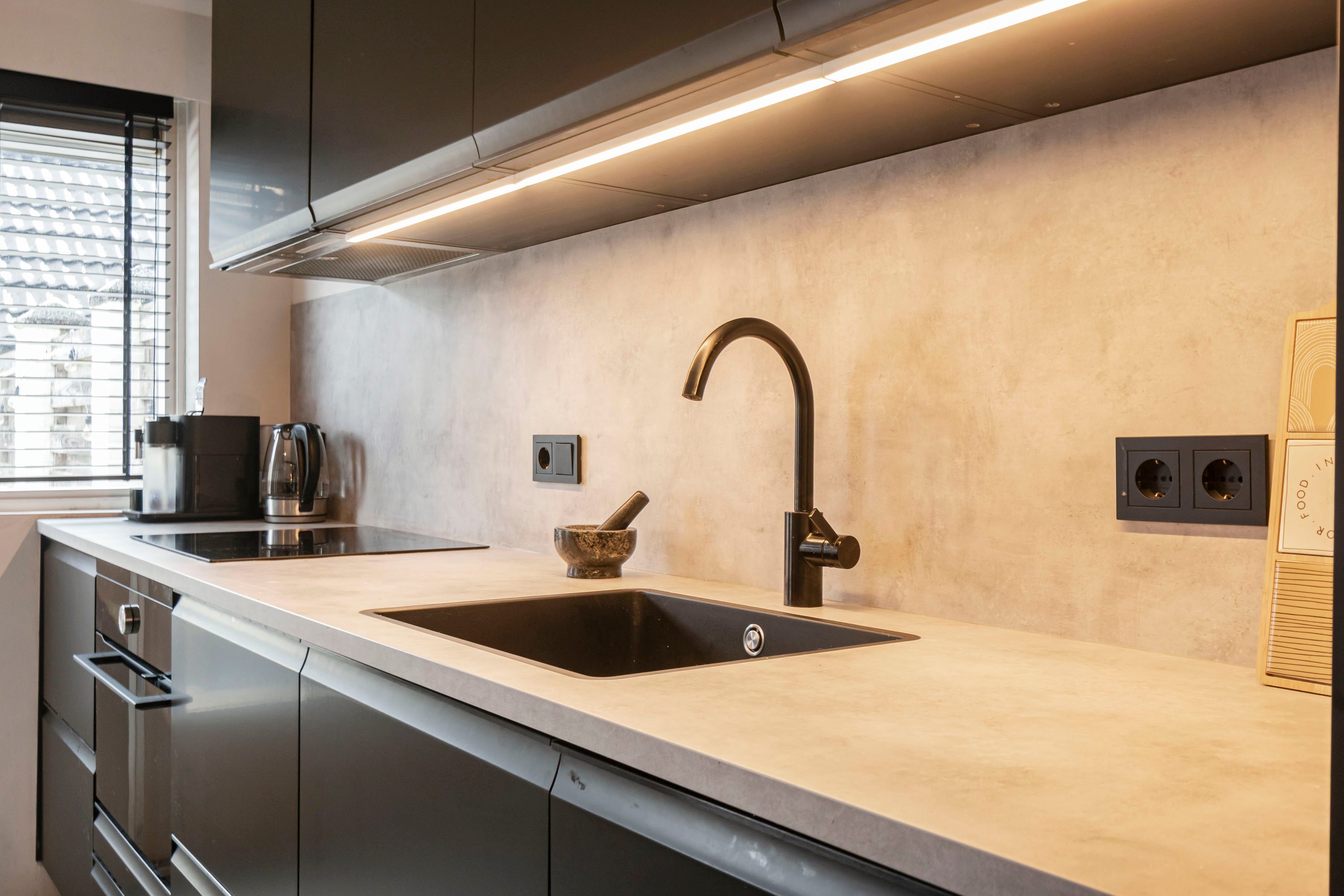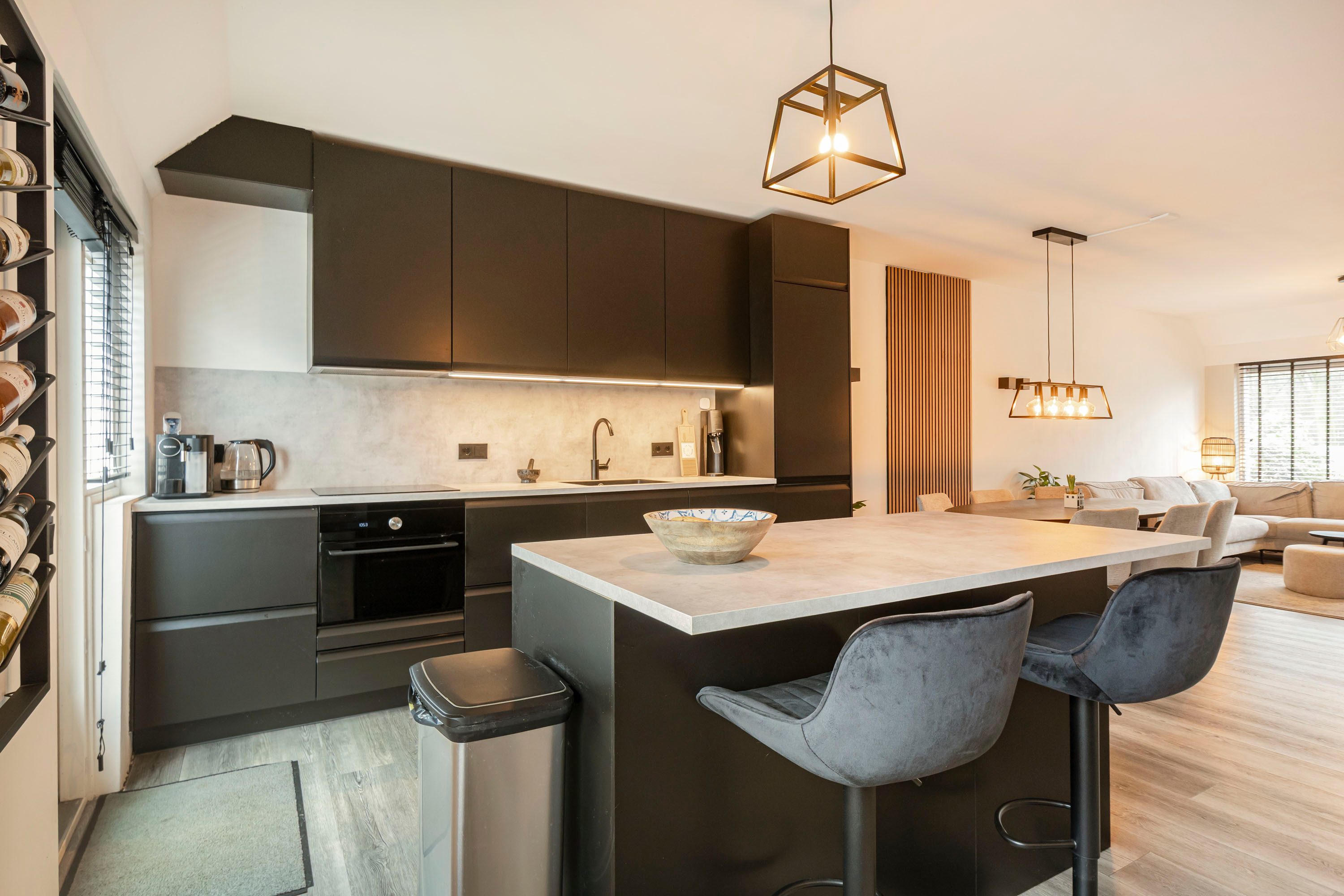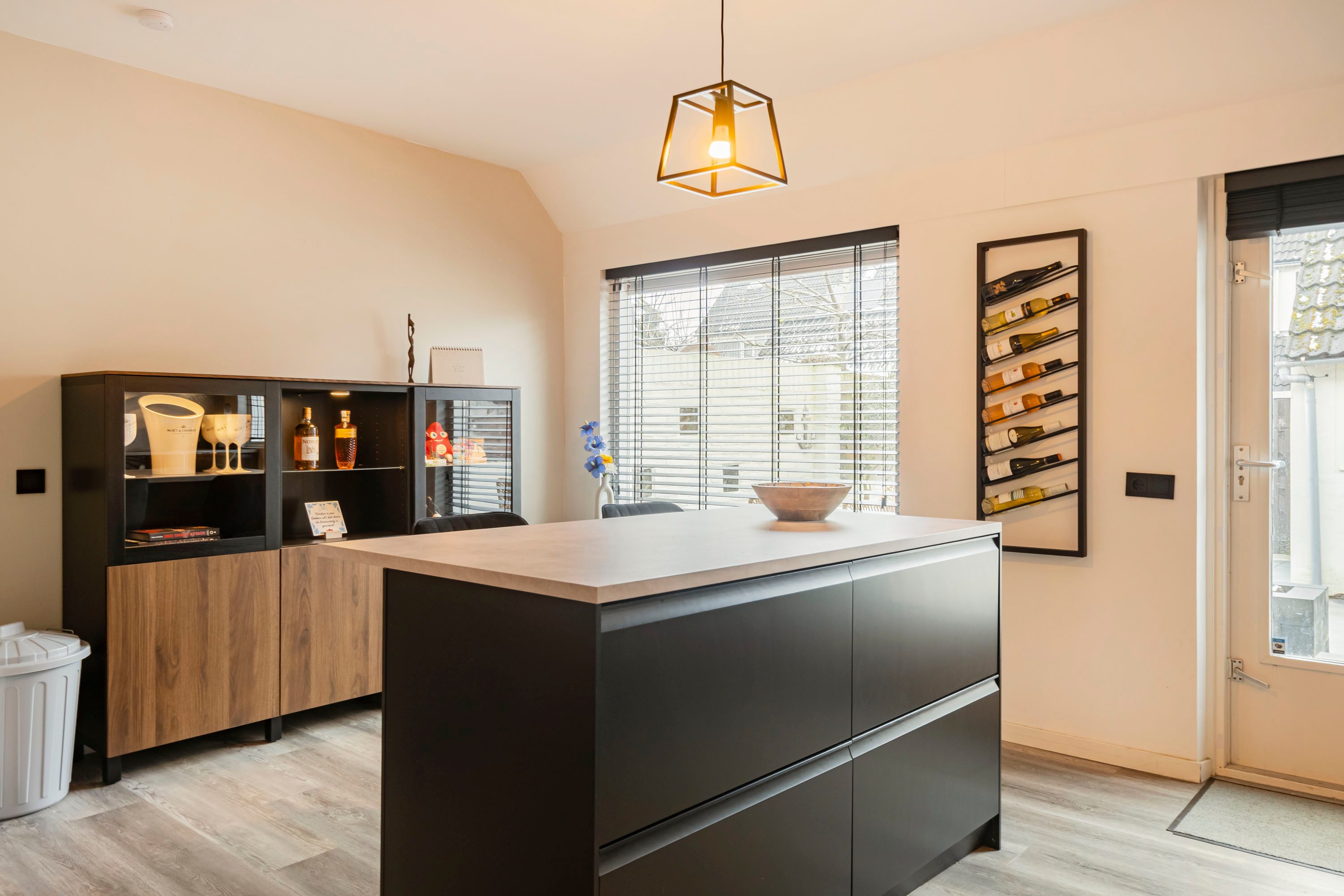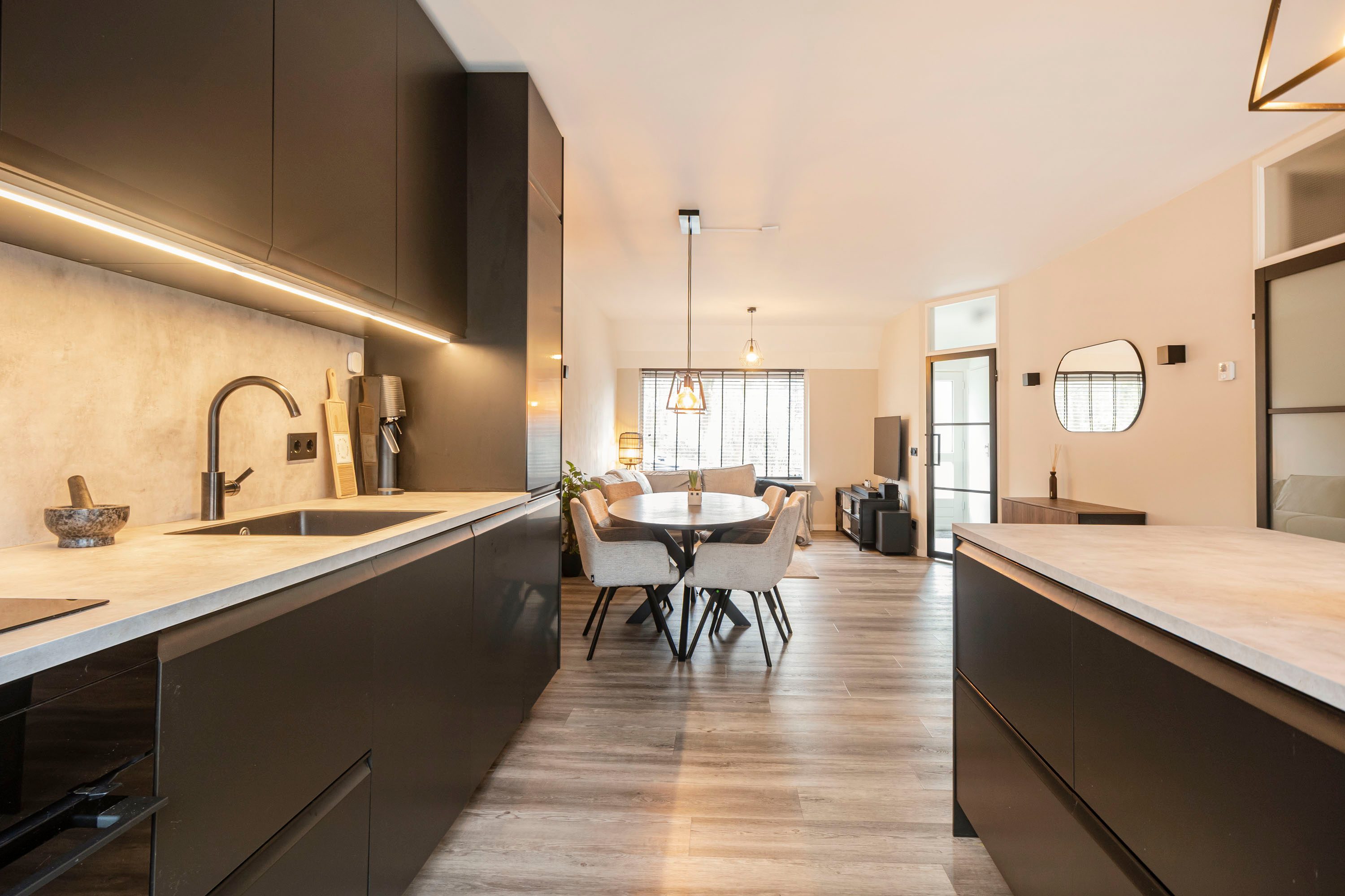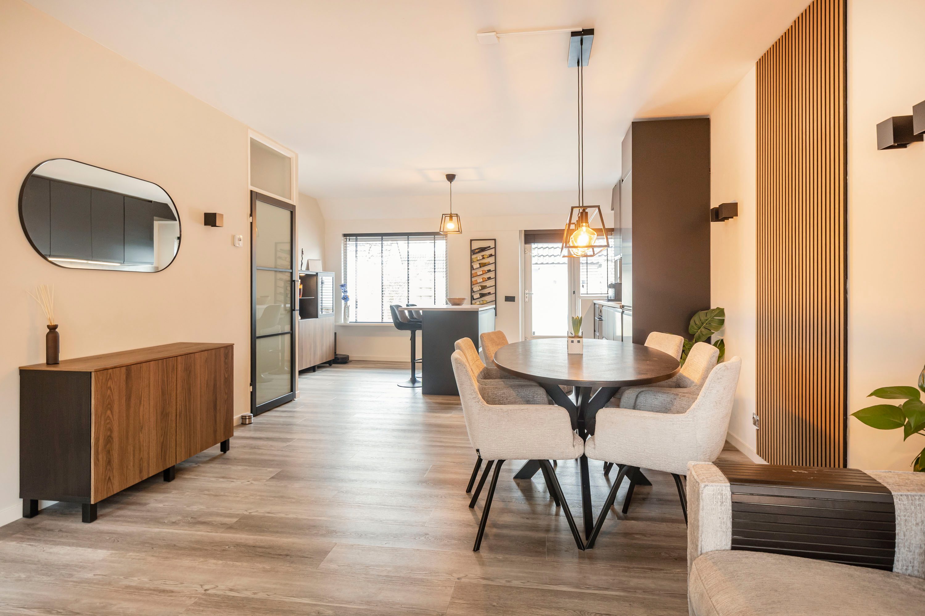 De keuken is in 2024 vernieuwd en uitgerust met hoogwaardige inbouwapparatuur, waaronder een inductiekookplaat, afzuigkap, combi-oven, koel-vriescombinatie en vaatwasser. Leuk detail is de bar aan het keukenblad, ideaal voor een snel ontbijt of een gezellig moment tijdens het koken. De keuken biedt bovendien voldoende ruimte om eventueel een speelhoekje voor de kinderen te creëren. Vanuit de keuken loop je direct de achtertuin in.