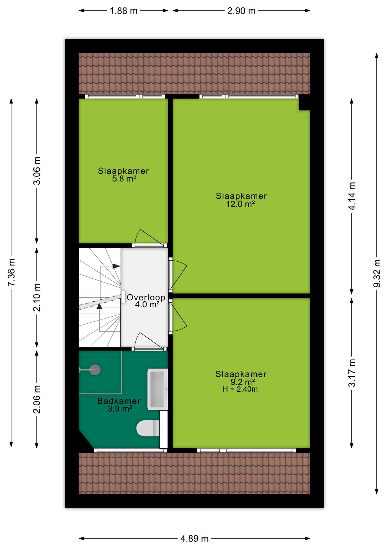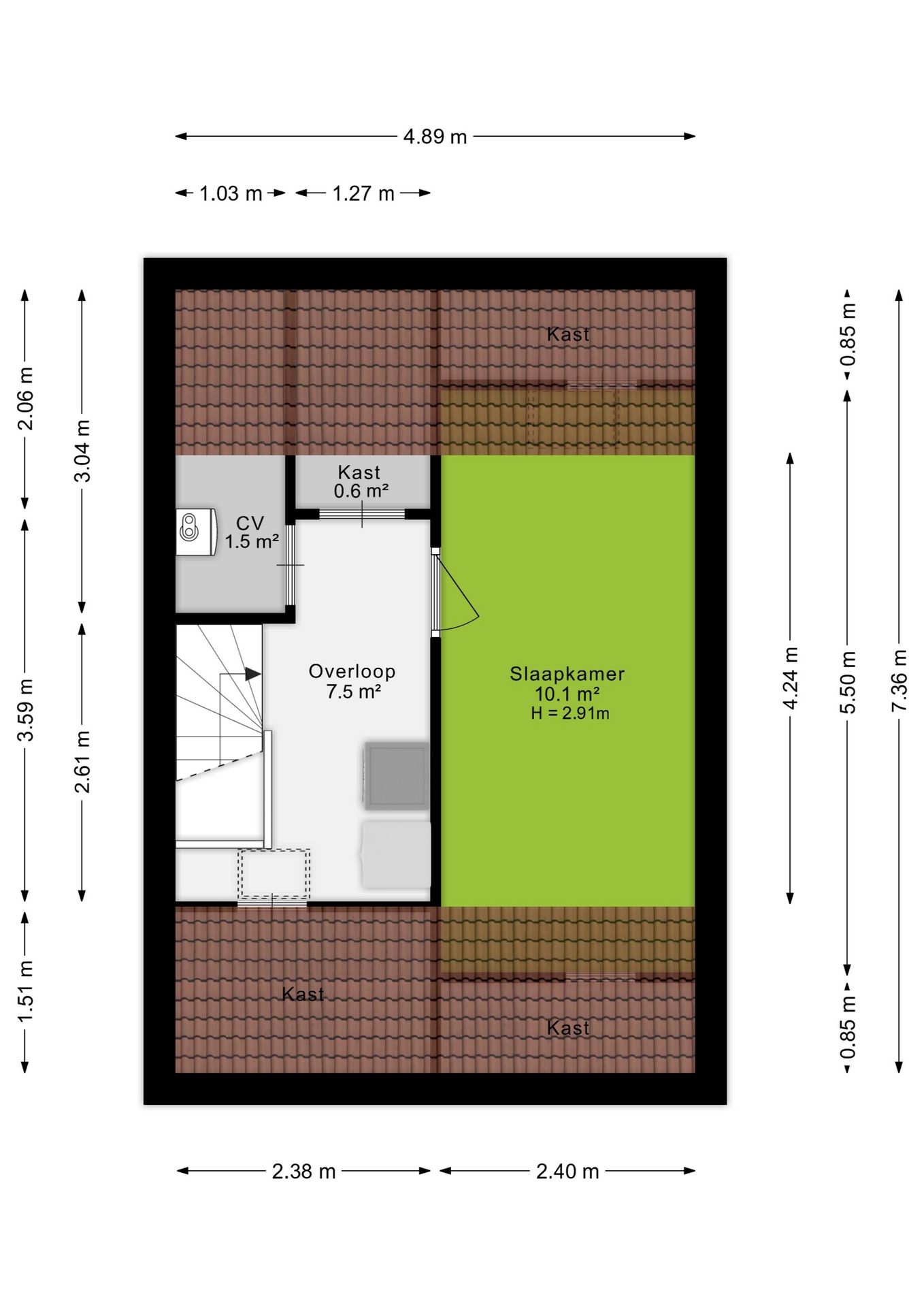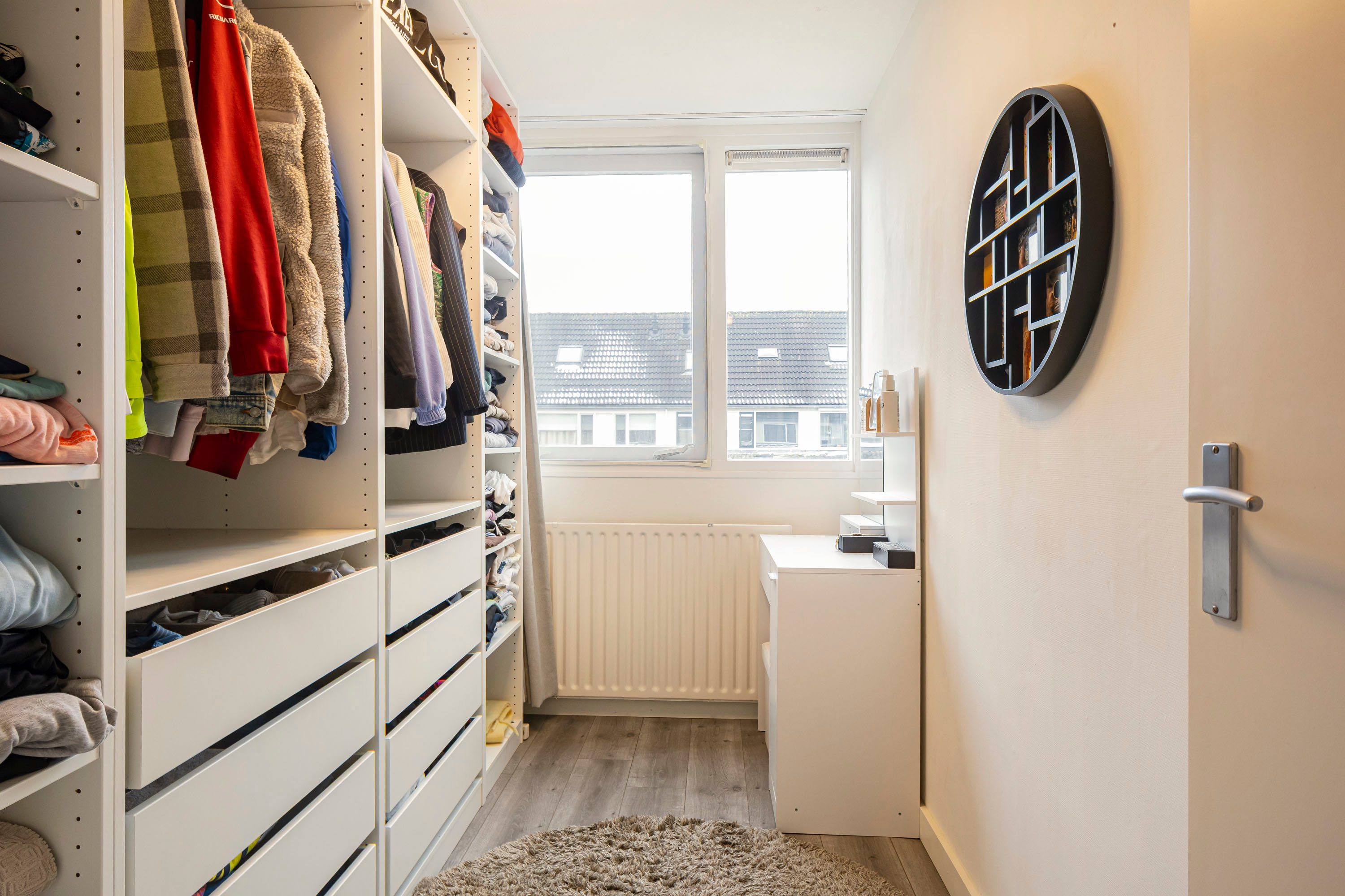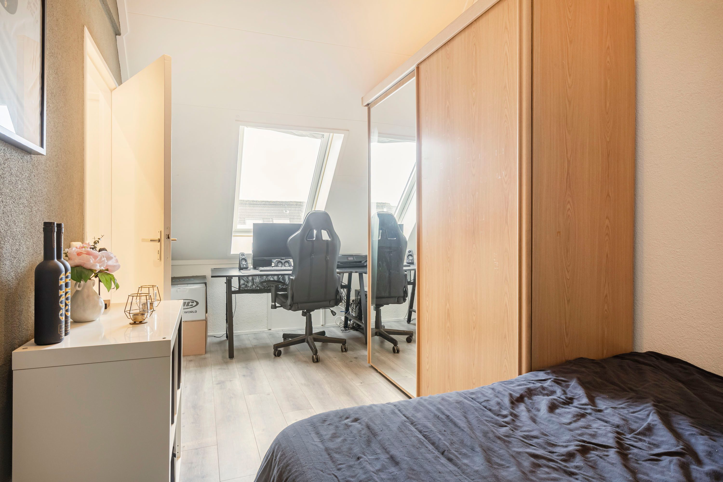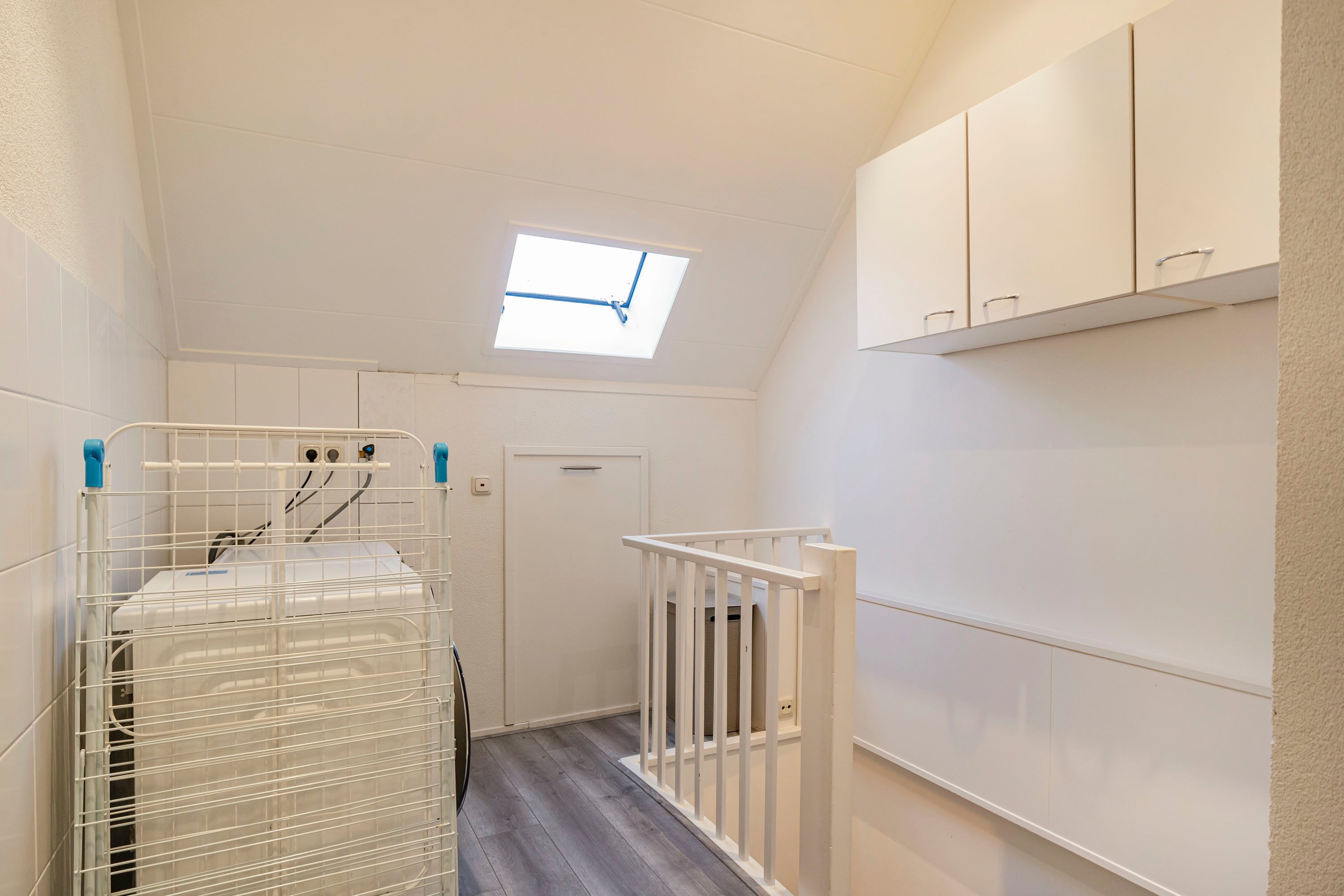 De tweede verdieping beschikt over een vierde slaapkamer van circa 10 m², voorzien van een dakraam. Op de overloop bevinden zich de wasmachineaansluiting en de CV-ketel. Achter de knieschotten is volop bergruimte aanwezig, ideaal voor spullen die je niet dagelijks nodig hebt.