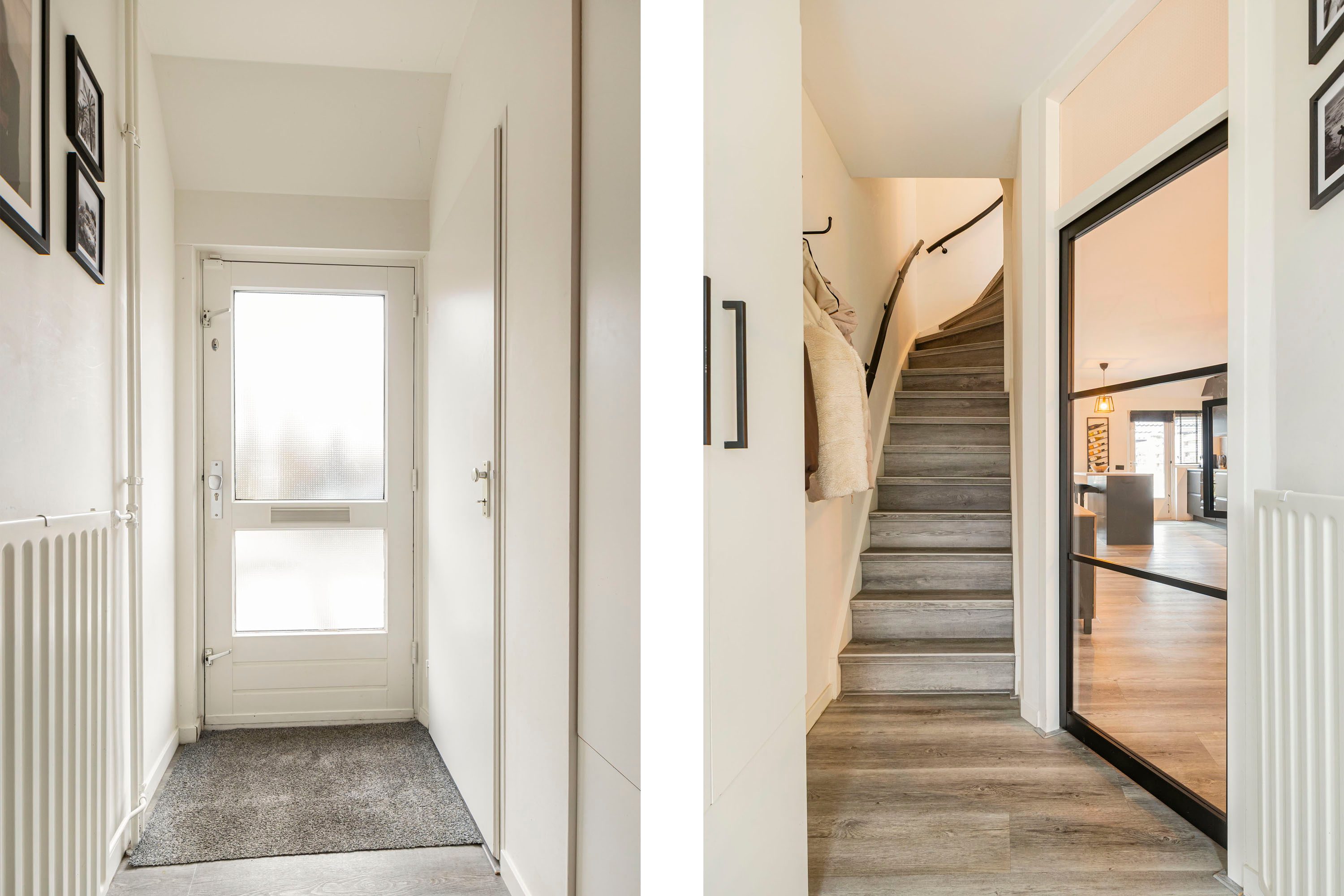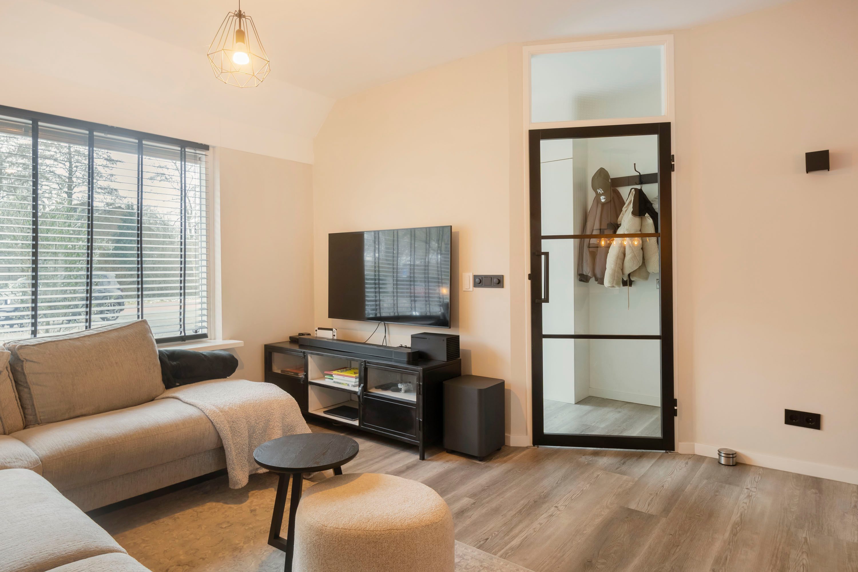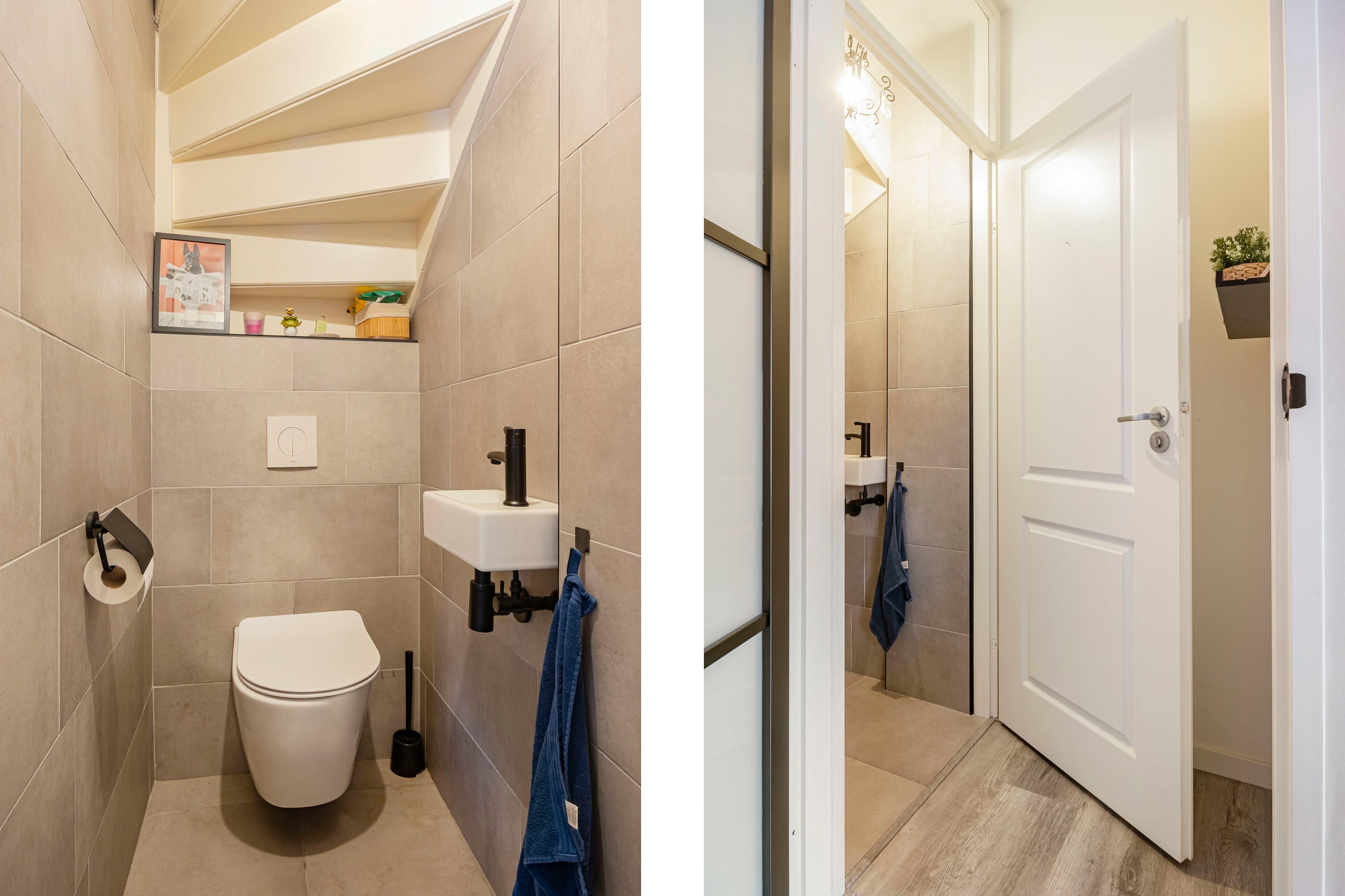 Halverwege de leefruimte bevindt zich een kleine hal met toegang tot het in 2021 vernieuwde toilet.