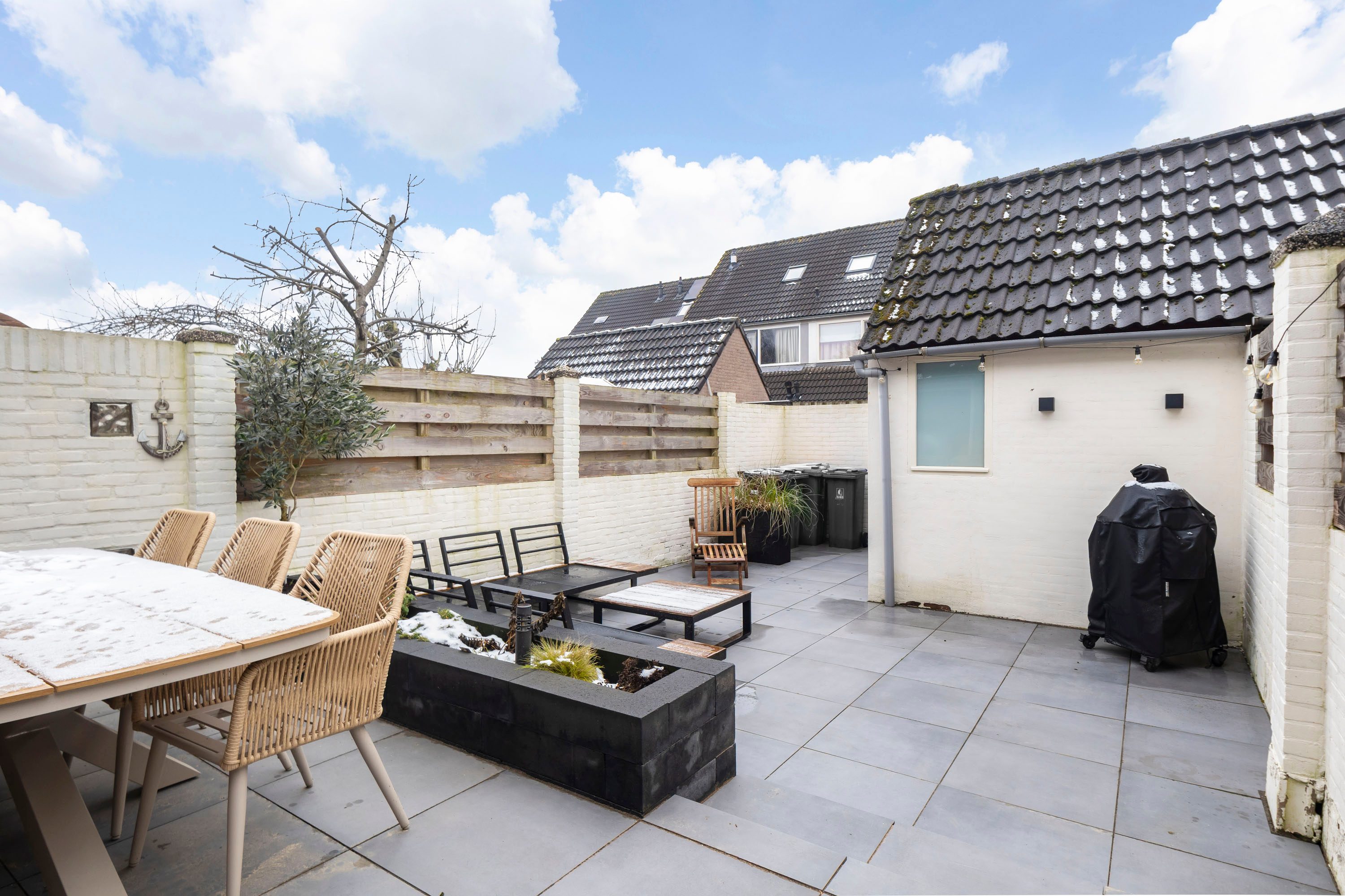 De achtertuin is gelegen op het westen, waardoor je hier heerlijk kunt genieten van de middag- en avondzon. De tuin is bereikbaar via een achterom en beschikt over een stenen berging met vliering, wat zorgt voor extra opslagruimte. Er zijn meerdere zithoeken gecreëerd, waardoor je altijd een fijne plek in de zon of schaduw kunt vinden.