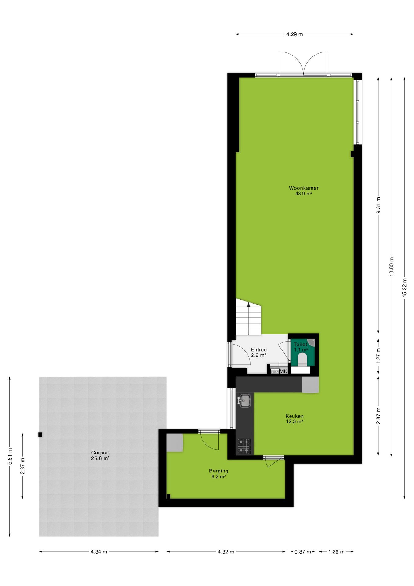+ Eigen parkeergelegenheid voor de woning en carport;