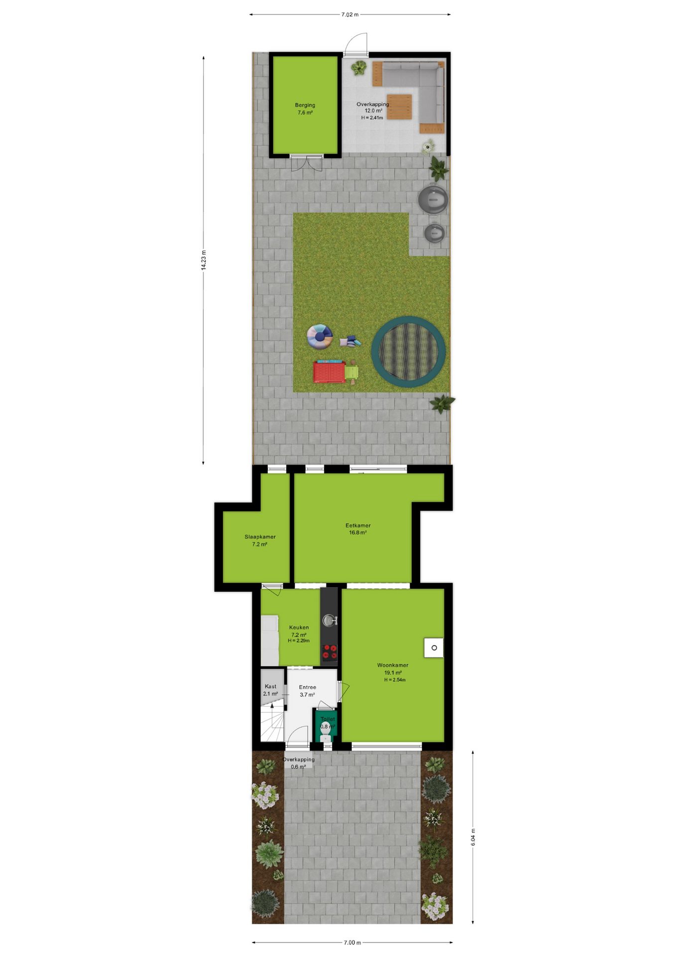 + Diepe tuin op het noordoosten, voorzien van achterom en berging