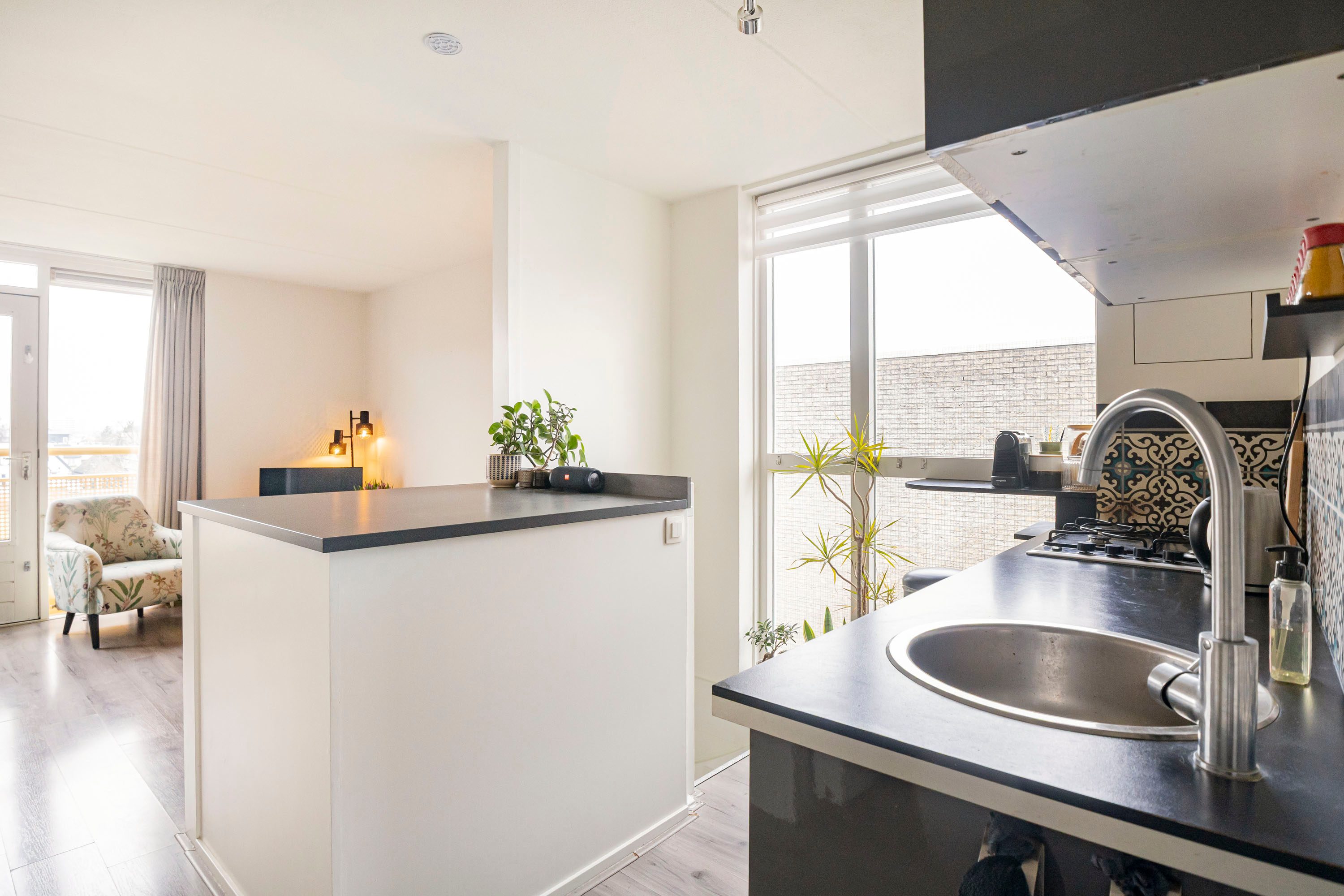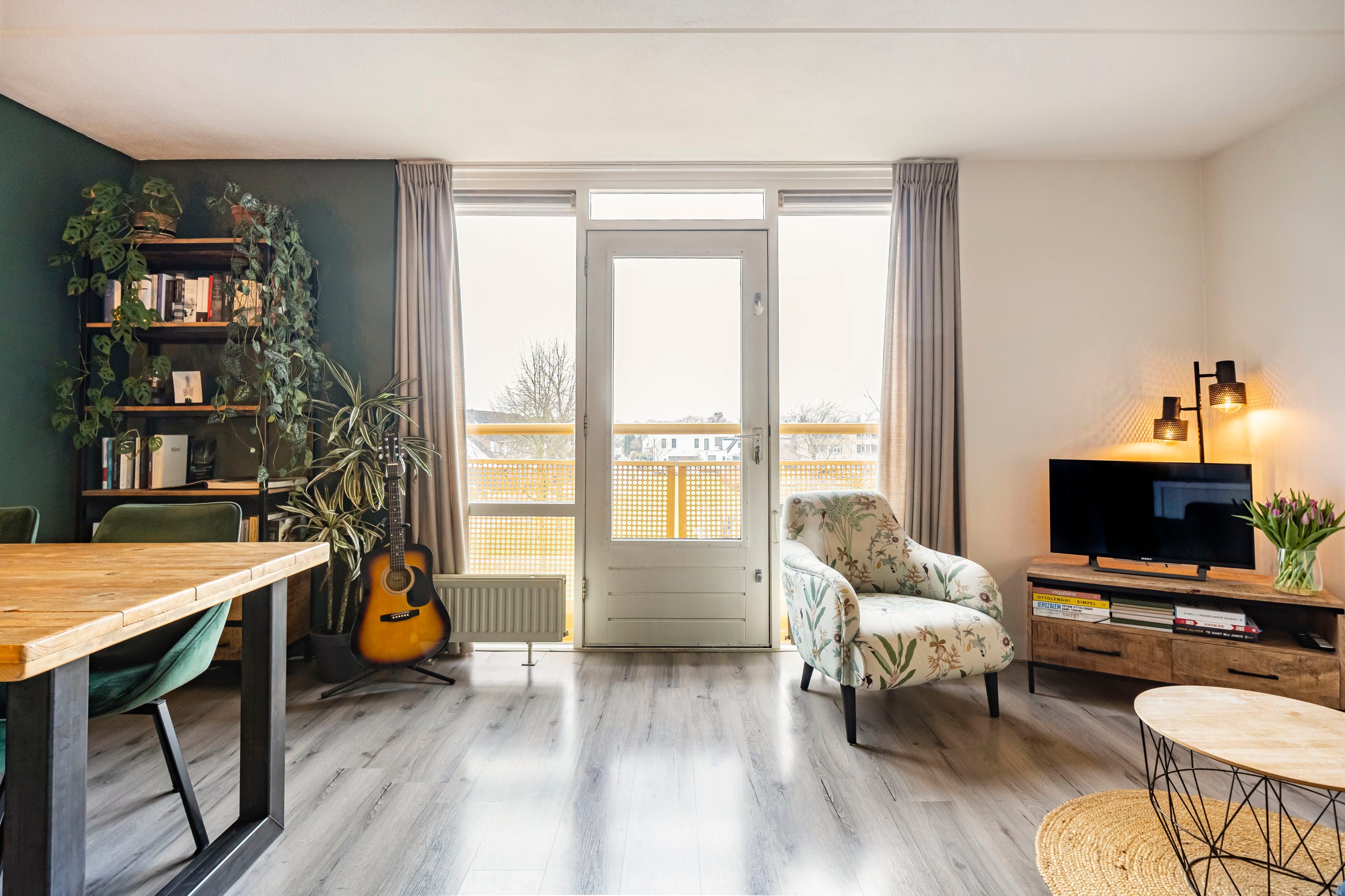 Aan de woonkamer bevindt zich een Frans balkon op het westen, een fijne plek om even een deur open te zetten en van de middag- en avondzon te genieten.