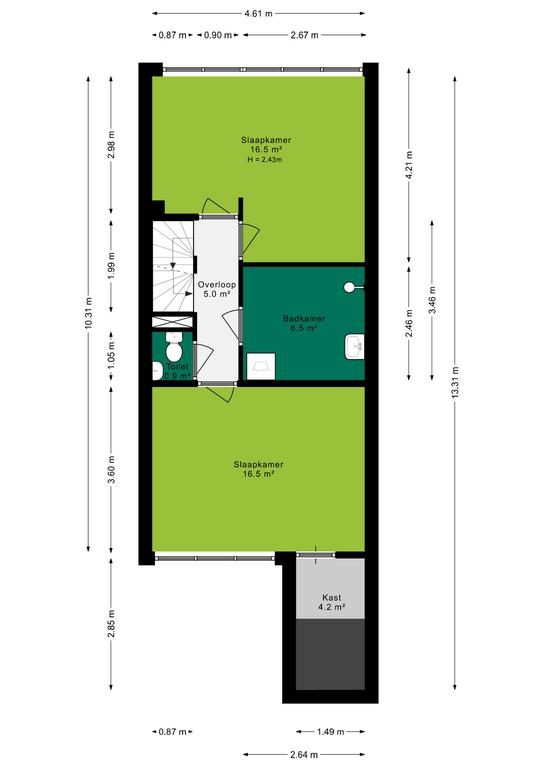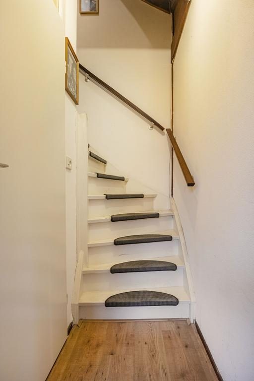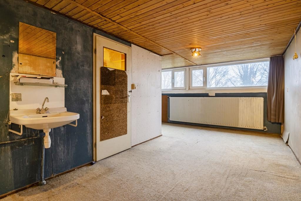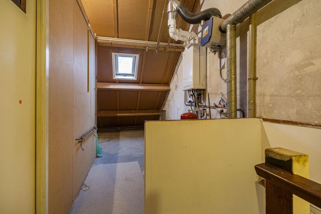 Op de overloop bevindt zich de cv-installatie, en er is een derde slaapkamer met een wastafeltje.