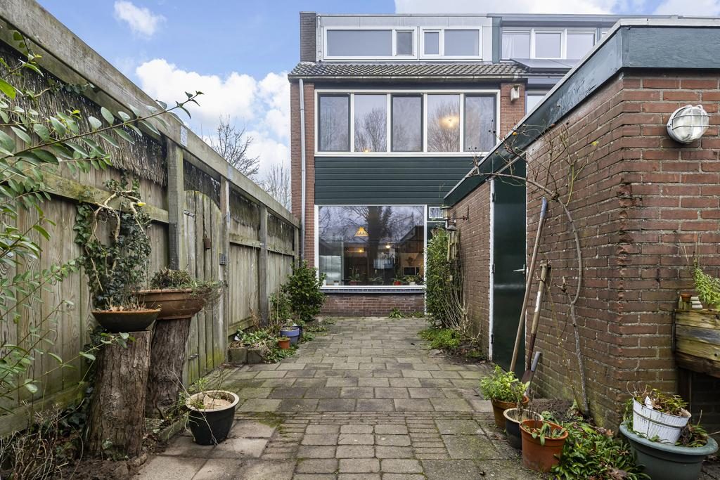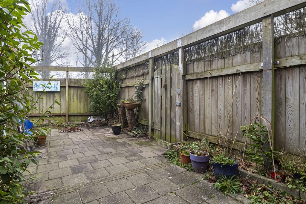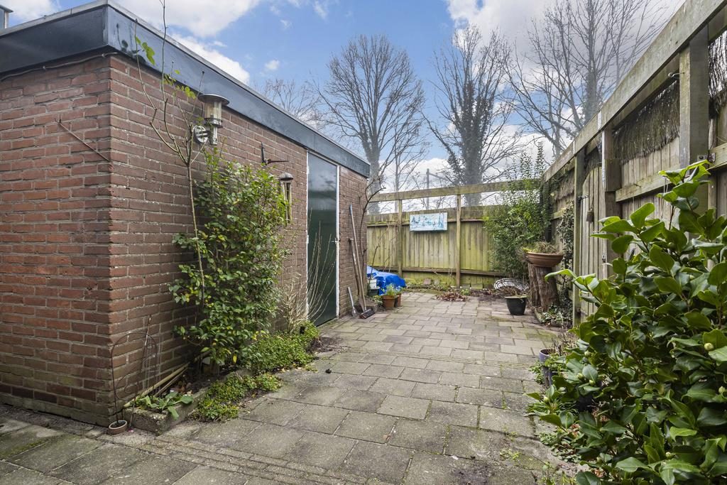 De onderhoudsvriendelijke tuin ligt op het zuiden en bevat een stenen berging, ideaal voor het opbergen van tuingereedschap en het stallen van fietsen. Daarnaast is de woning toegankelijk via een achterom.