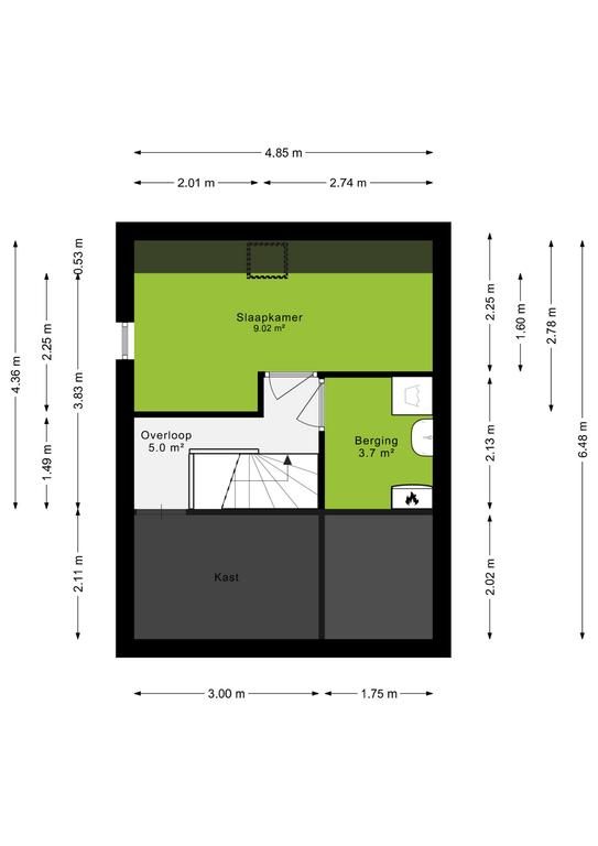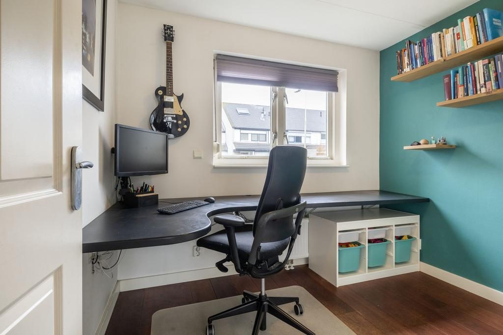Op de overloop vind je toegang tot handige bergruimte achter de schuine kanten, ideaal voor het opbergen van seizoensspullen of andere items. Er is een vierde slaapkamer, die perfect kan dienen als extra slaapruimte, hobbykamer of thuiskantoor. Daarnaast is er een aparte berging waar de cv-installatie en de aansluiting voor de wasmachine zich bevinden.