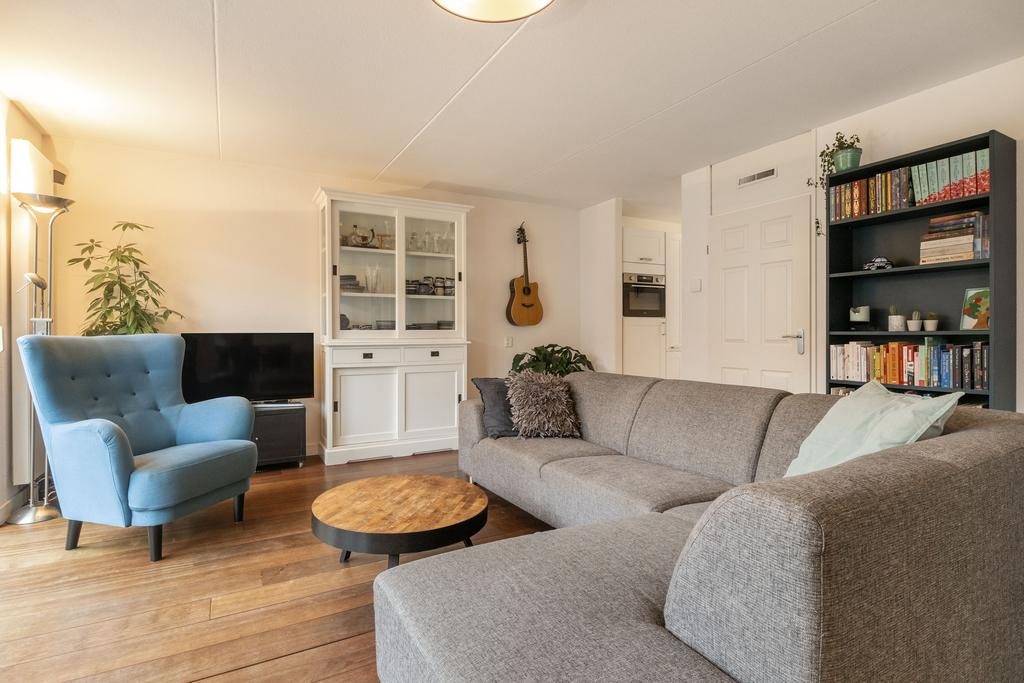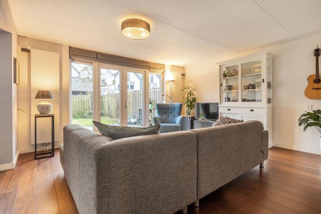 Bij binnenkomst betreed je de entree, waar zich de meterkast, een toilet met fonteintje en de trap naar de eerste verdieping bevinden. Vanuit hier stap je de lichte woonkamer binnen, die dankzij de openslaande deuren aan de achterzijde een aangename sfeer heeft en een oppervlakte van ongeveer 23 m² biedt.