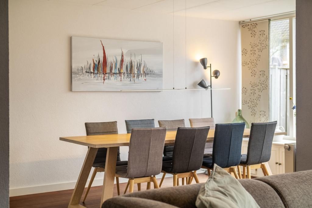 Aansluitend aan de woonkamer bevindt zich de eetkamer. Hier kun je tijdens het dineren genieten van het uitzicht op de achtertuin. Vanuit de eetkamer is er ook toegang tot het kantoor, dat aan de voorzijde van de woning gelegen is.