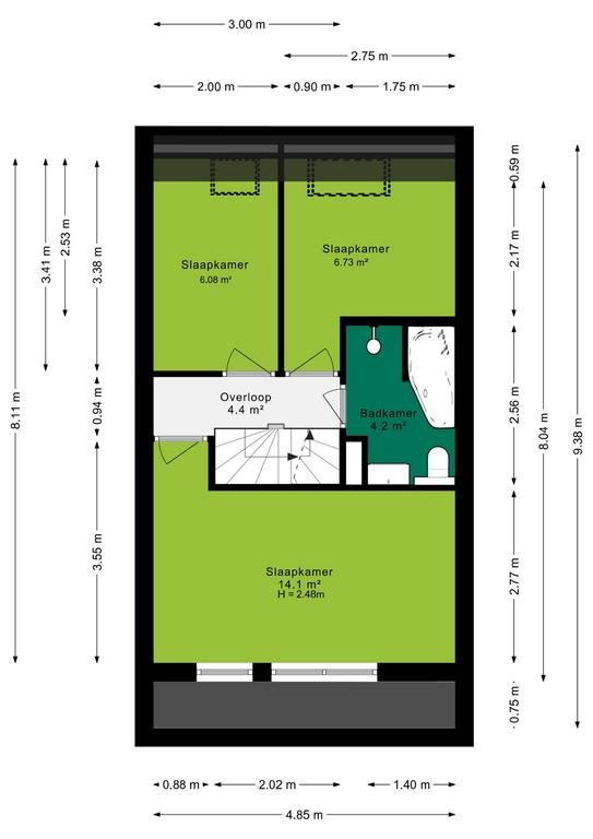 Op de overloop vind je toegang tot twee ruime slaapkamers, die flexibel in te richten zijn als kinder-, logeer- of studeerkamers. Beide kamers bieden voldoende ruimte voor een bed, kledingkast en eventueel een bureau, waardoor ze ideaal zijn voor opgroeiende kinderen of gasten.