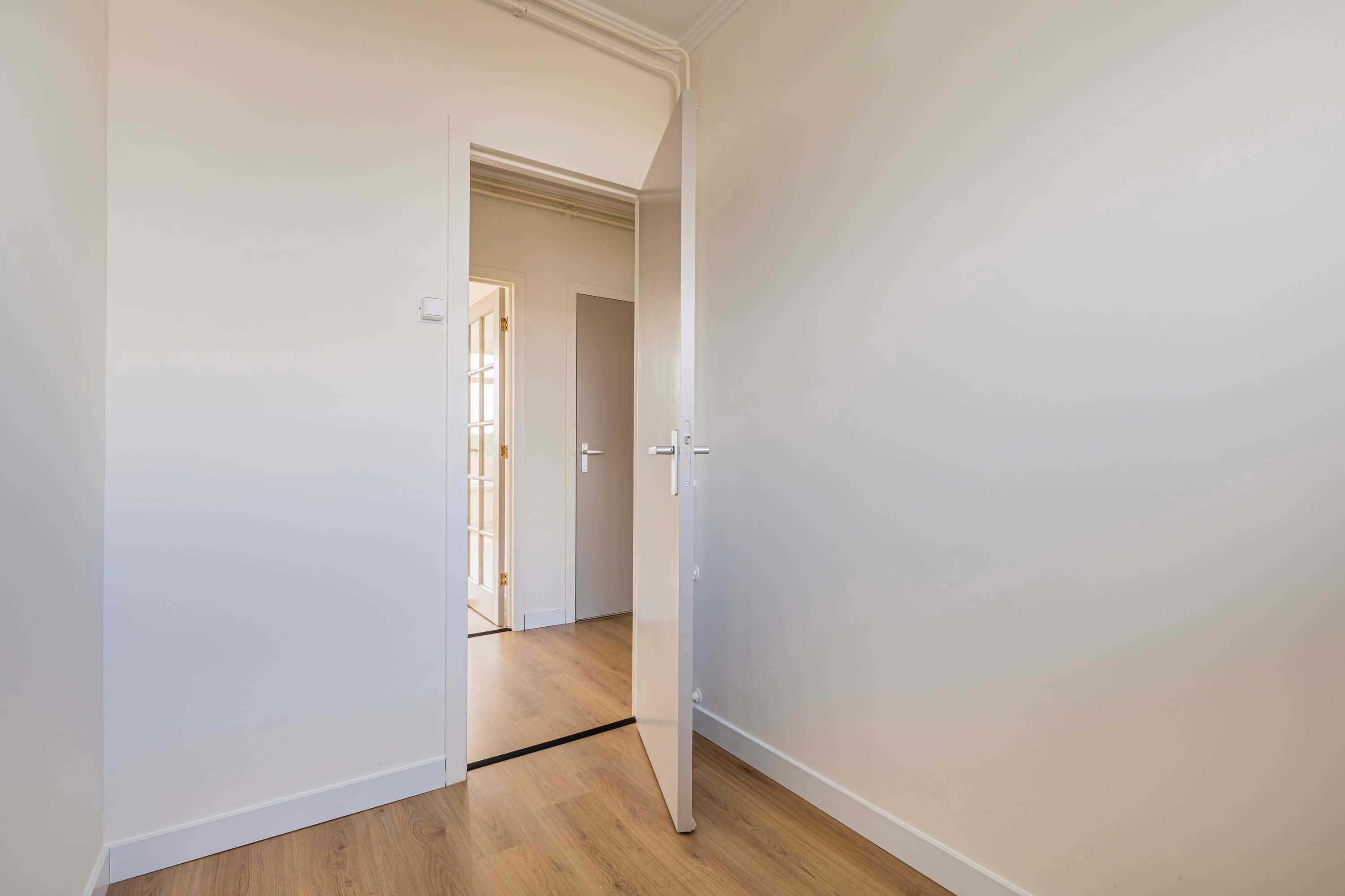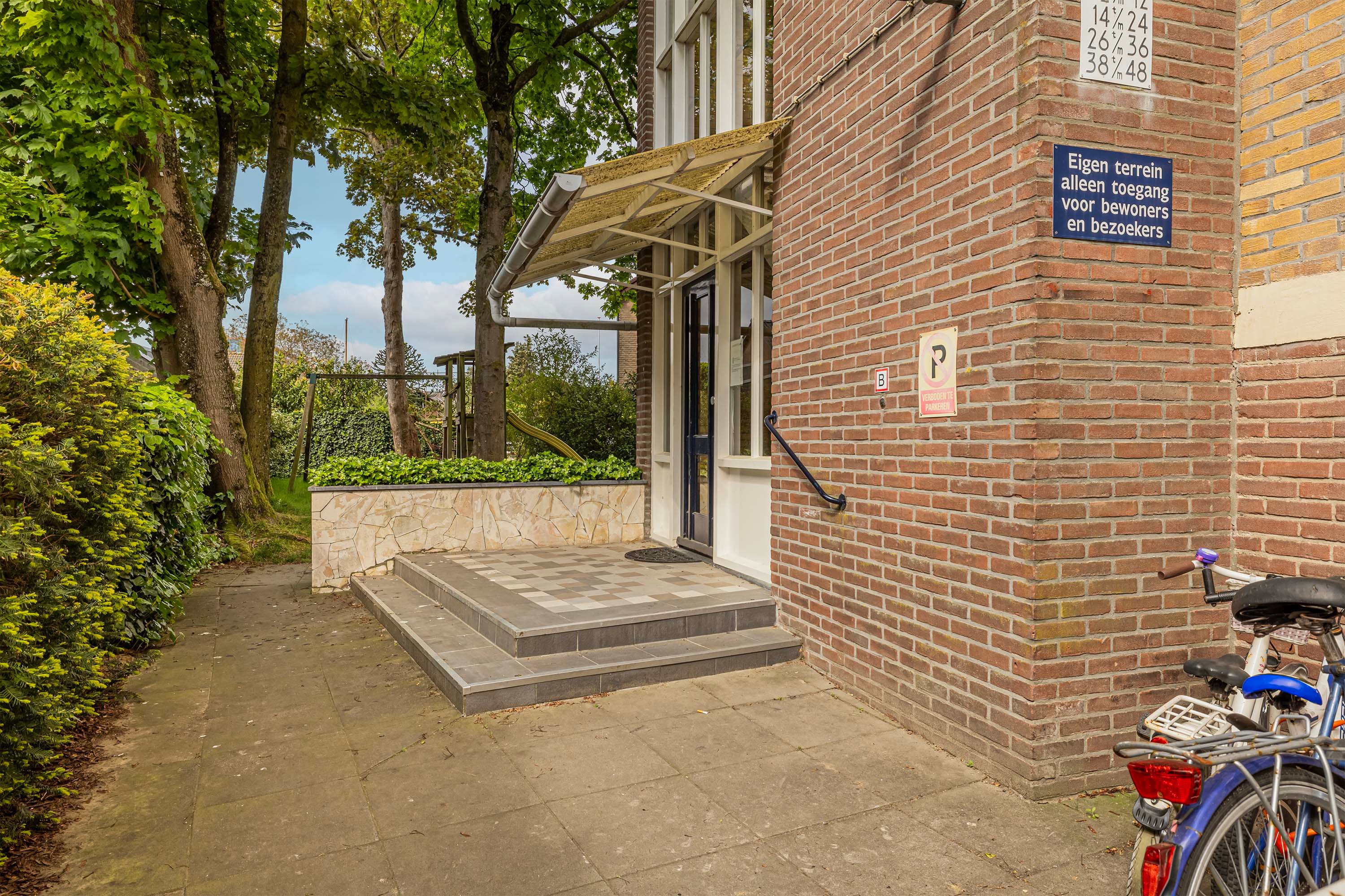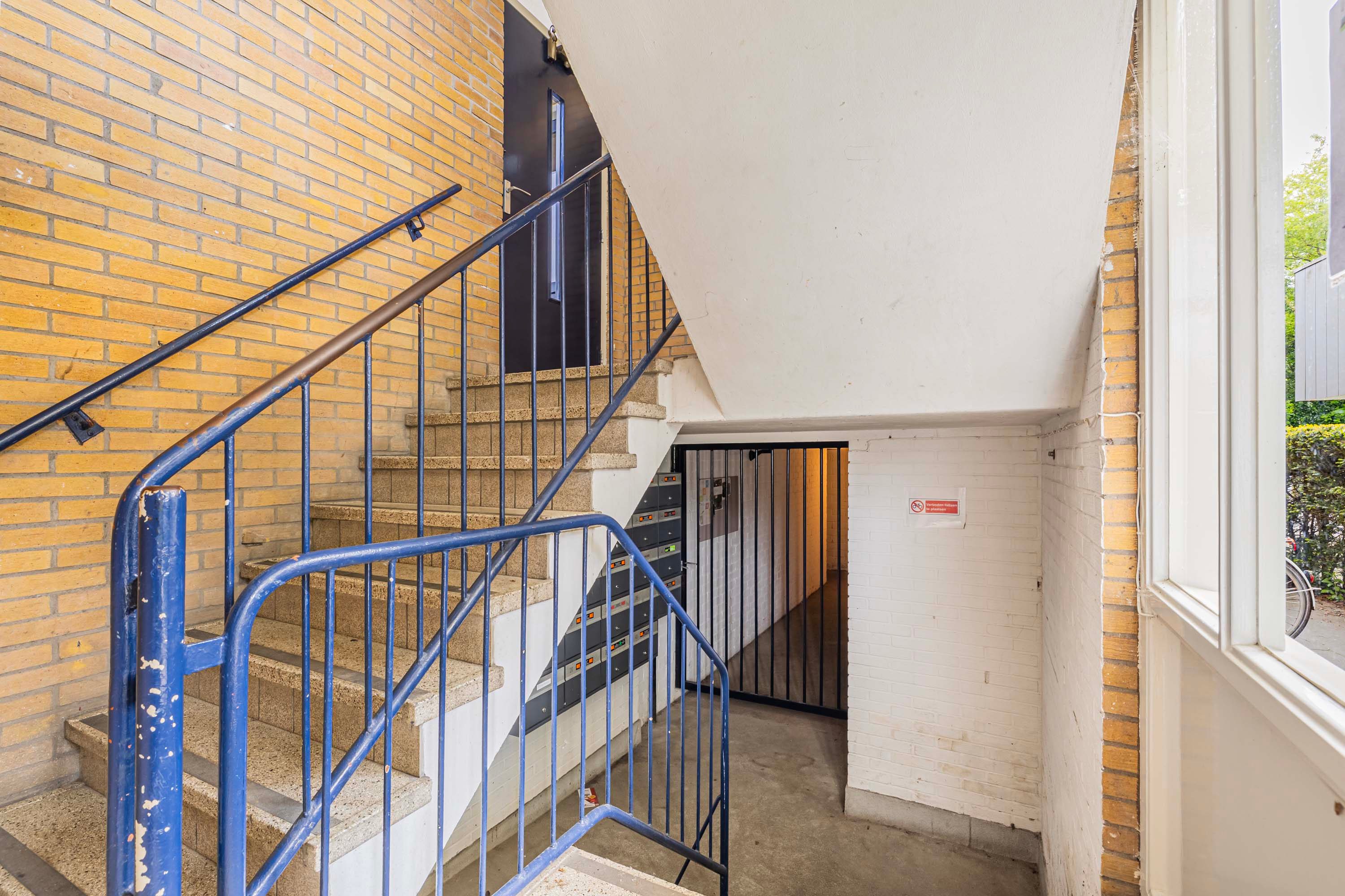 Via de entree van het gebouw vind je de brievenbussen en jouw eigen afgesloten berging op de begane grond. Het trappenhuis brengt je naar de bovenste verdieping, waar dit fijne appartement zich bevindt.