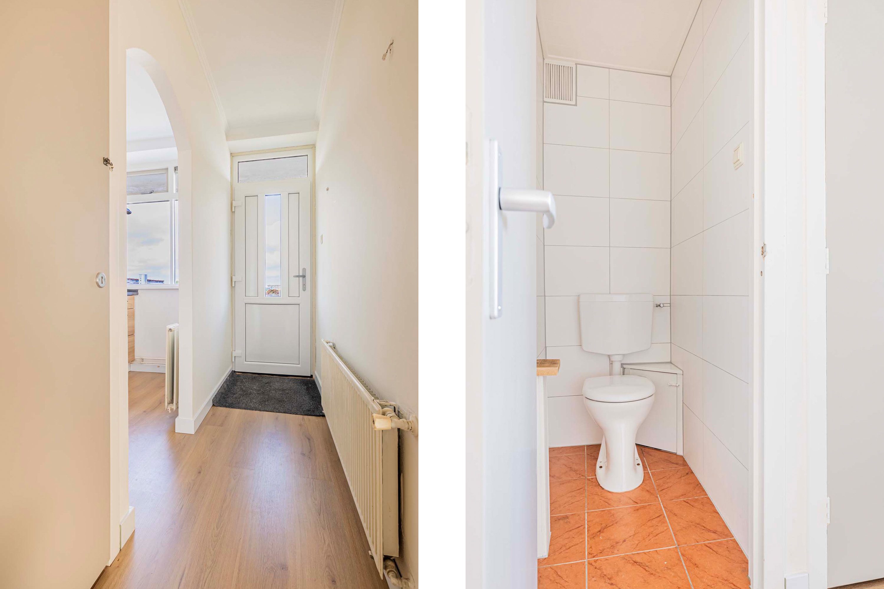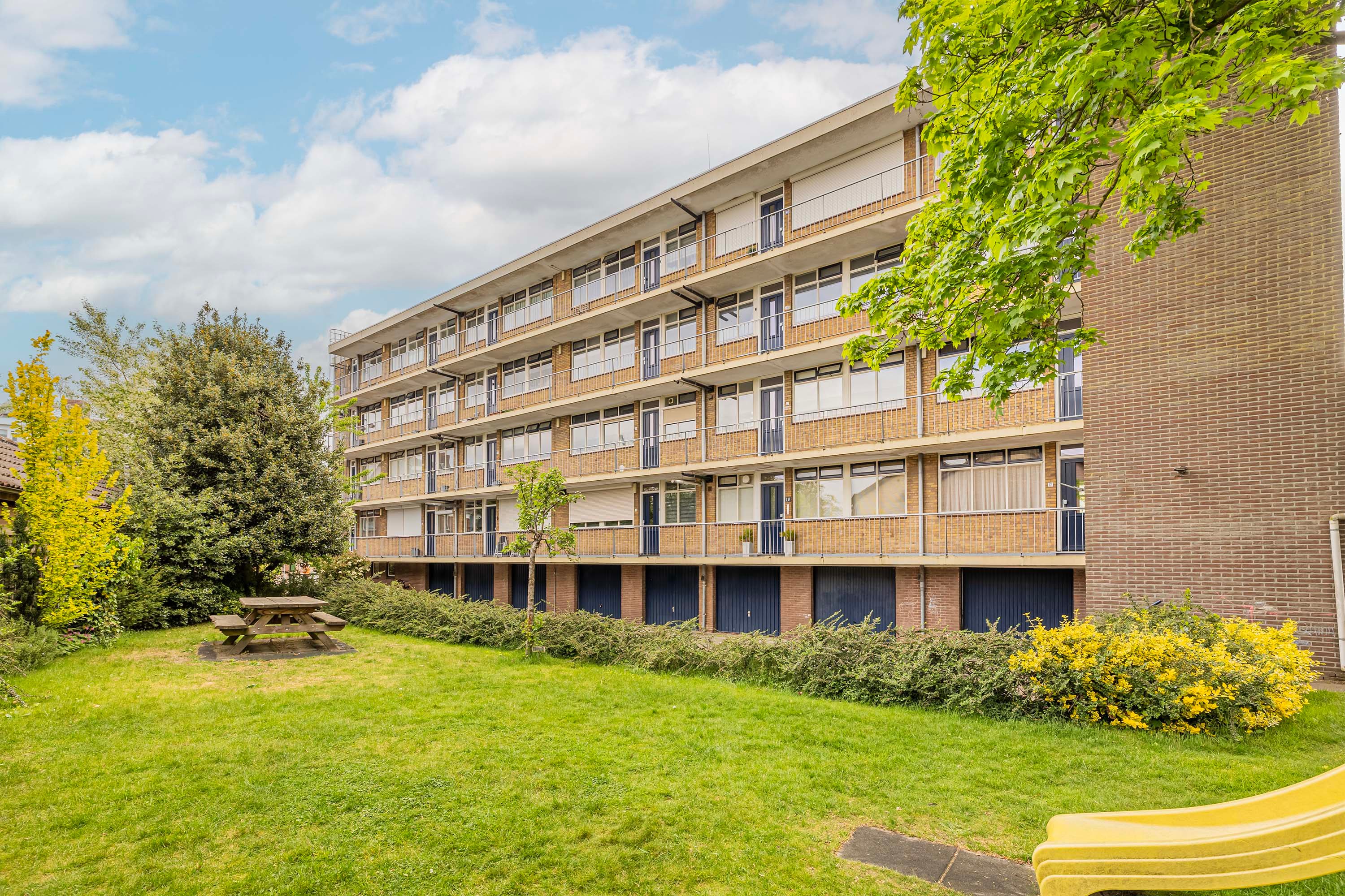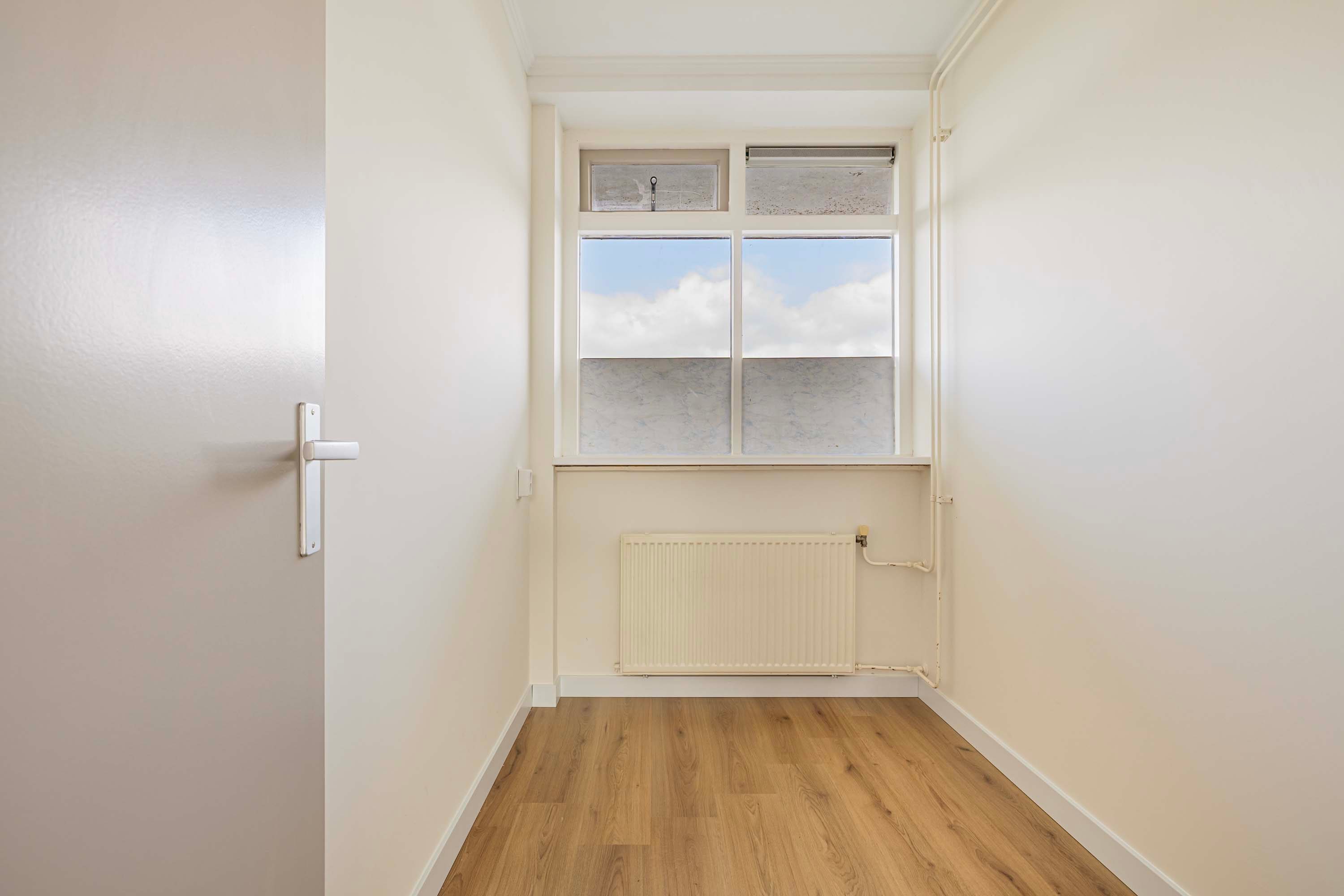 Via de entree van het gebouw vind je de brievenbussen en jouw eigen afgesloten berging op de begane grond. Het trappenhuis brengt je naar de bovenste verdieping, waar dit fijne appartement zich bevindt.
