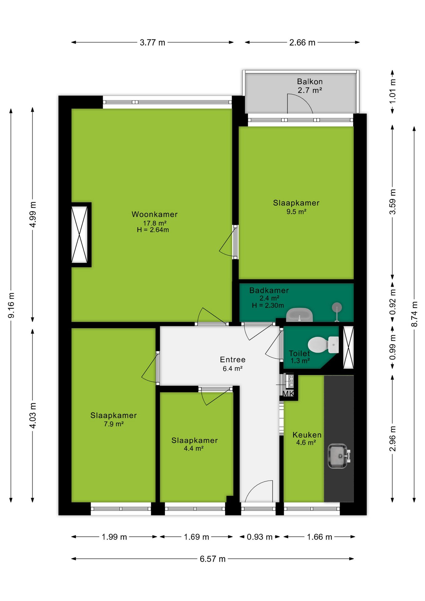 Externe berging: 3,2 m²