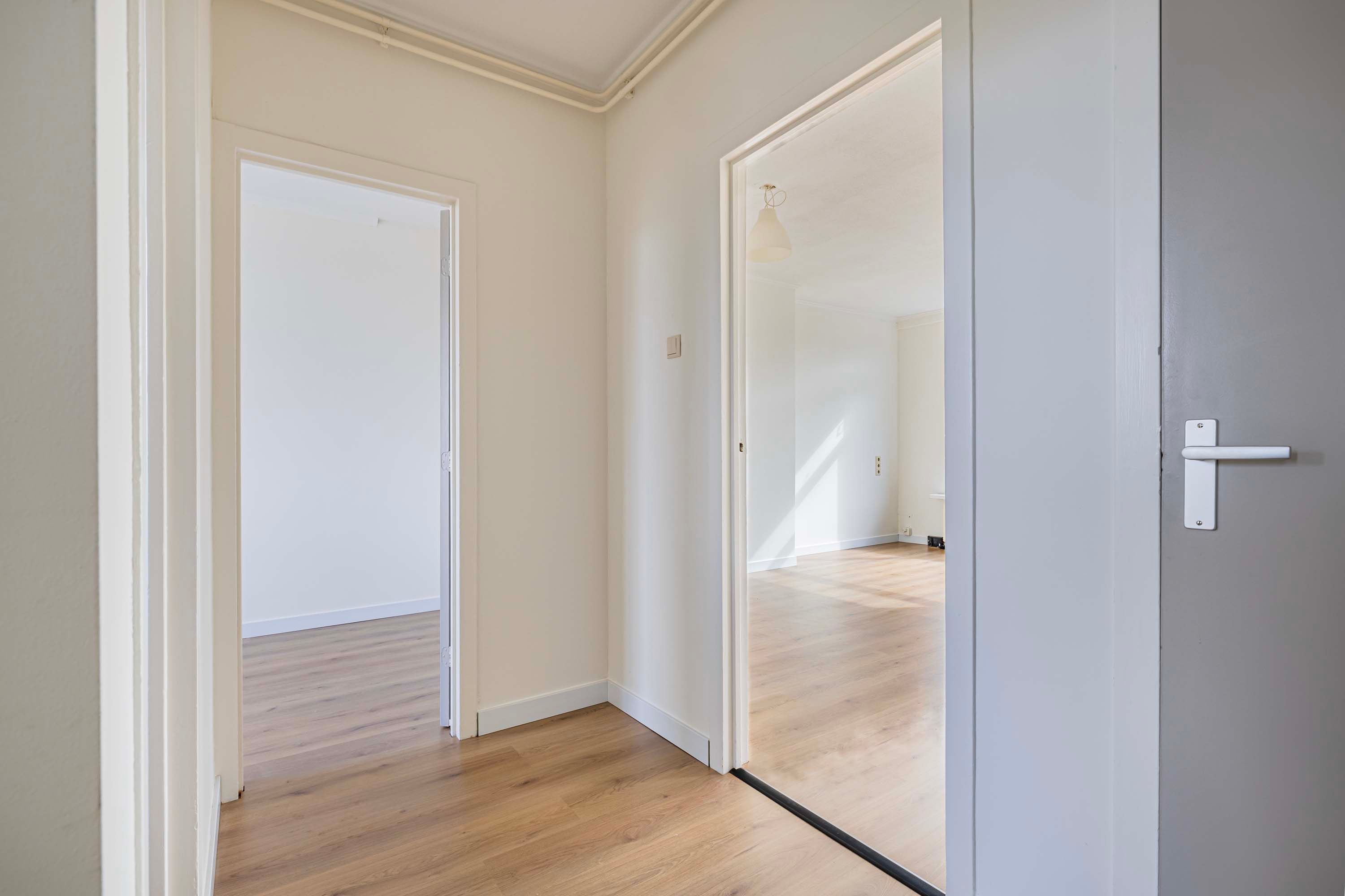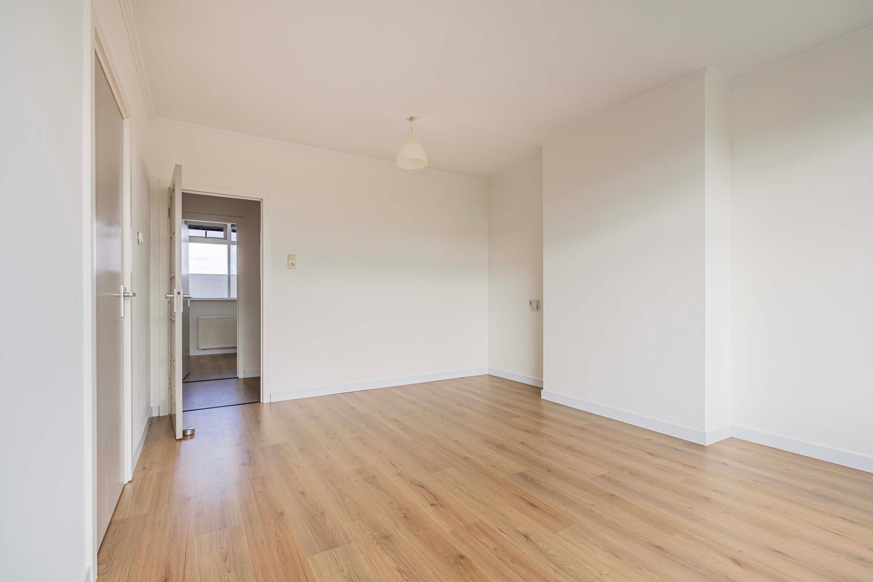 Stap je binnen, dan voel je het meteen: alles is tiptop in orde. De wanden en plafonds zijn strak gestuct voor een moderne en frisse look. Overal ligt een mooie laminaatvloer in een neutrale kleur, wat zorgt voor een gezellige en eigentijdse sfeer.