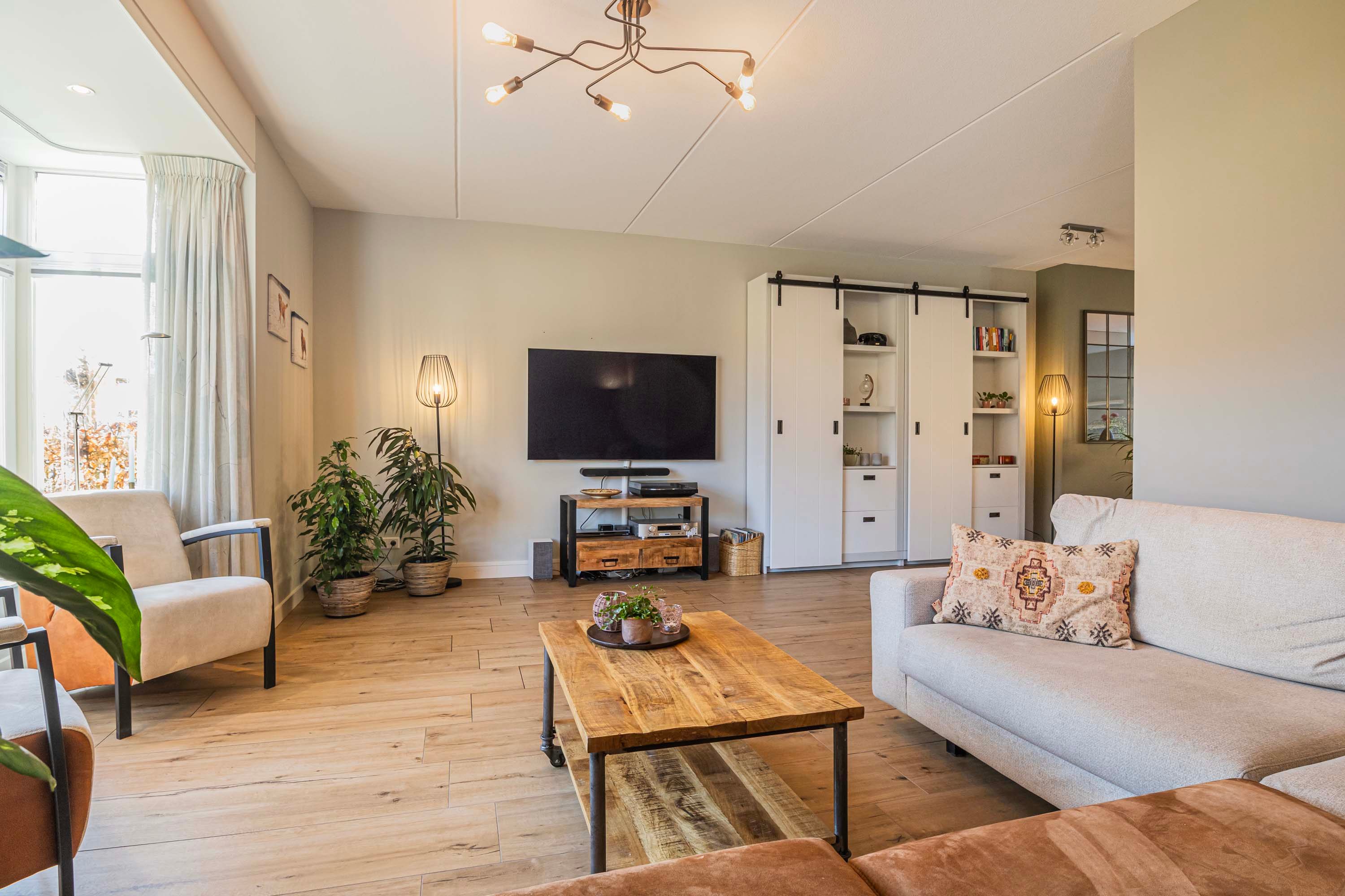De gehele begane grond is voorzien van keramisch parket en comfortabele vloerverwarming.