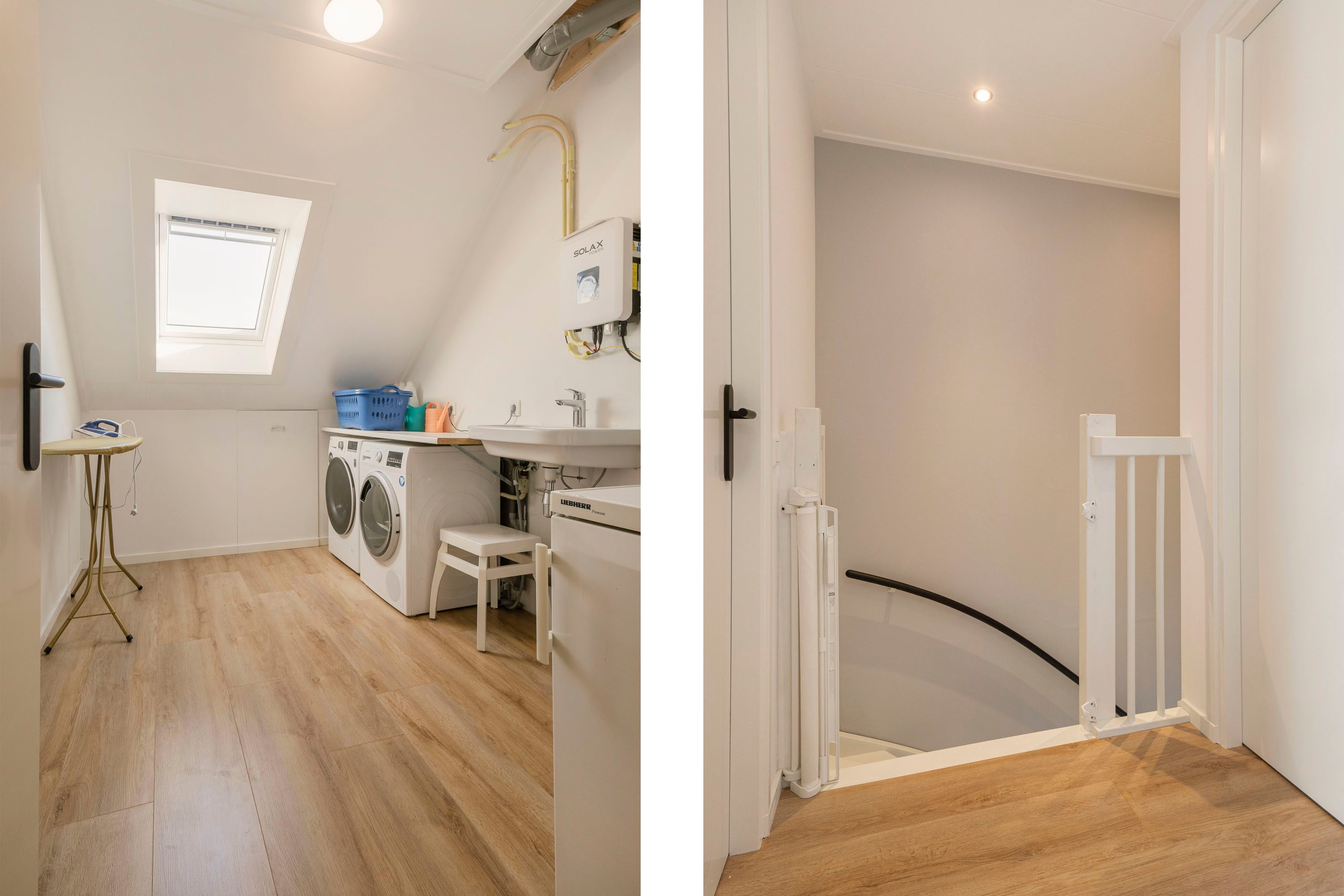 De tweede verdieping biedt nog eens twee volwaardige slaapkamers van circa 18 m² en 15 m², met volop lichtinval. De slaapkamer aan de voorzijde heeft een handige vliering voor extra opbergruimte, terwijl de kamer aan de achterzijde een dakraam heeft. Tevens vind je hier een separate wasruimte met aansluitingen voor een wasmachine en droger. In dit huis is aan elk detail gedacht. Zo is het stopcontact op de ideale hoogte van een strijkplank geplaatst, wat elke huisman of huisvrouw zeker enthousiast zal maken.